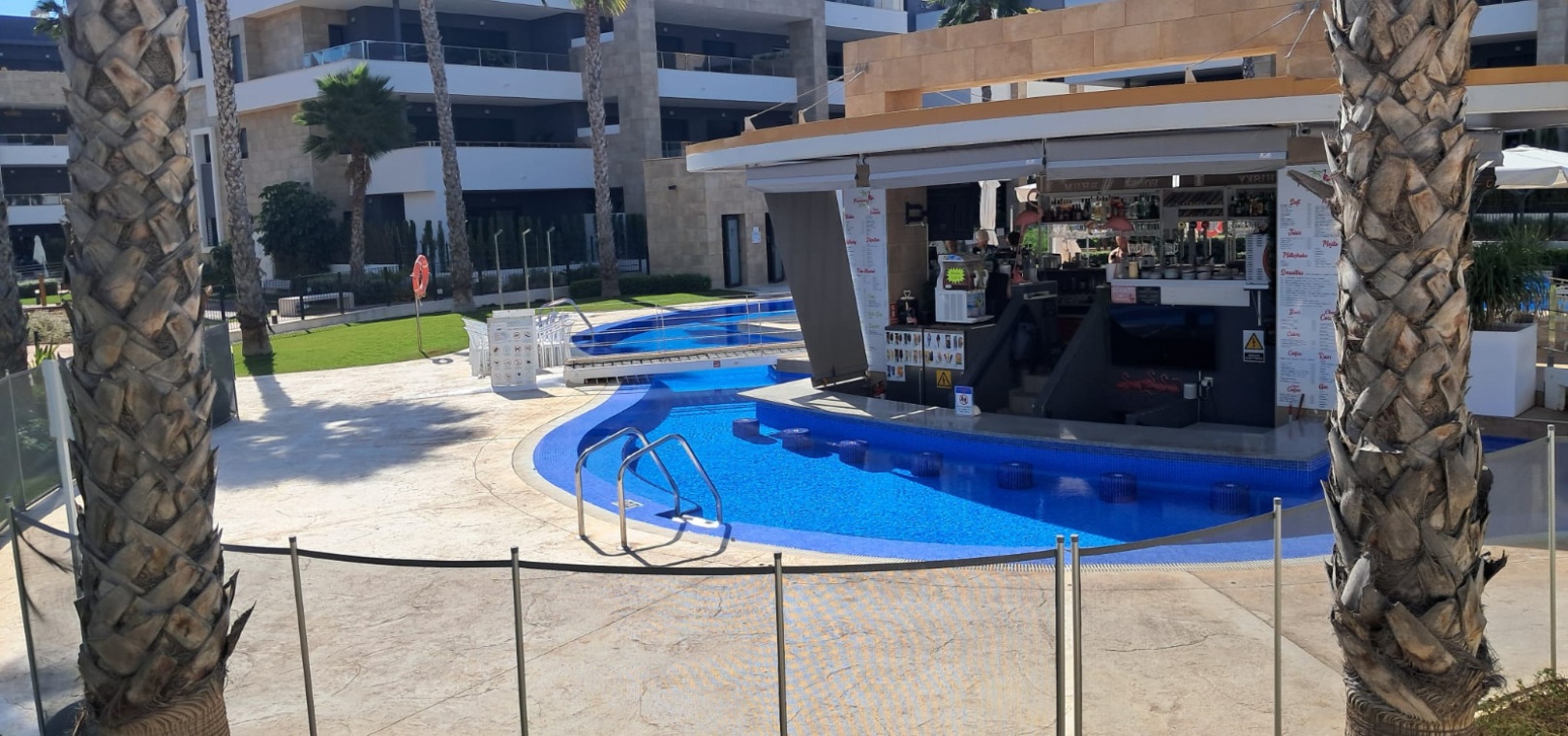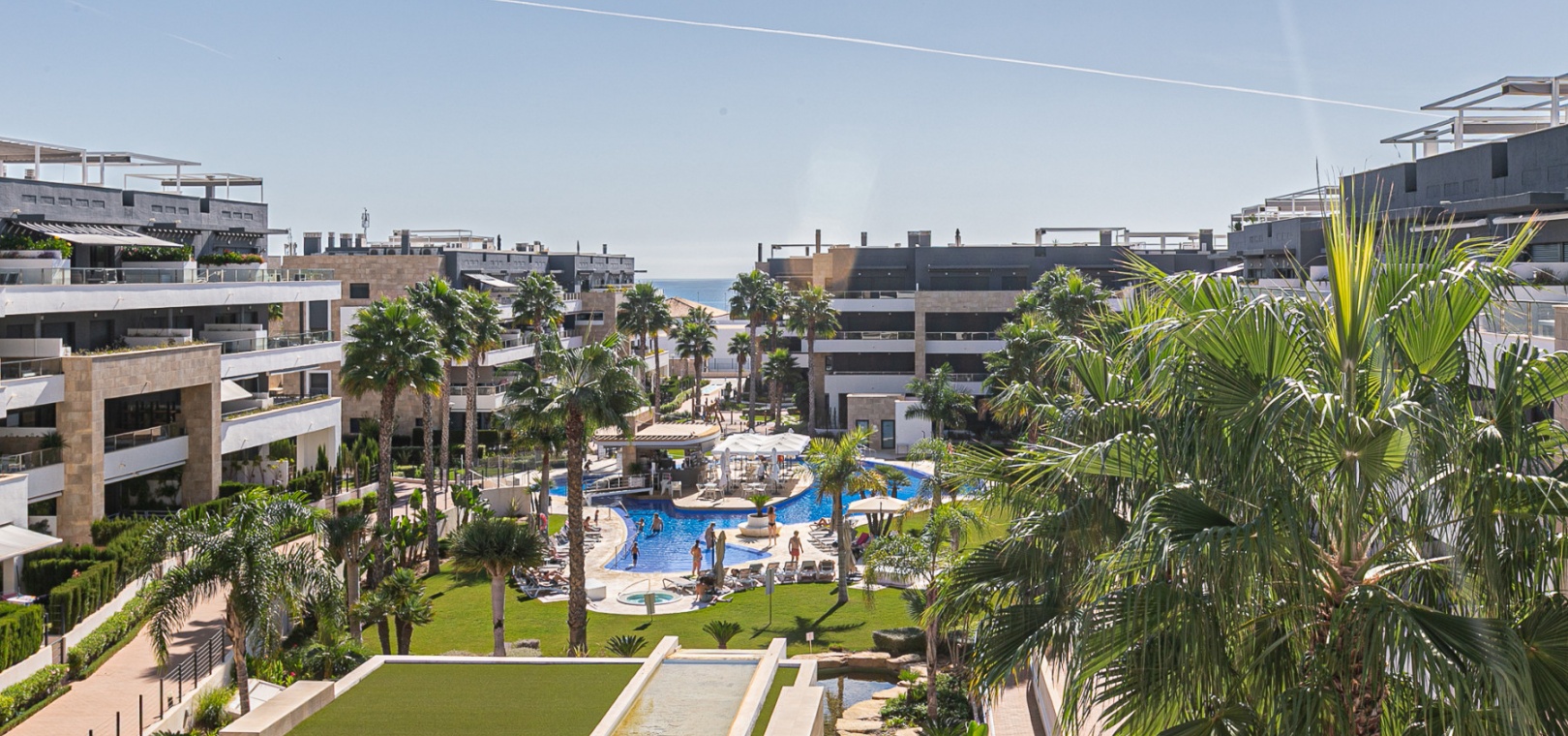 Flamenca Village offers exceptional amenities, including four communal swimming pools, a jacuzzi, sauna, children’s play area, fully equipped fitness area, and a stylish pool bar with live entertainment on weekends.
