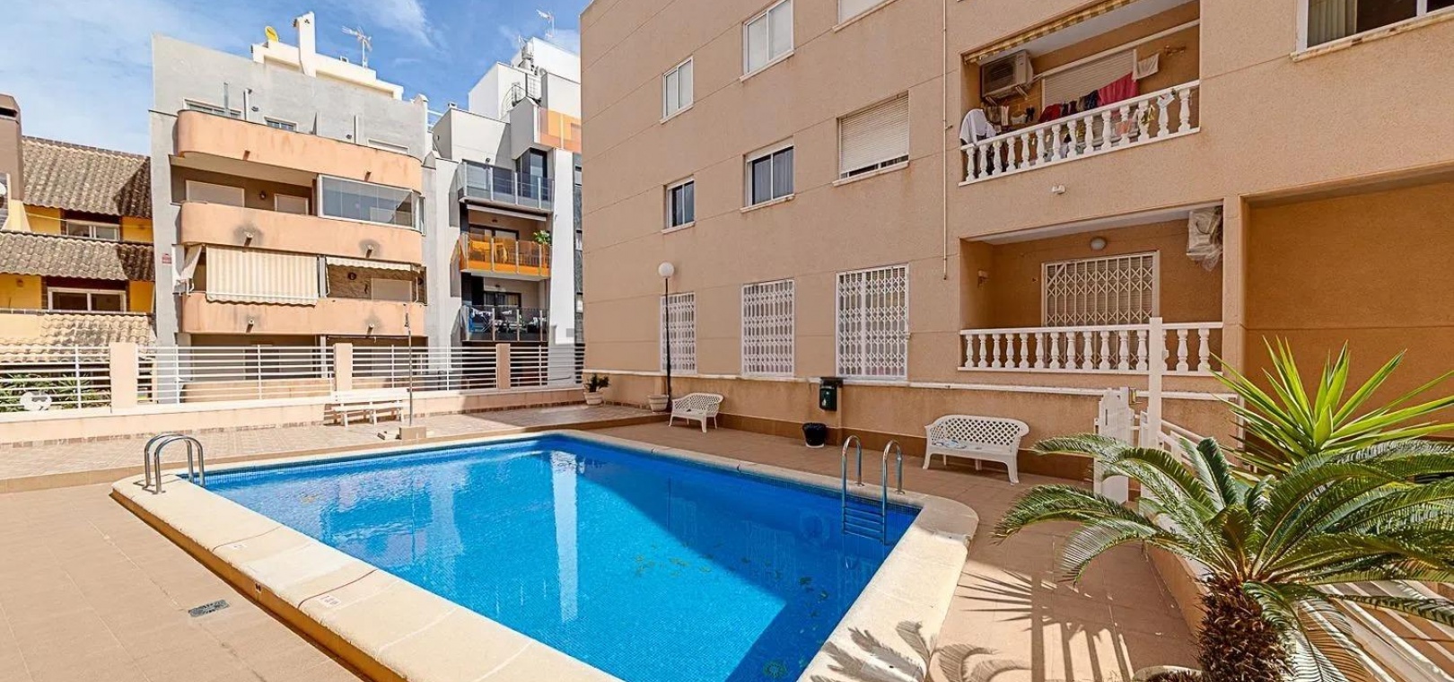 Residents benefit from communal areas and a stunning communal pool, ideal for sunbathing in peace. All this is just a short walk from Playa del Cura, offering easy access to the beach and nearby amenities.