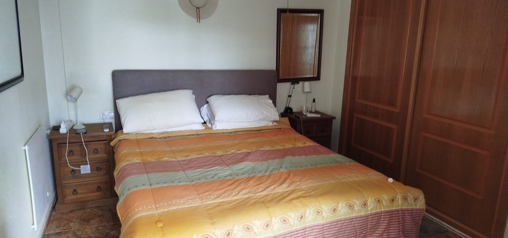 The ground floor also features a spacious double bedroom with a ceiling fan and double doors opening directly onto the terrace, as well as a shower room with toilet and wash hand basin — perfect for guests or everyday living.