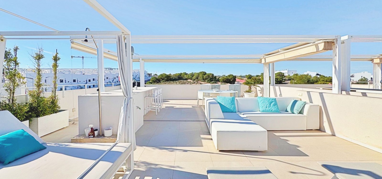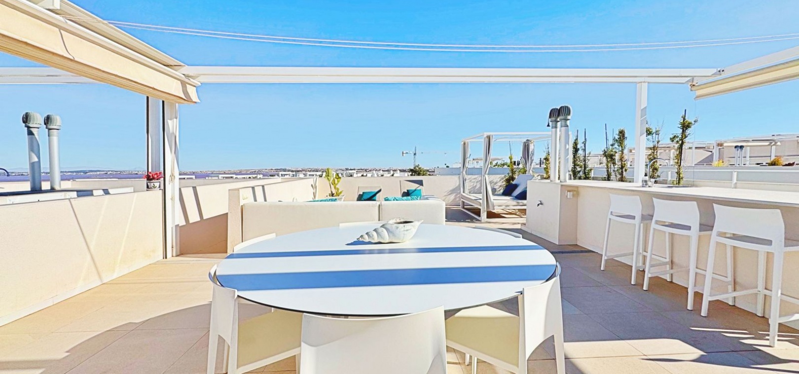 This exclusive penthouse in Mirasal, located in the prestigious Los Balcones area of Torrevieja, offers contemporary design, exceptional brightness, and a privileged elevated position. From this vantage point, enjoy panoramic views over Torrevieja, the Mediterranean Sea, and the iconic Pink Salt Lake, one of Costa Blanca’s most unique natural landscapes.