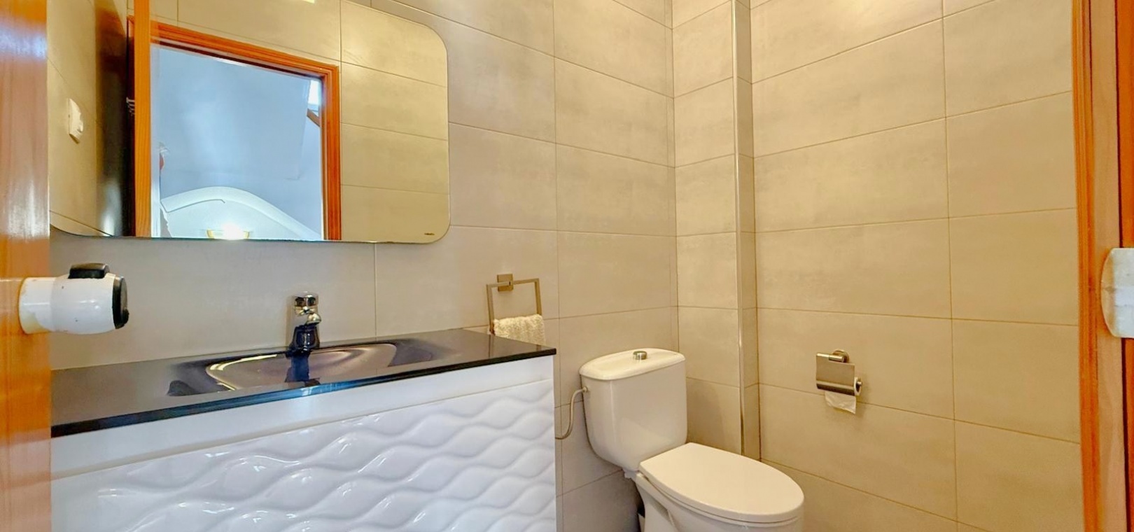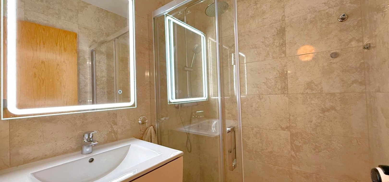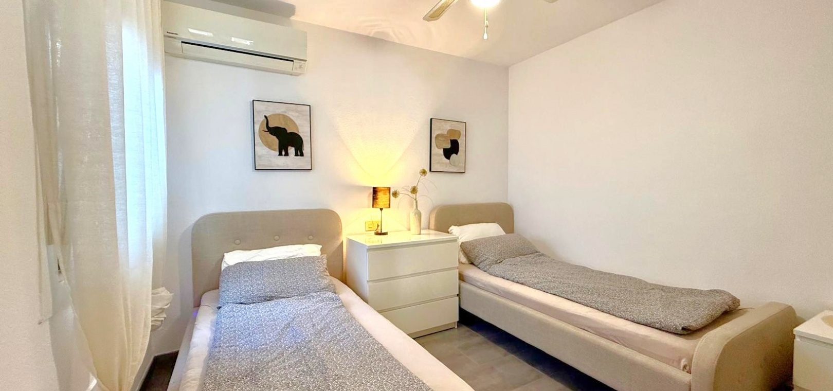 The townhouse offers three double bedrooms and two bathrooms, providing comfortable accommodation for families or guests.
