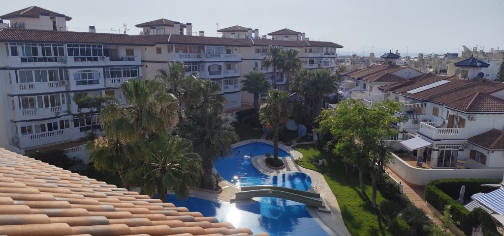 The complex is well-maintained and offers multiple access points, a lift, a communal swimming pool, and a communal rooftop solarium with panoramic views, including the open sea—a perfect spot to relax and unwind.