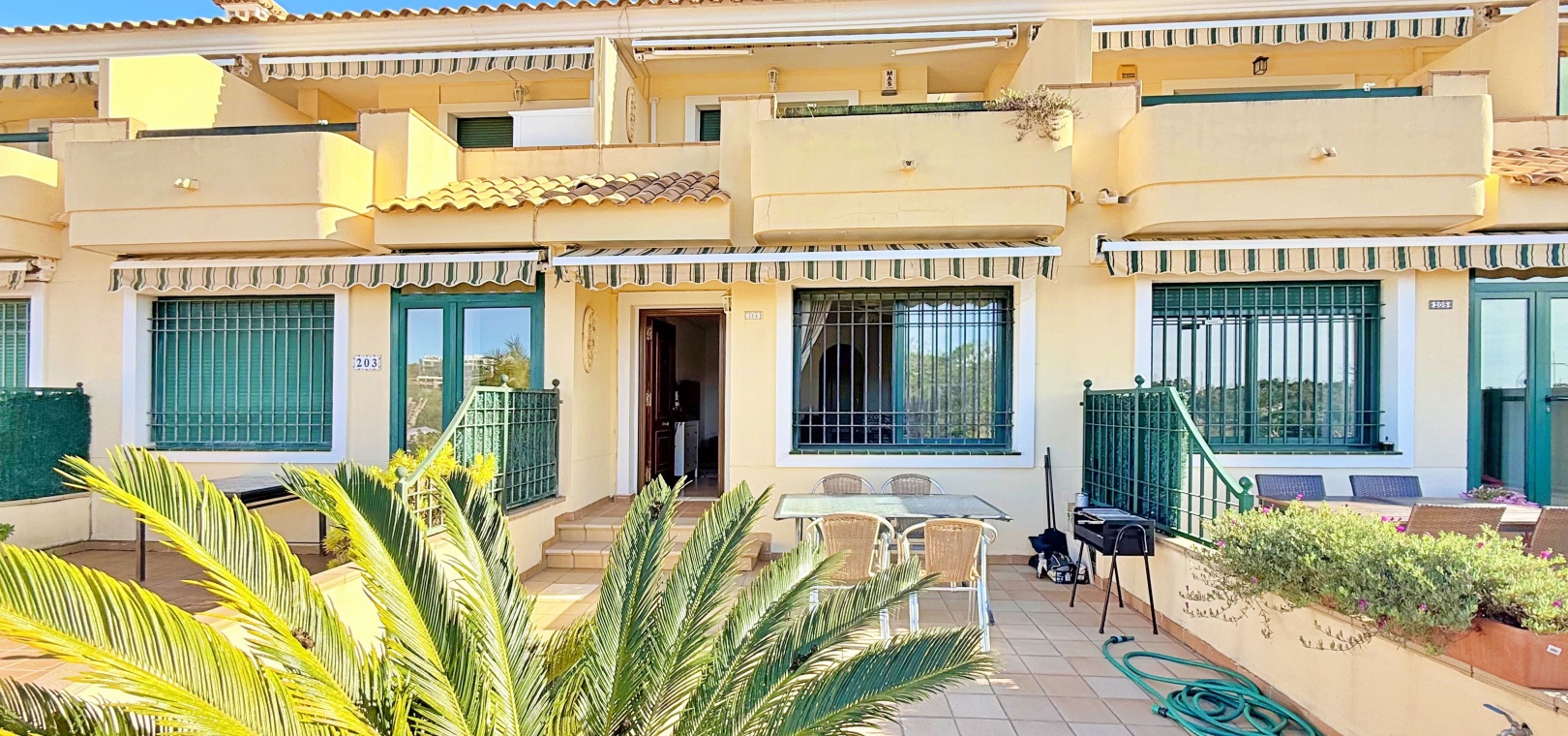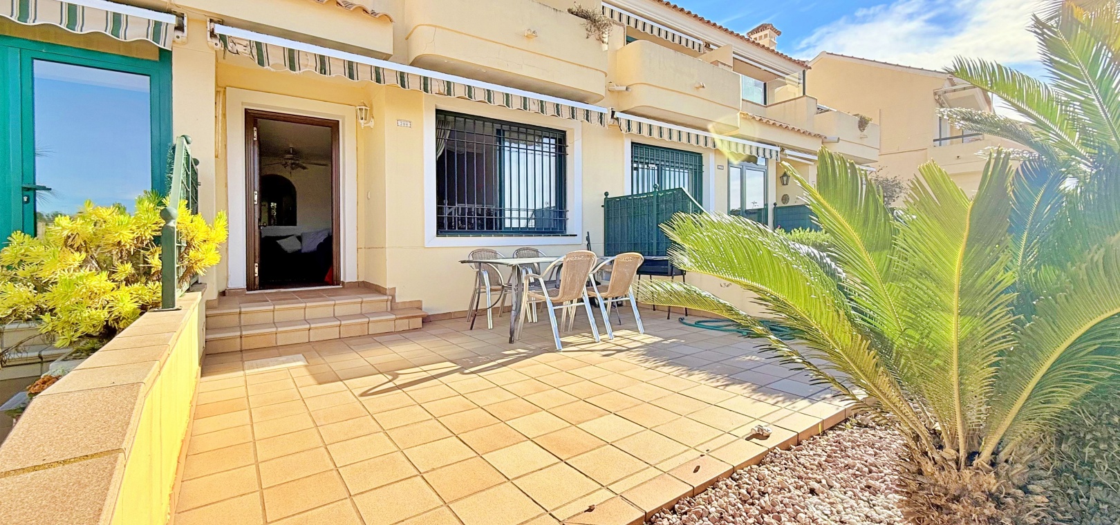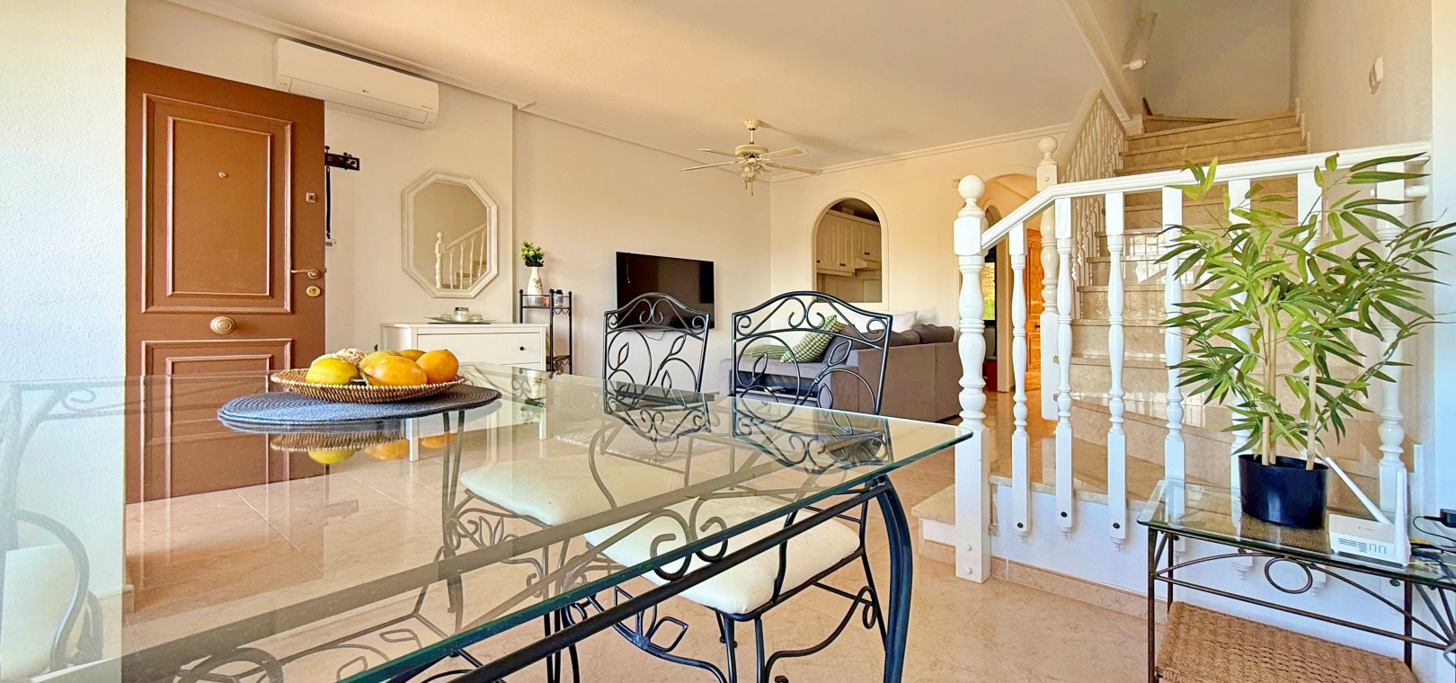 This well-presented townhouse is located in the popular residential area of Lomas de Campoamor and benefits from a desirable southwest orientation, allowing residents to enjoy the afternoon sun and beautiful sunset views. With 83 m² of built living space, the property offers a practical and comfortable layout, featuring two bedrooms, two bathrooms, and air conditioning throughout.