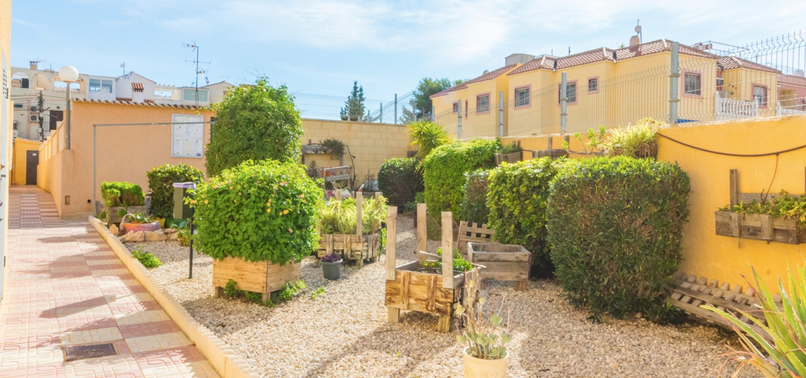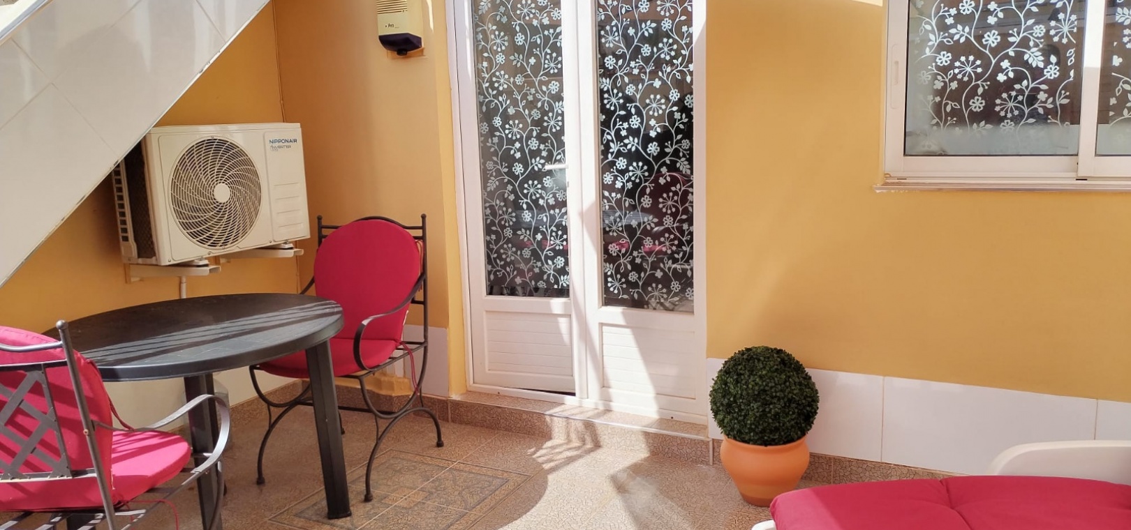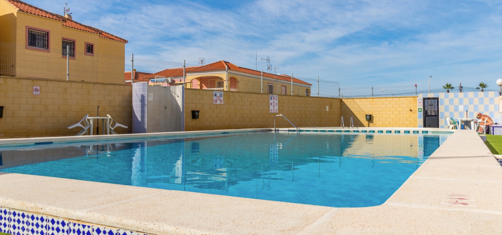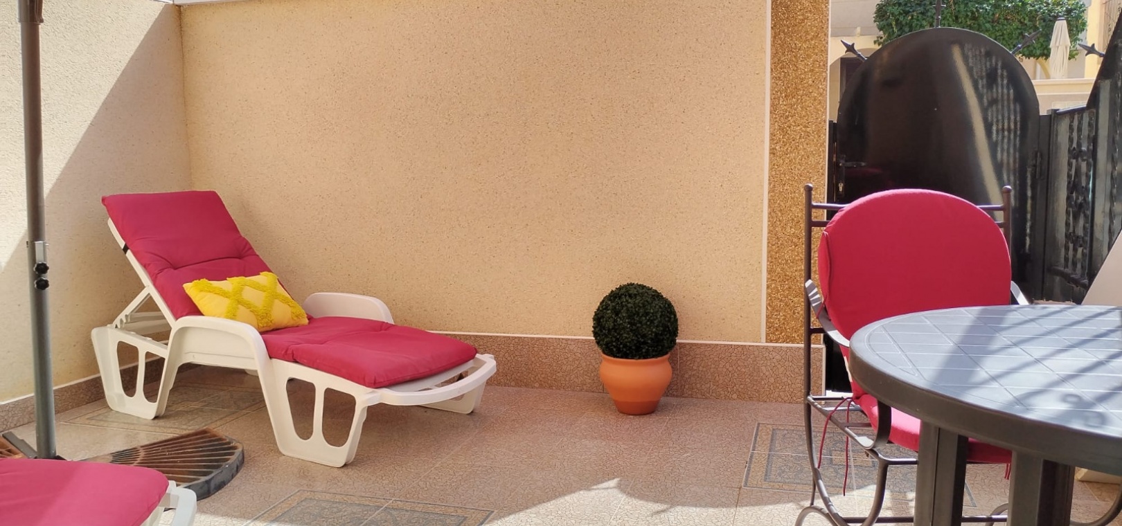Sold fully furnished and key-ready, the property includes extras such as newly installed air conditioning, white goods, and security shutters/grilles. Residents enjoy use of a small community swimming pool and well-maintained gardens located just next door.