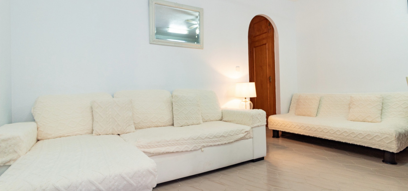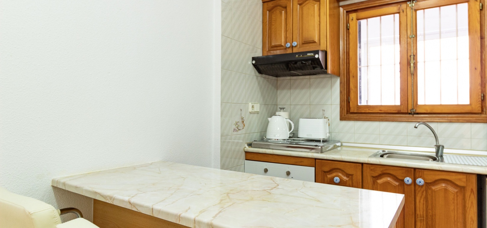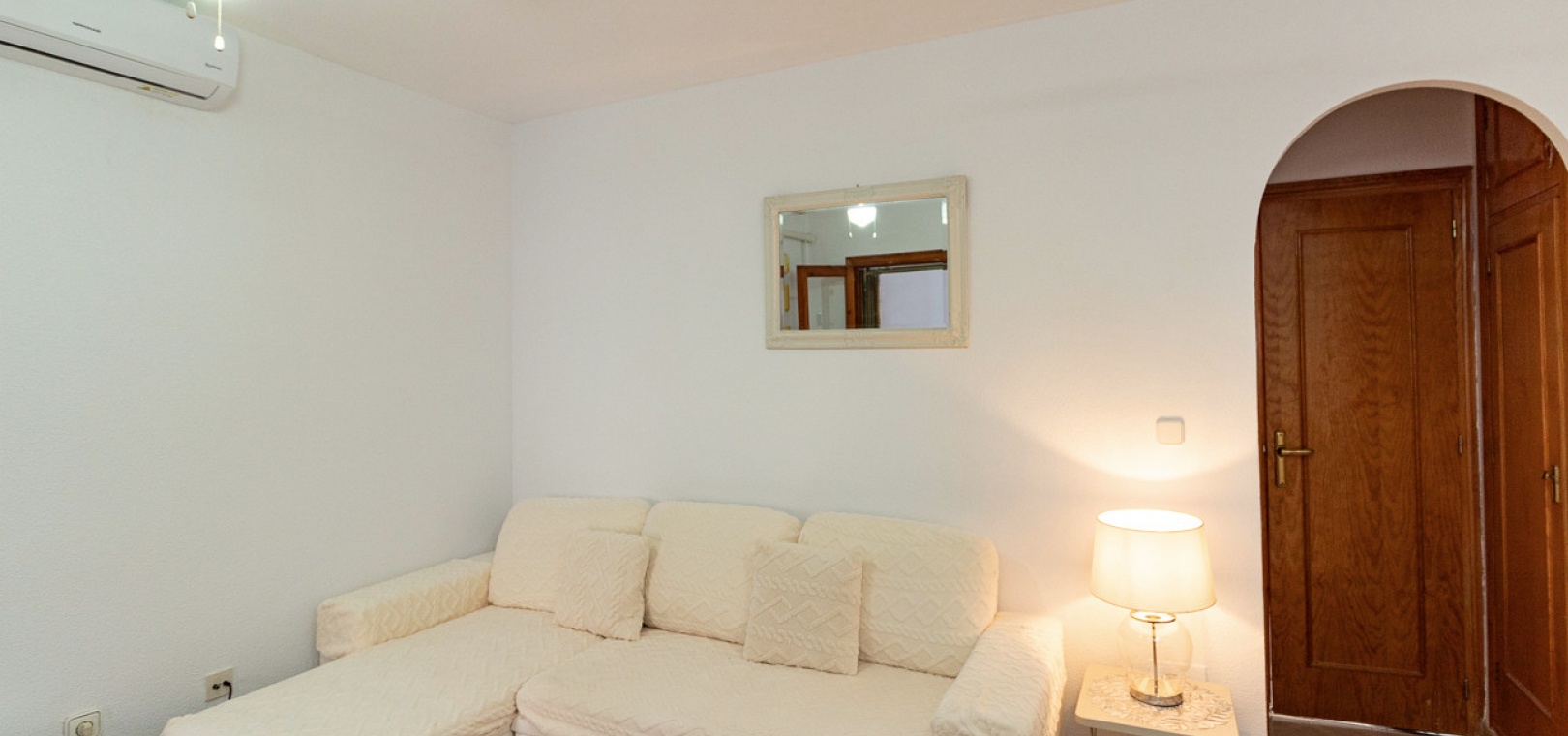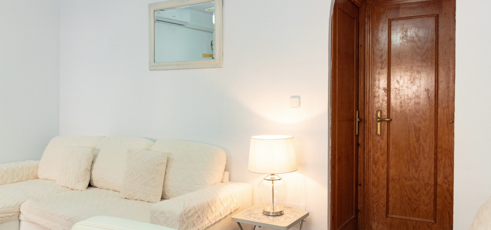 Sold fully furnished and key-ready, the property includes extras such as newly installed air conditioning, white goods, and security shutters/grilles. Residents enjoy use of a small community swimming pool and well-maintained gardens located just next door.