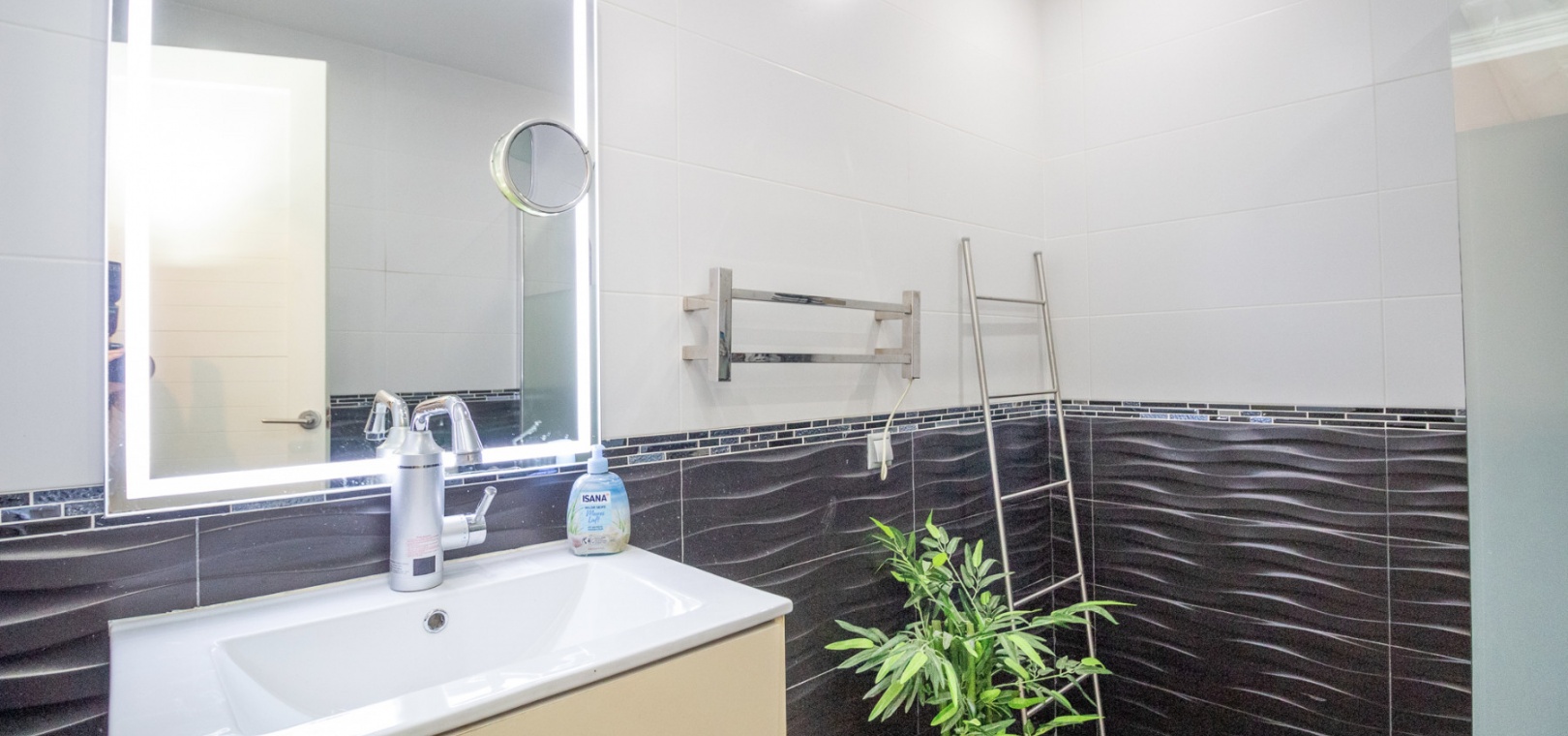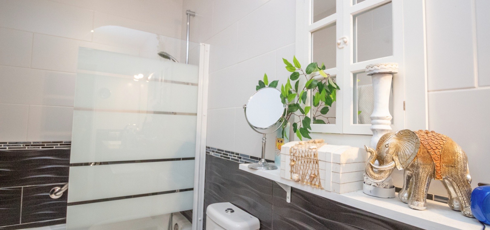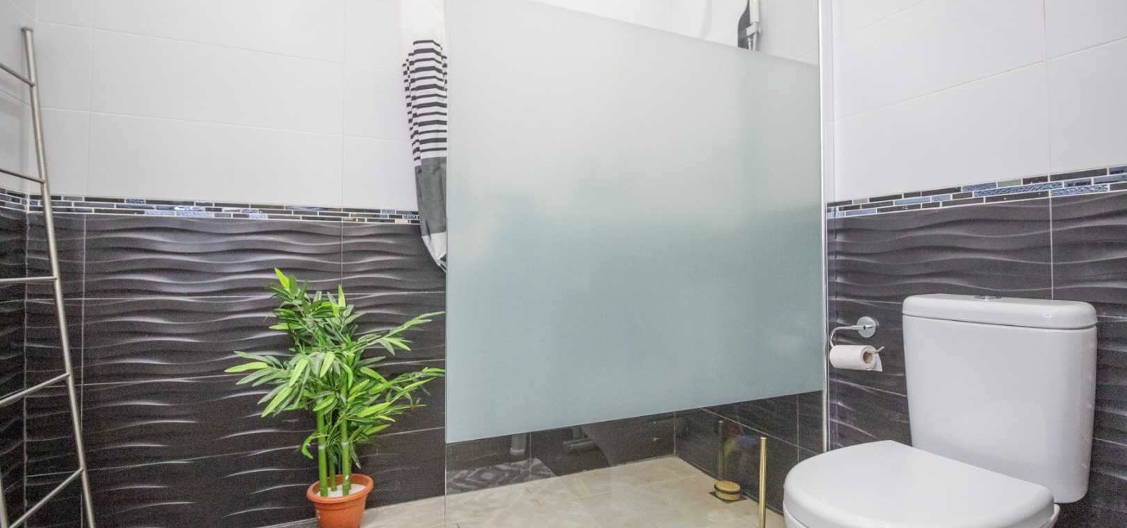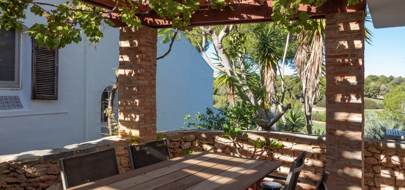 Upstairs, the main living area is flooded with natural light and offers stunning views over the surroundings. The first floor comprises a bright living and dining area, an American-style kitchen with a breakfast bar, and a guest WC. From here, you can access both the balcony and the private solarium, perfect for enjoying the sun or entertaining with panoramic vistas over the Villamartin golf course.