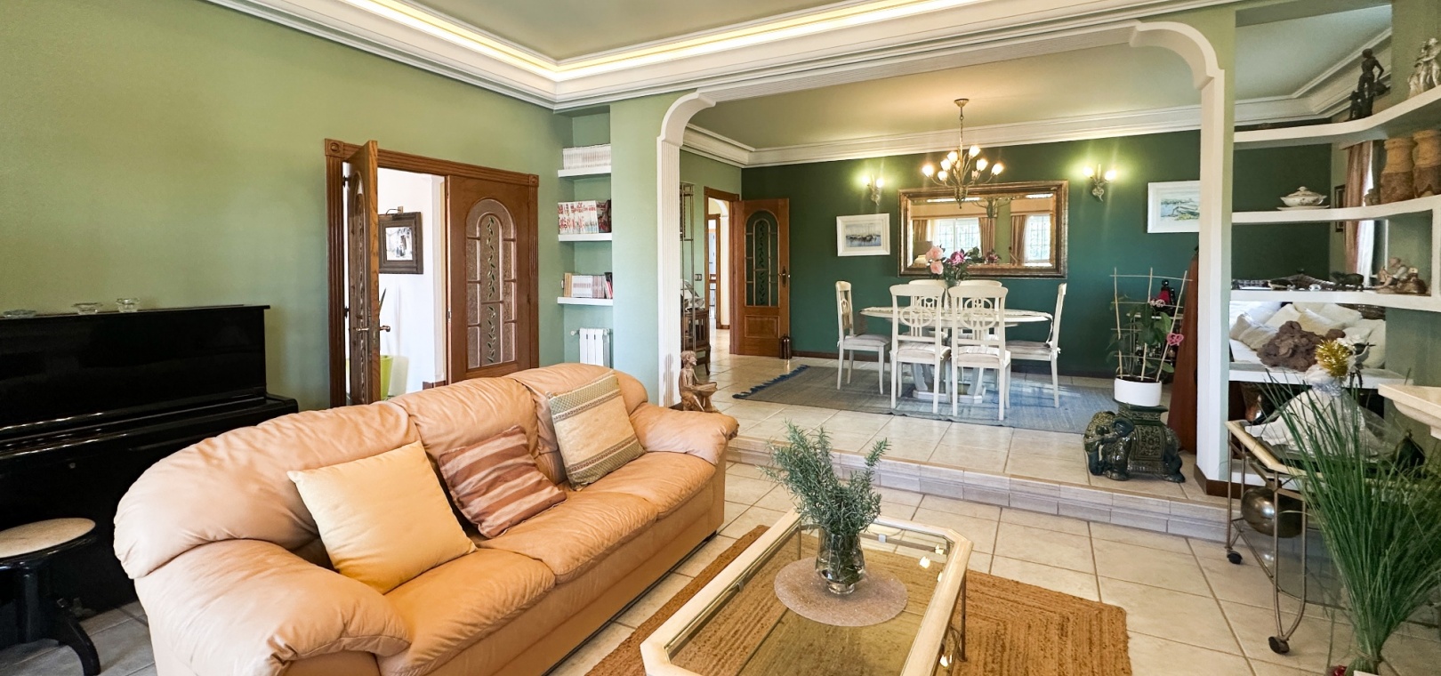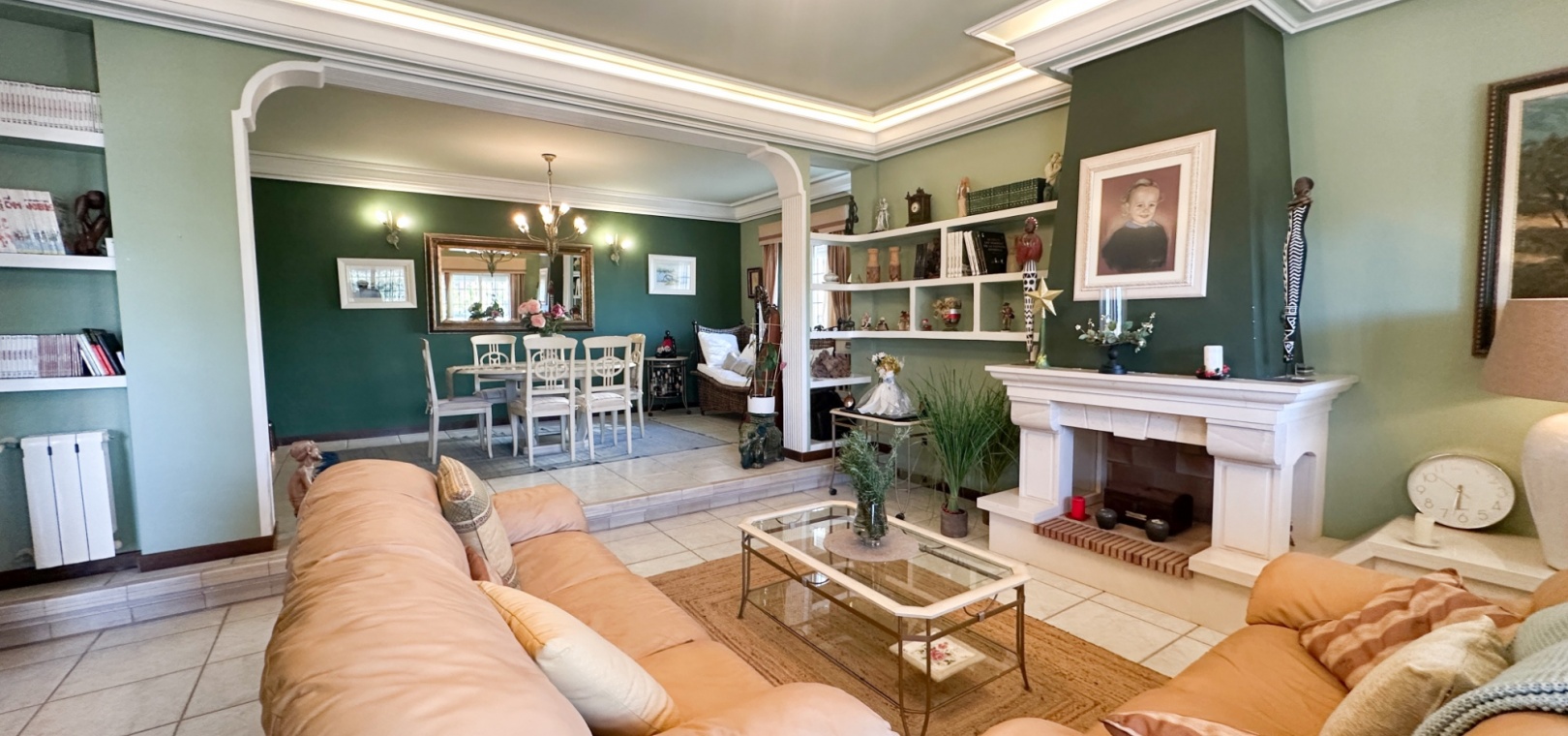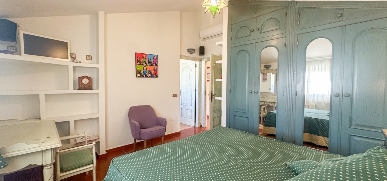 The villa features spacious and bright living areas, comprising six bedrooms and five bathrooms, making it ideal as a permanent family residence or a luxurious holiday home. Its south-facing orientation ensures excellent natural light throughout the day, enhancing the warm and welcoming atmosphere.
