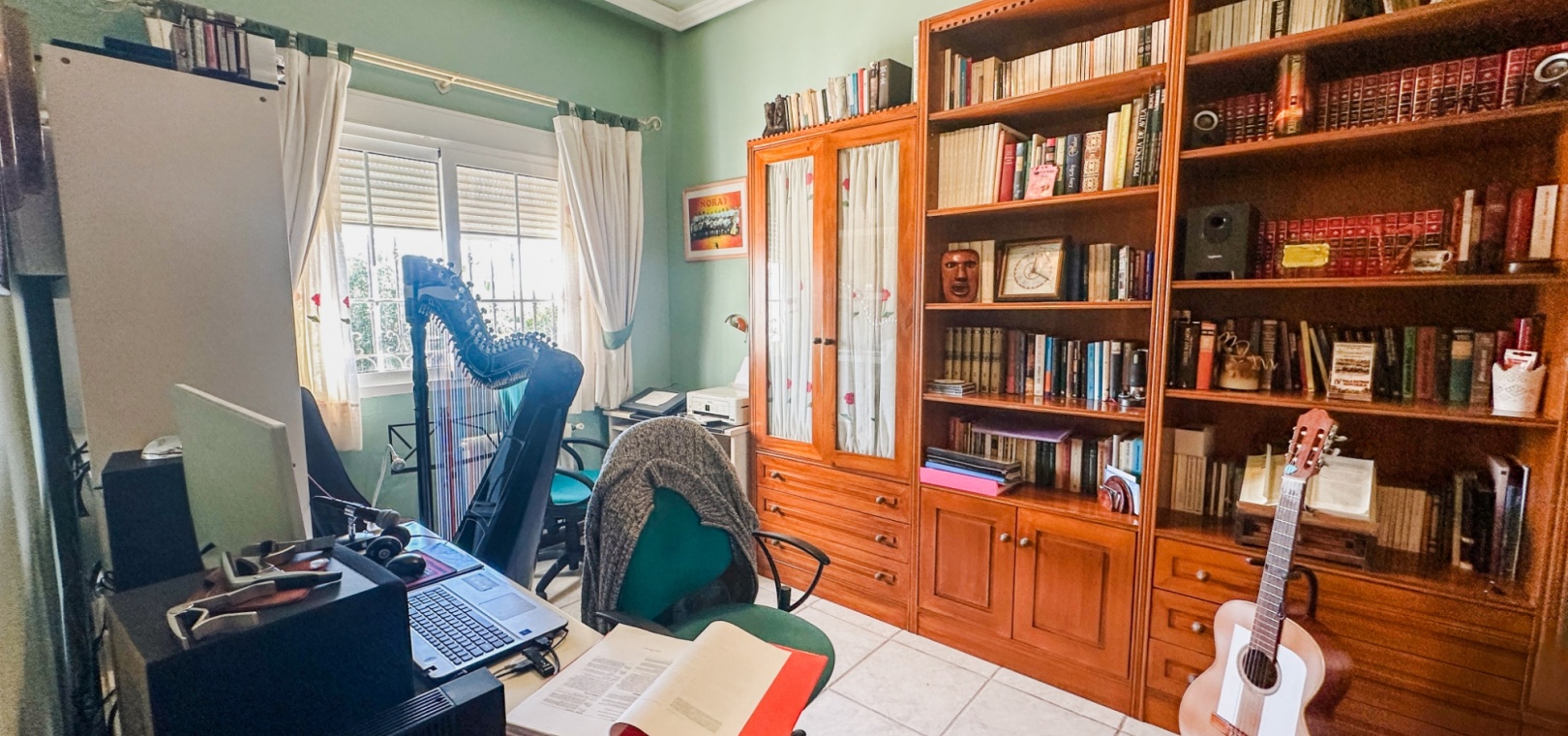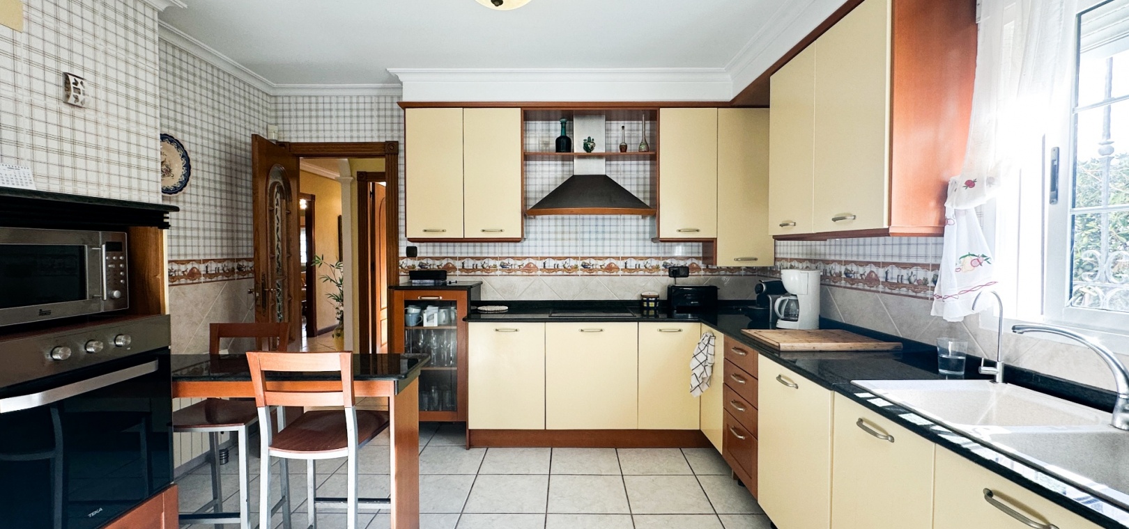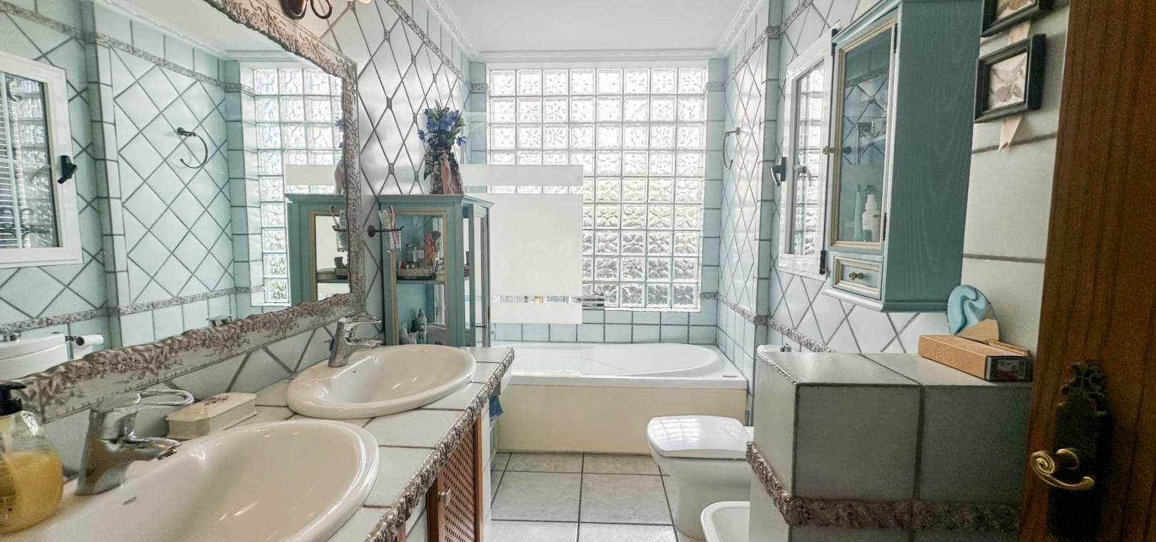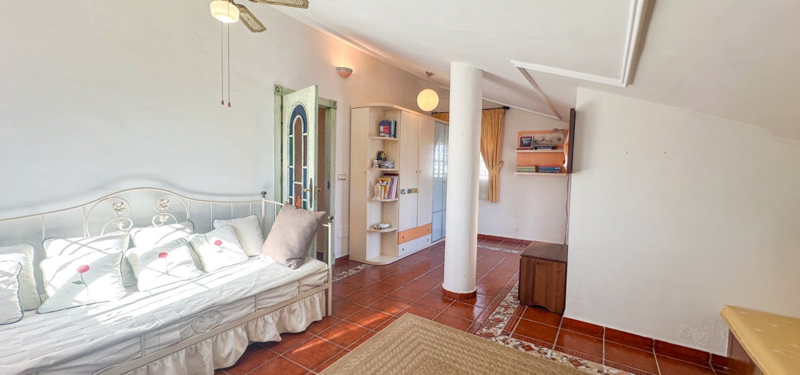 The villa features spacious and bright living areas, comprising six bedrooms and five bathrooms, making it ideal as a permanent family residence or a luxurious holiday home. Its south-facing orientation ensures excellent natural light throughout the day, enhancing the warm and welcoming atmosphere.
