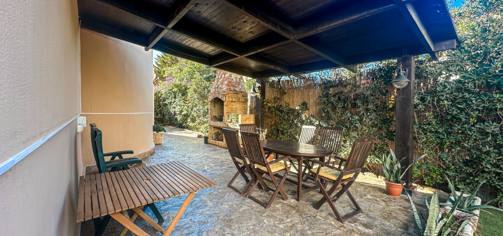 Externally, the property boasts a private swimming pool surrounded by terraces, perfect for sunbathing, dining, or enjoying the Mediterranean climate. Beautifully landscaped gardens provide privacy and tranquillity.