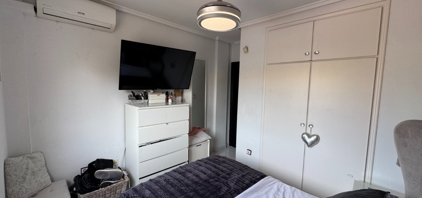 The apartment is south-facing and benefits from hot and cold air conditioning throughout, ensuring year-round comfort. It is fully furnished with high-quality furniture, fixtures, and fittings, complemented by elegant white porcelain flooring throughout.