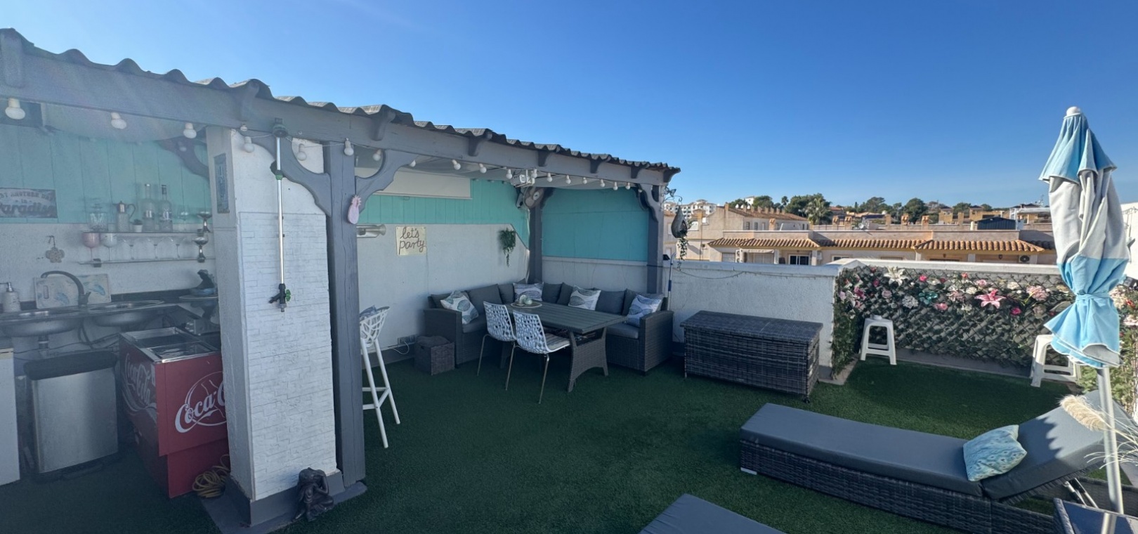 A standout feature of this property is the private rooftop solarium, fully equipped with a bar and sunbathing area—ideal for enjoying Mediterranean evenings in style. Additional benefits include a designated private parking space.