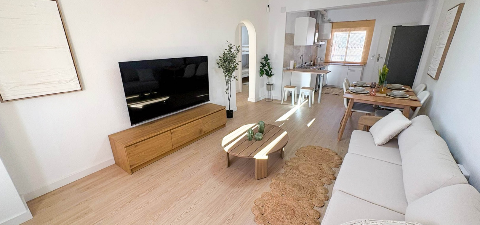 With 69 m² built, the property offers a modern, functional, and welcoming interior. It features two bright bedrooms, one stylishly renovated bathroom, a comfortable living–dining area, and a fully equipped contemporary kitchen, ideal for everyday living.