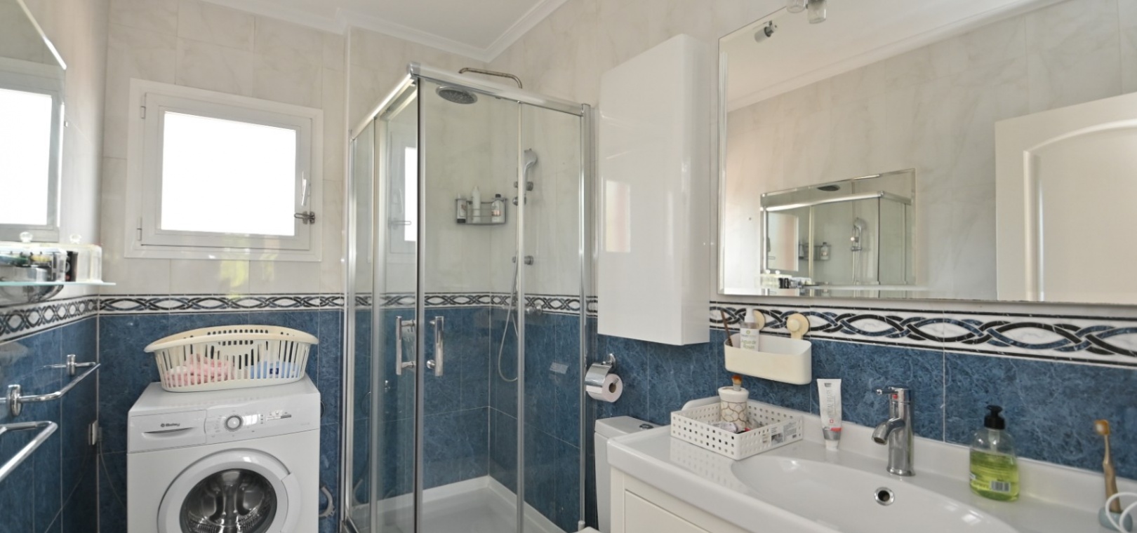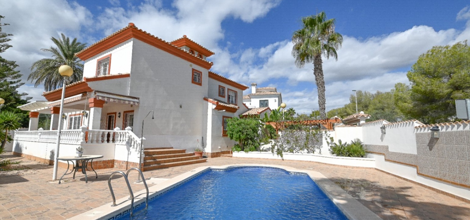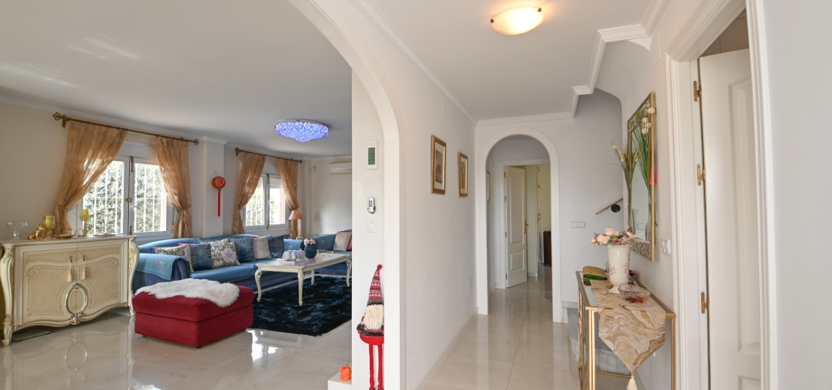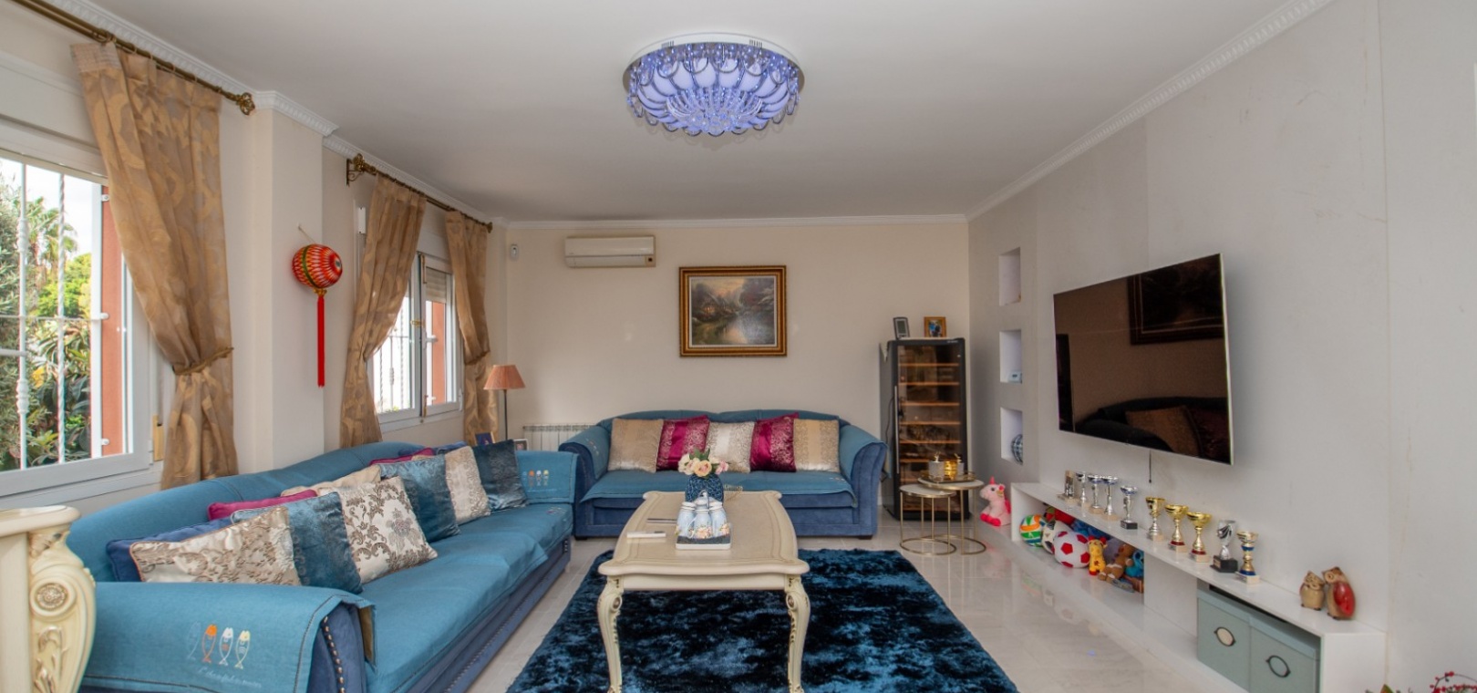 The villa has a total built area of 234 m² set on a manageable plot and is arranged over two levels. Outdoor spaces include a private swimming pool, tiled terraces, and shaded parking, creating an easy, low-maintenance lifestyle. With gas central heating, hot and cold air conditioning, and modernised interiors, the home is well prepared for comfortable year-round living.
