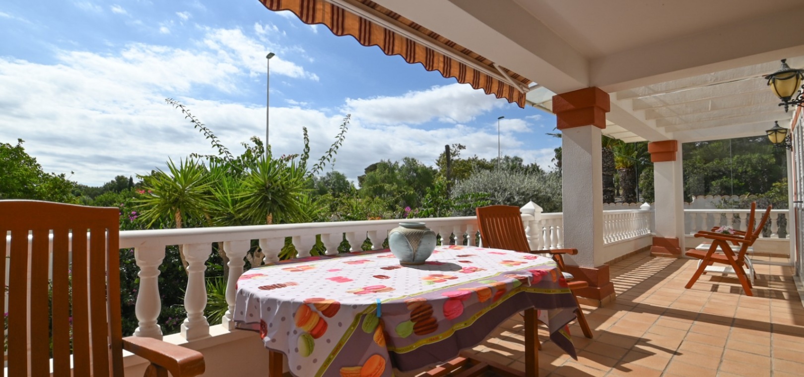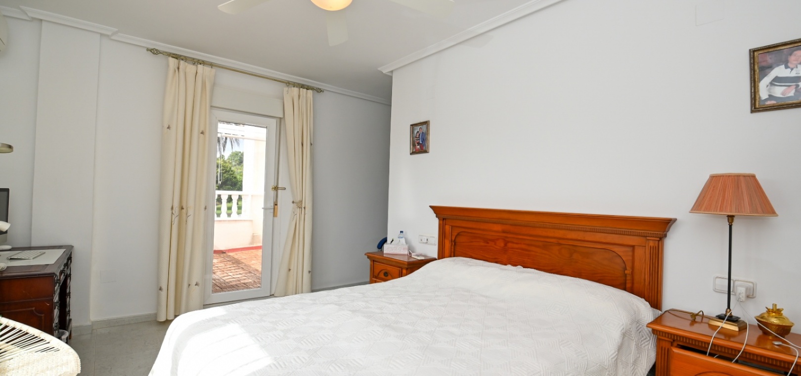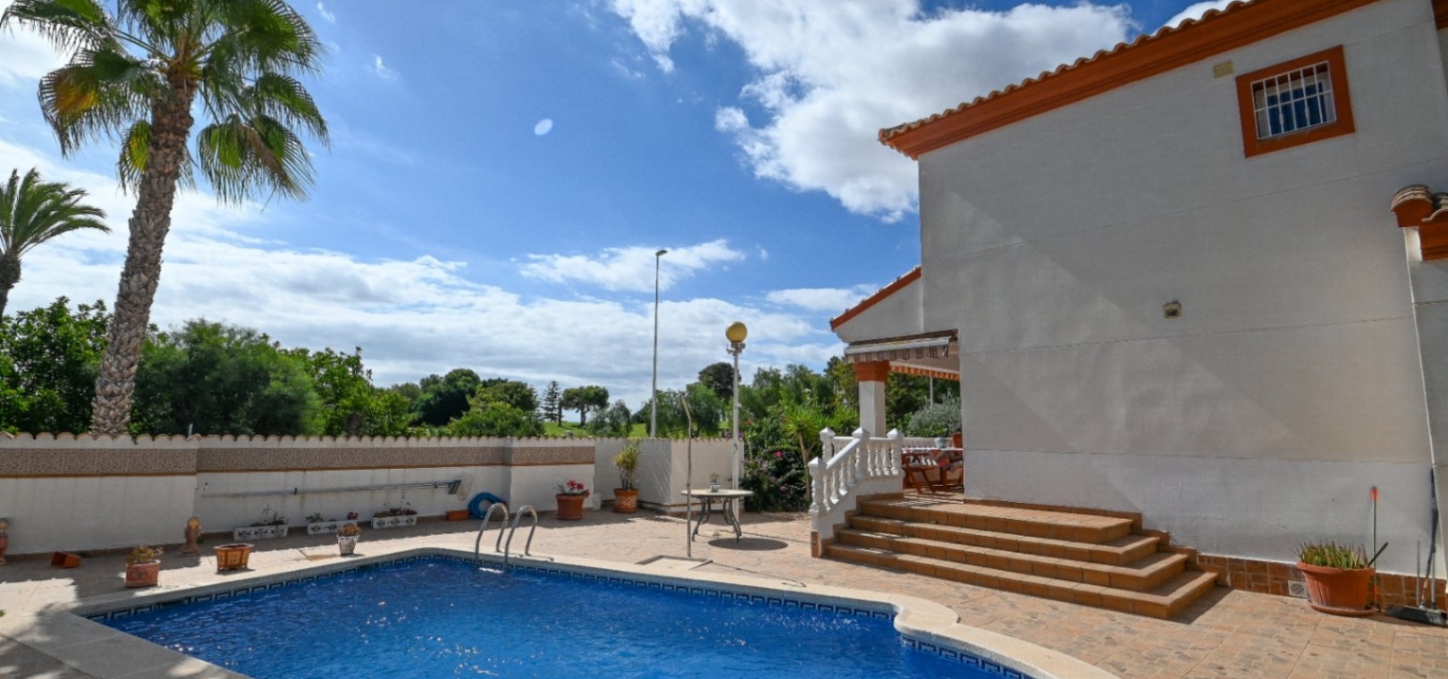 This four-bedroom villa in Campoamor enjoys a privileged corner position with open views across the golf course, combining a sought-after location with a practical layout suited to both full-time living and use as a second home on the Costa Blanca. The property offers privacy, excellent natural light, and direct fairway views, while remaining just a short walk from the La Fuente commercial centre and the Campoamor golf clubhouse.
