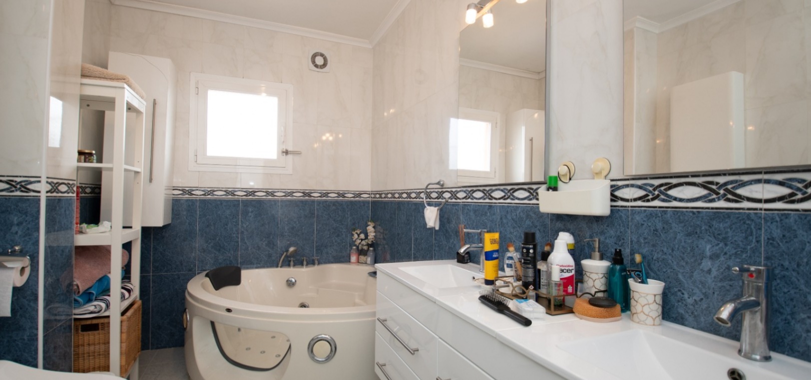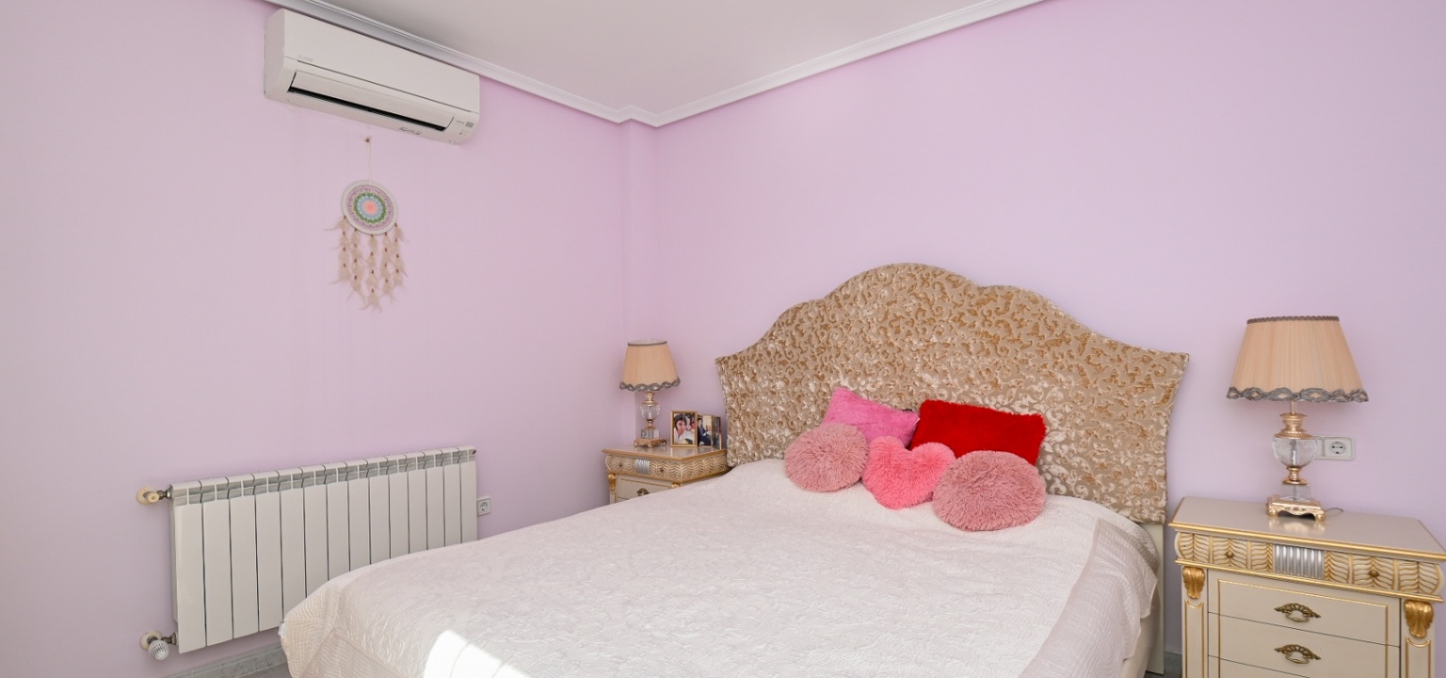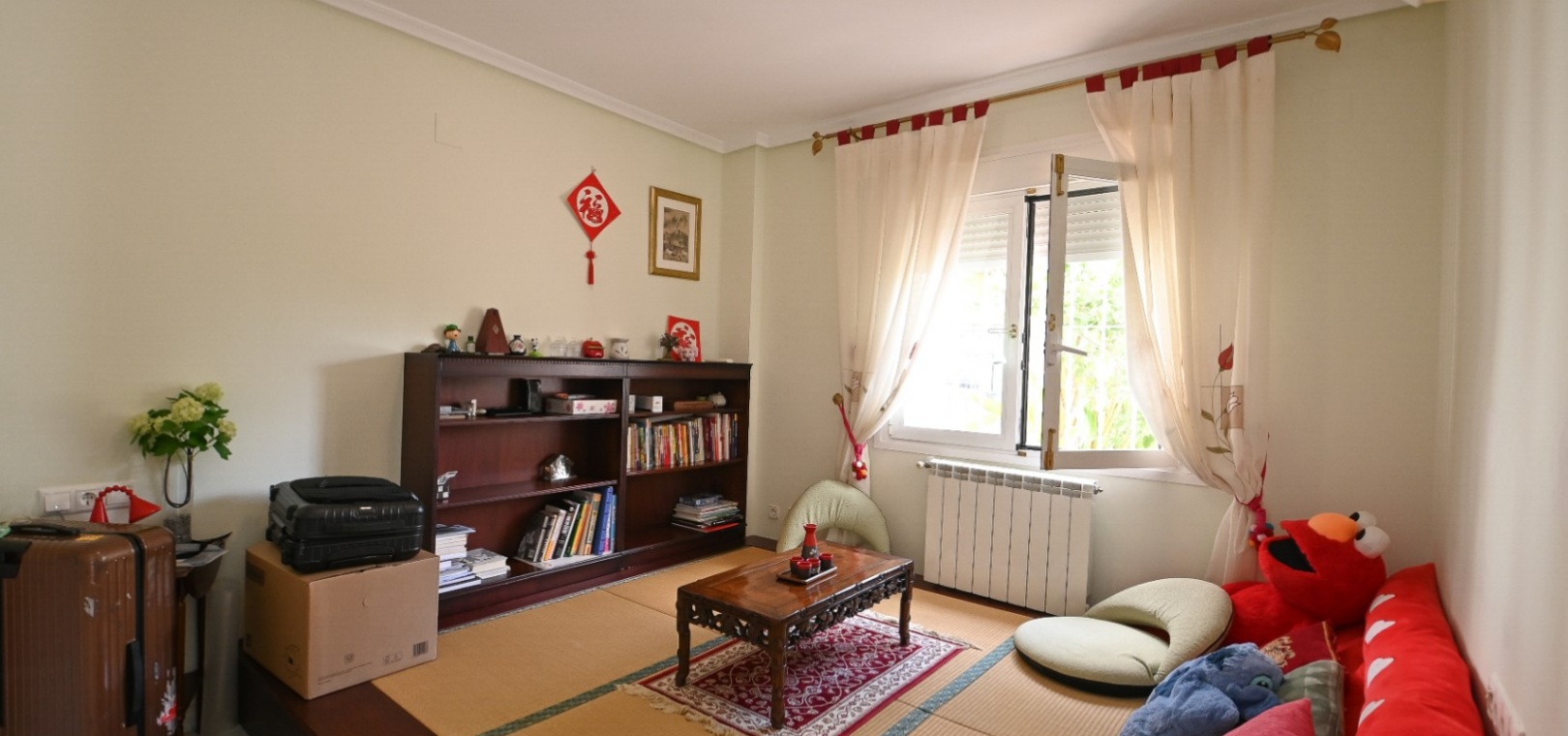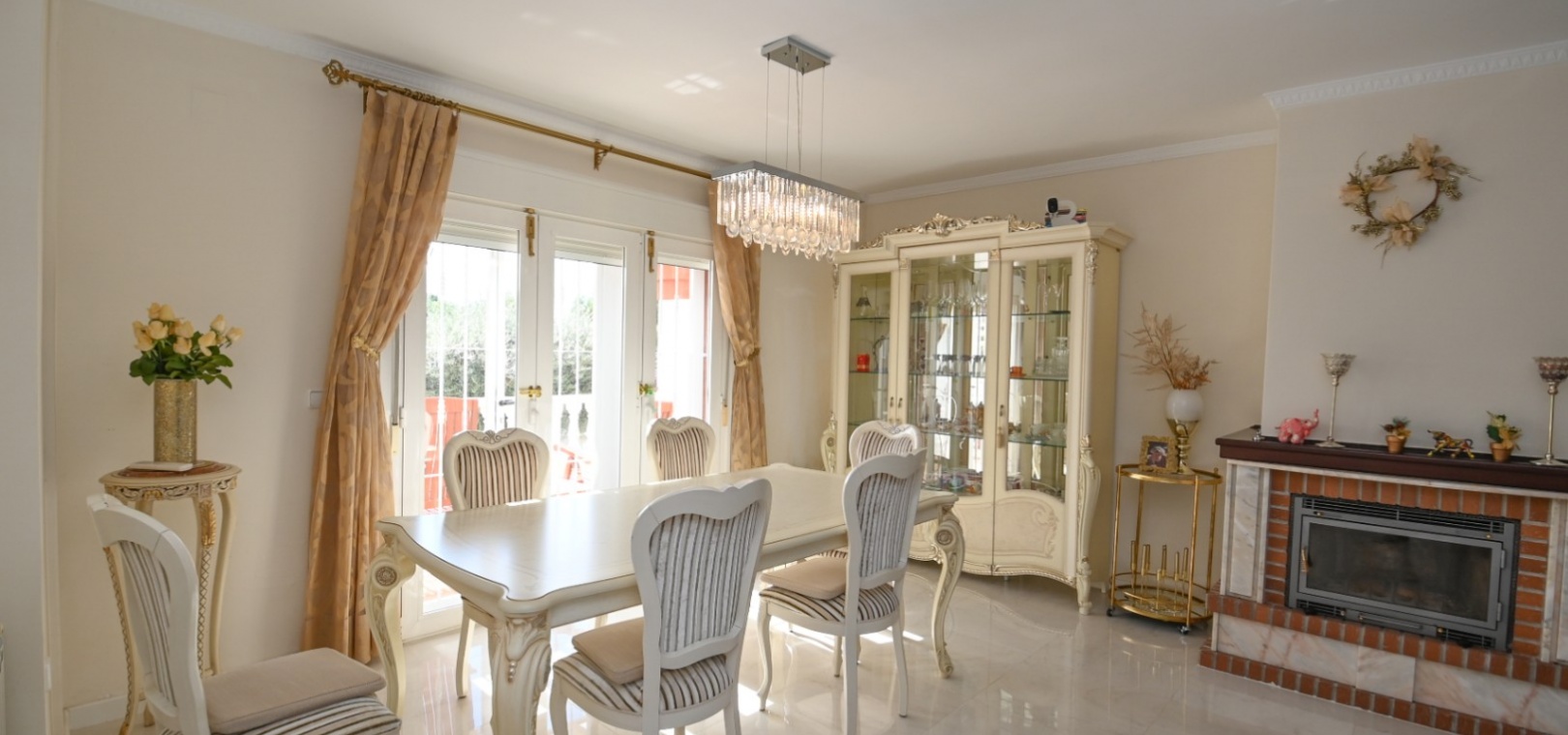 Additional features include double glazing throughout, new ground-floor floor tiling, gas central heating, and hot and cold air conditioning. The villa was originally constructed as a five-bedroom property, with one bedroom removed to create a more spacious living area. The property is sold part furnished, allowing buyers to move in with ease while still offering scope for personalisation.