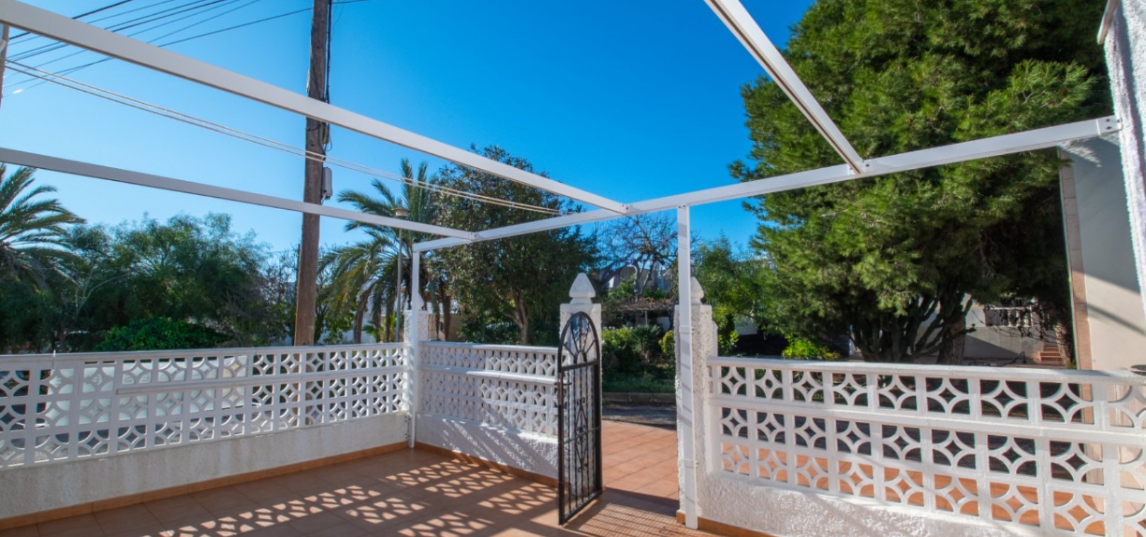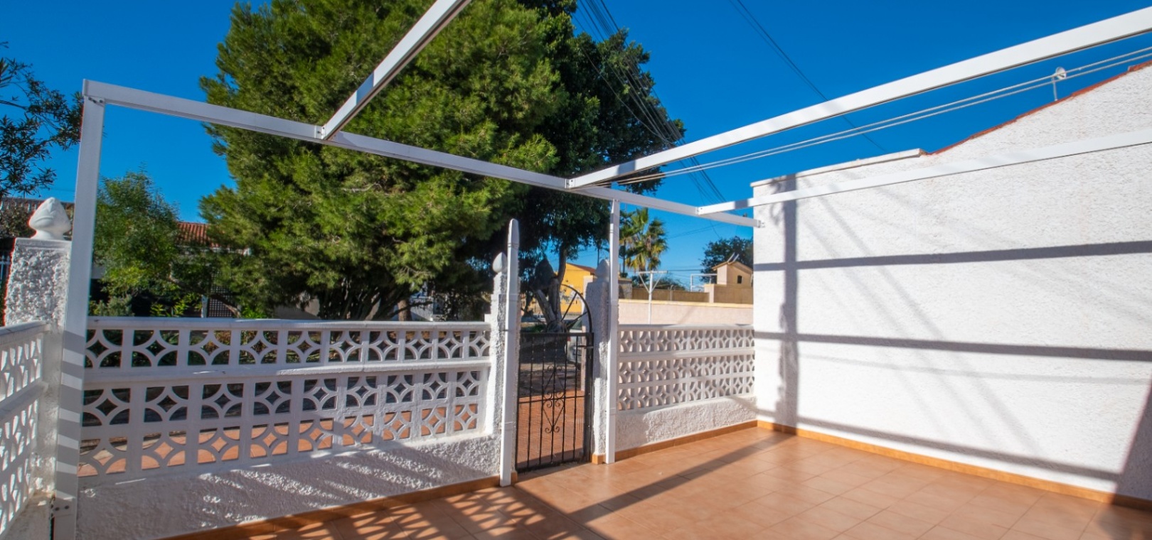 The property is set on a quiet, tree-lined street with a pleasant open outlook and benefits from off-street parking. To the front, a generous terrace provides an excellent space for outdoor dining or relaxing, complemented by a fitted awning that offers welcome shade during the warmer parts of the day.