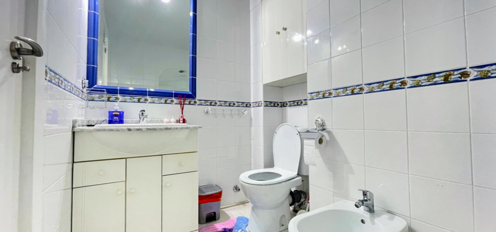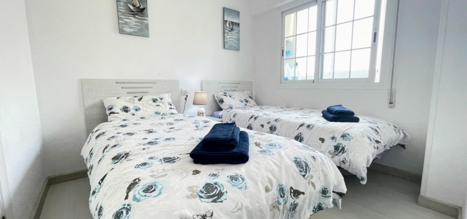 Positioned on the beach side of Punta Prima, the property is just a five-minute walk from the sea and benefits from access to a large communal swimming pool within the complex. A wide selection of amenities, including shops, bars, restaurants, and everyday services, are all within easy walking distance.