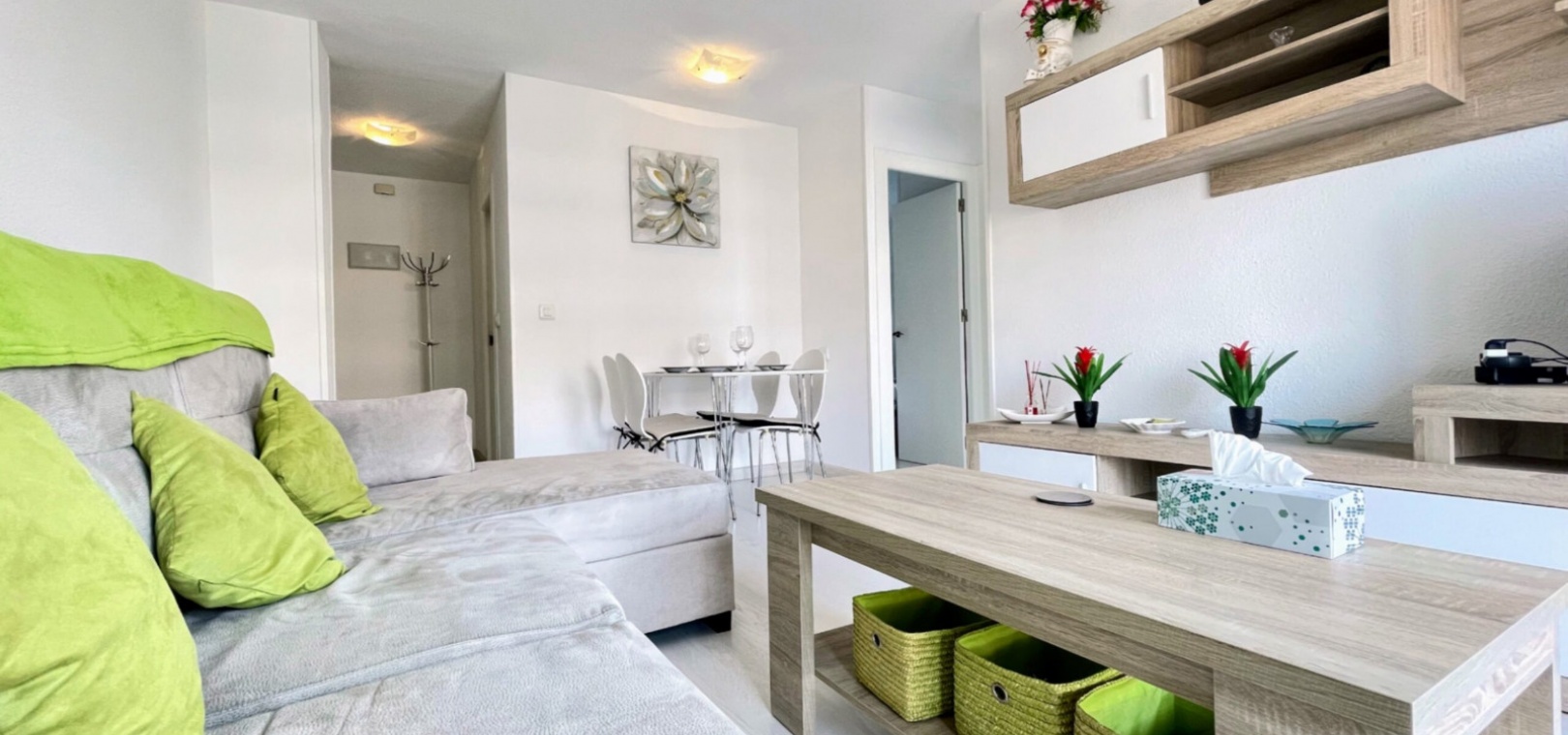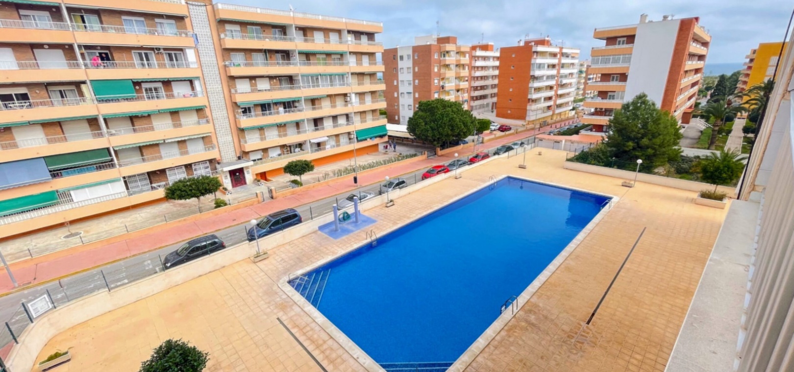 The apartment opens into an entrance hallway leading through to a bright living room. From here, there is access to a private balcony overlooking the communal swimming pool, offering a pleasant space to relax and enjoy the outlook. The property also comprises two well-proportioned bedrooms and a family bathroom, all arranged for practical and comfortable living.Thanks to its excellent location, lift access, proximity to the beach, and nearby amenities, this apartment is ideal as a holiday home, rental investment, or permanent residence.