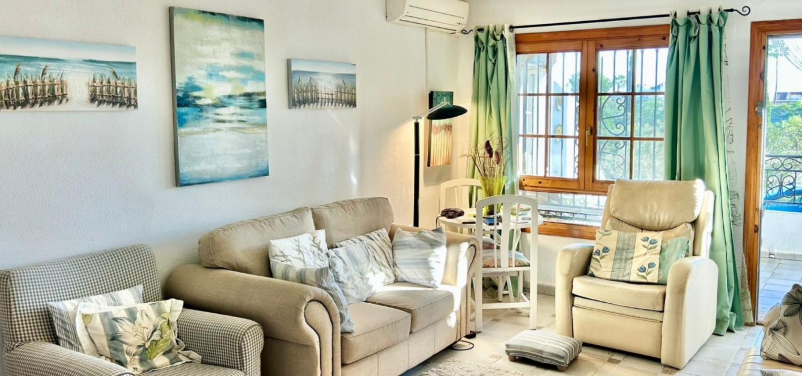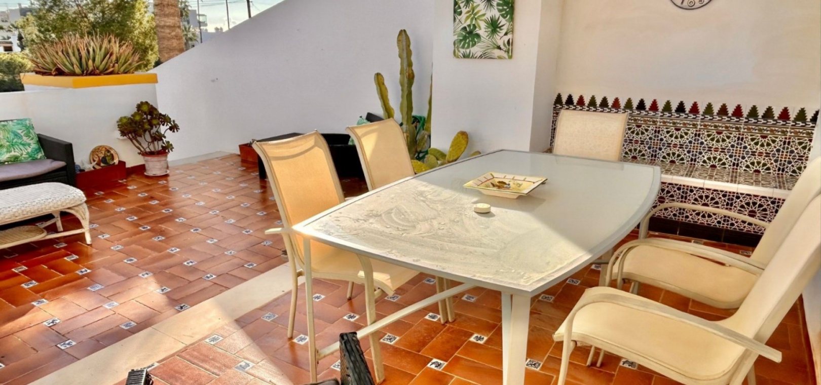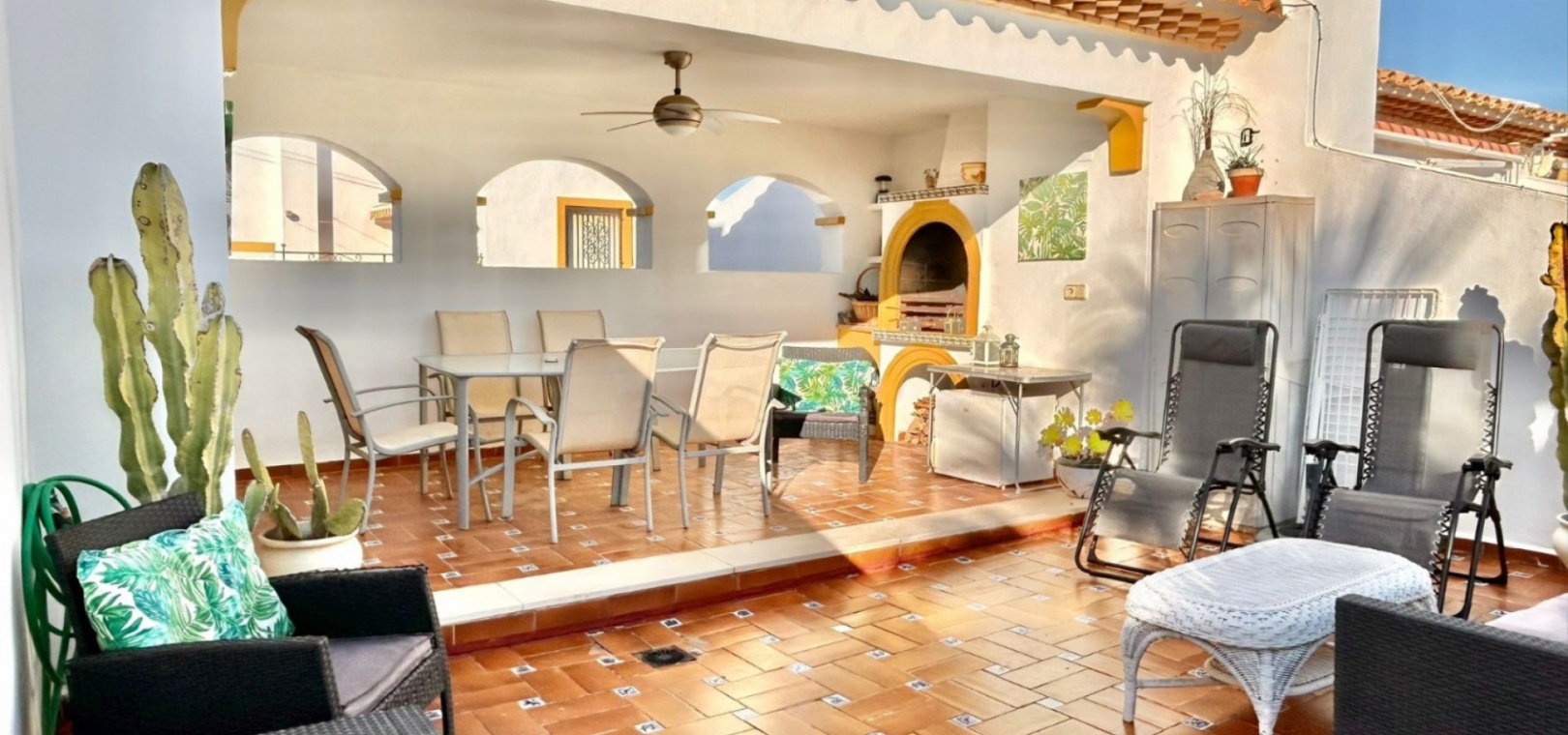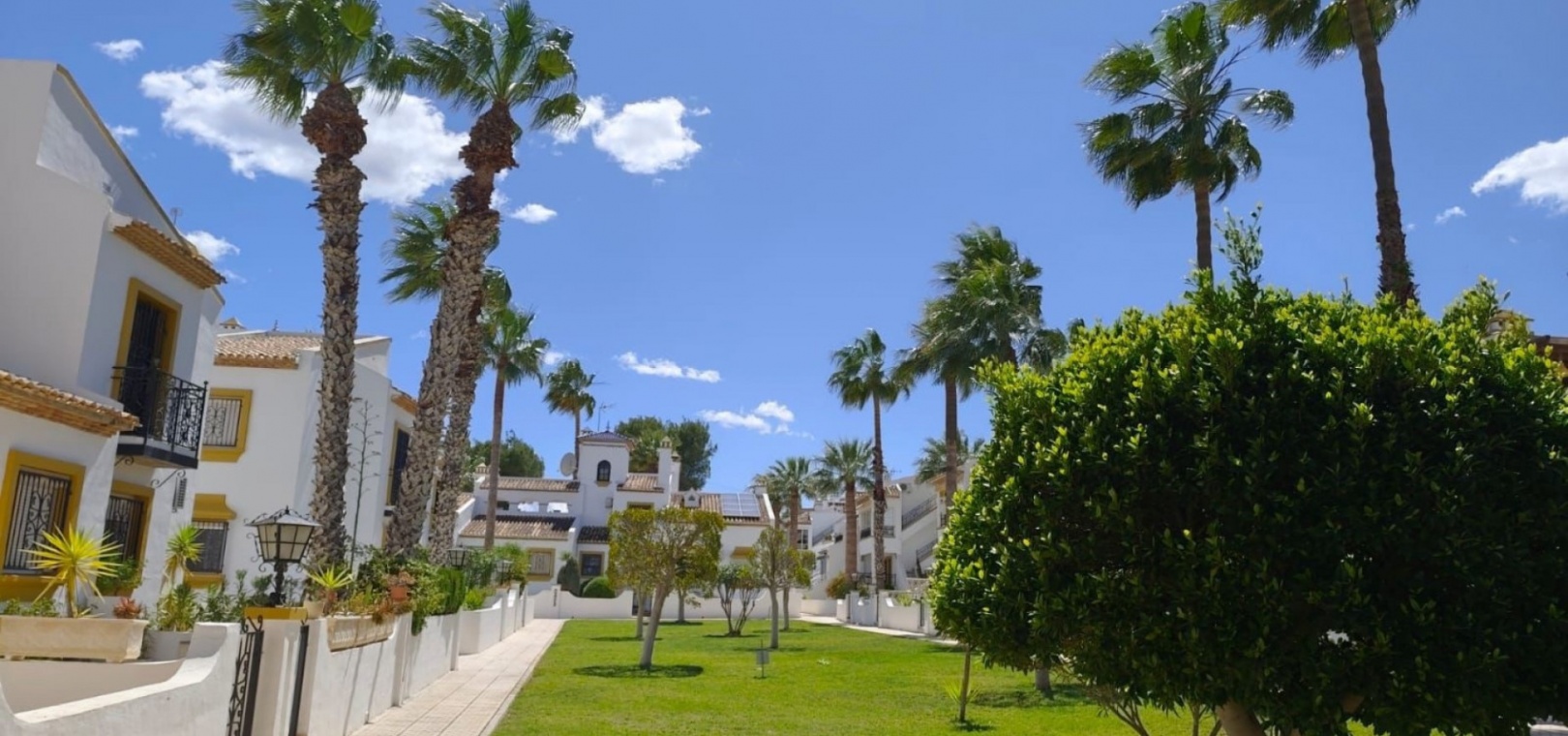 This charming Lola-style townhouse is ideally located on one of the most attractive and sought-after urbanisations in Costa Blanca South, just a short walk from one of two beautiful communal swimming pools.