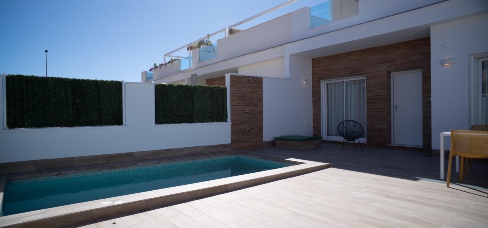 New Build luxury complex of 24 one level villas or on 2 floors with private pool, terraced area and solarium with Summer kitchen that allows you to enjoy all hours of sunshine, every day of the year.
