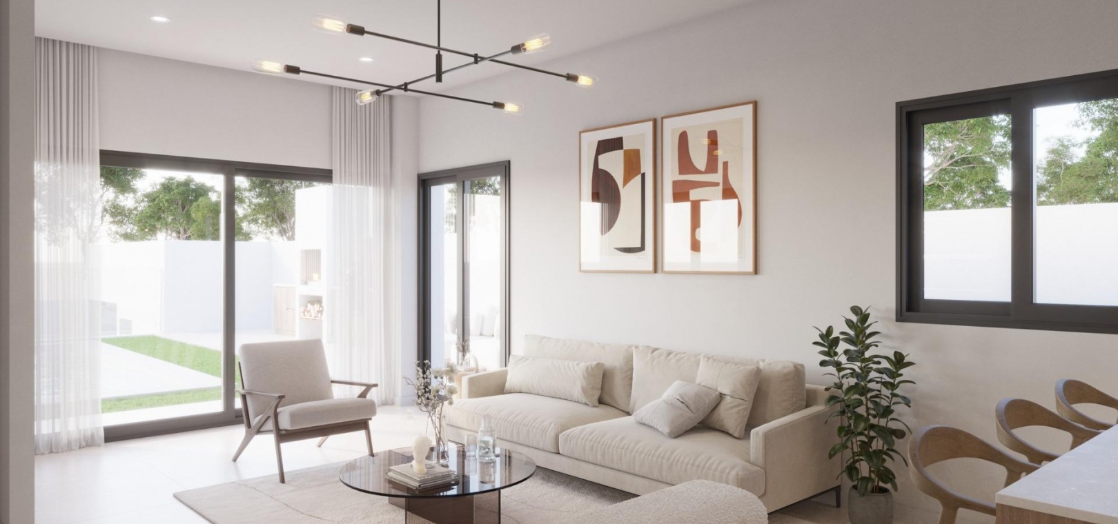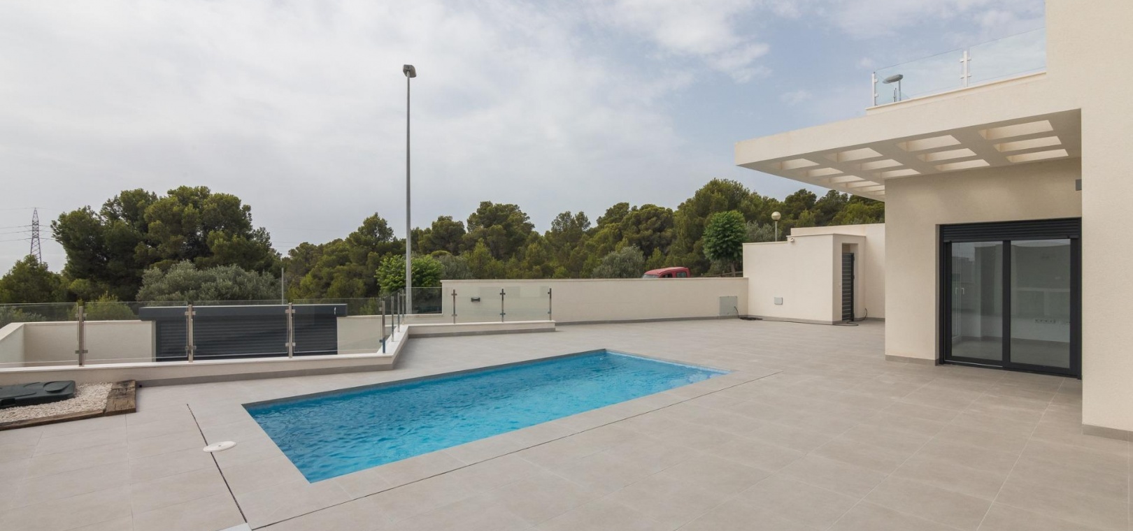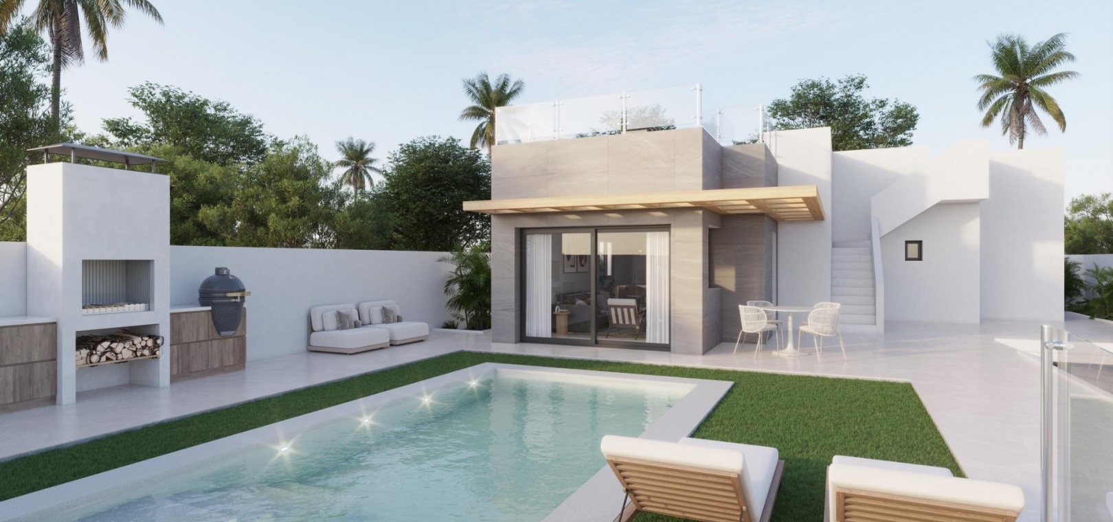 Its architectural design and wide distribution on one floor, allows that, through huge windows, all rooms have direct access to the private pool and barbecue area.