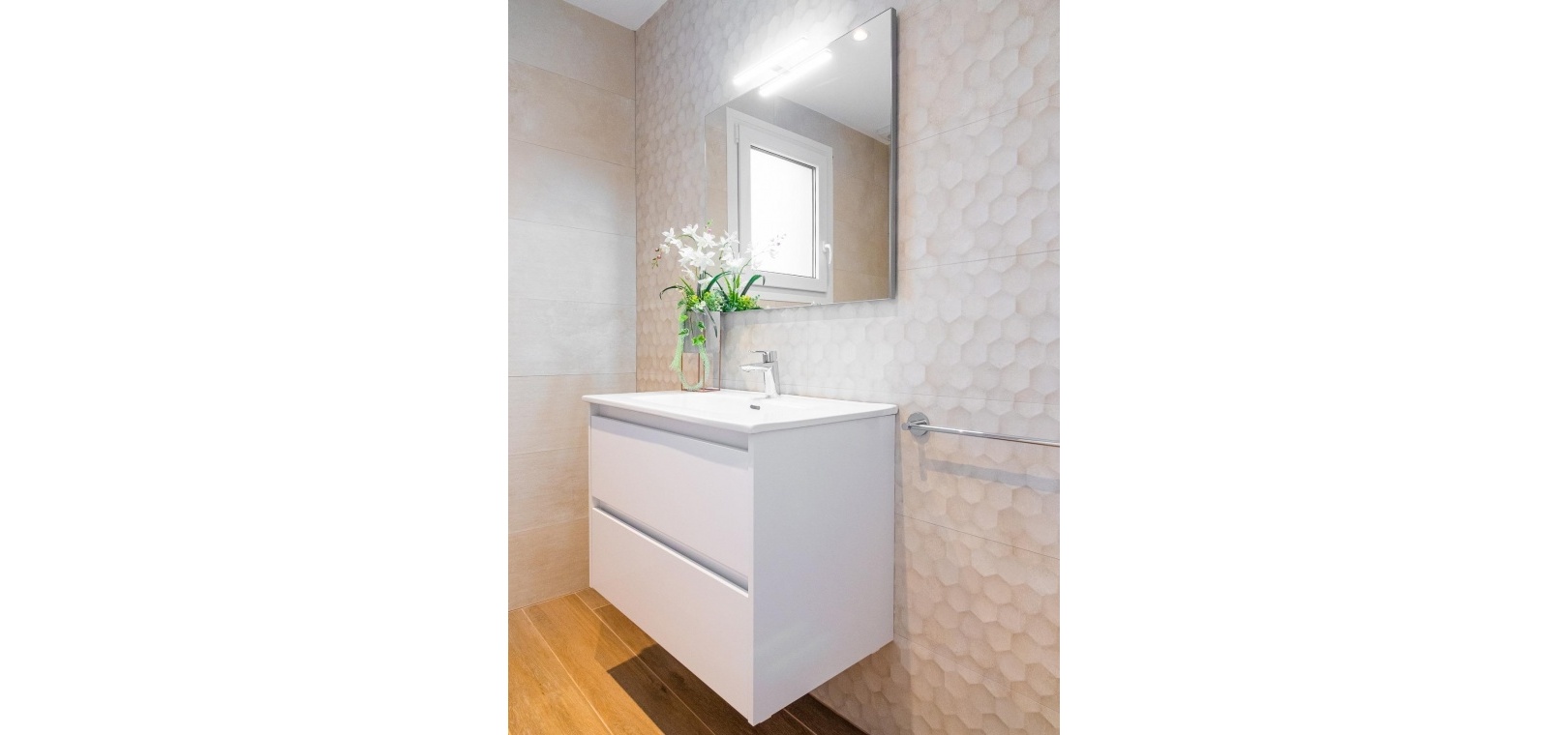 With 400 m2 of plot and 100 m2 of surface the villa is distributed in living room - fully equipped kitchen, 3 double bedrooms and 2 bathrooms, both with underfloor heating system. The pre-installation of air conditioning and the best finishes on the market will make you enjoy all the comforts you deserve in a genuinely Mediterranean environment.