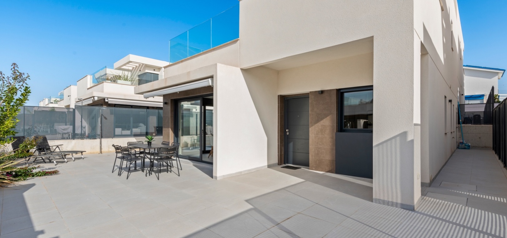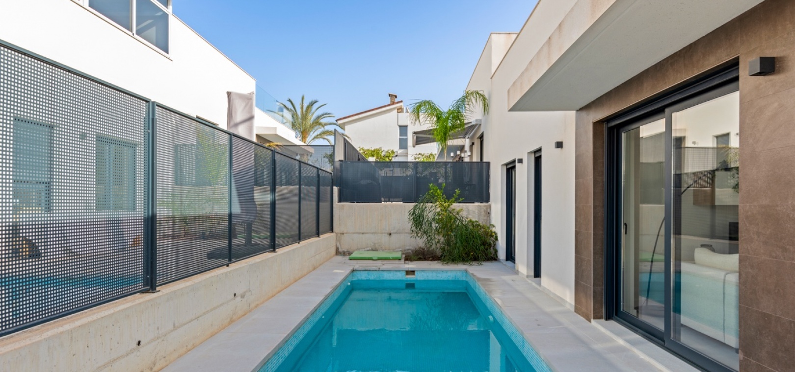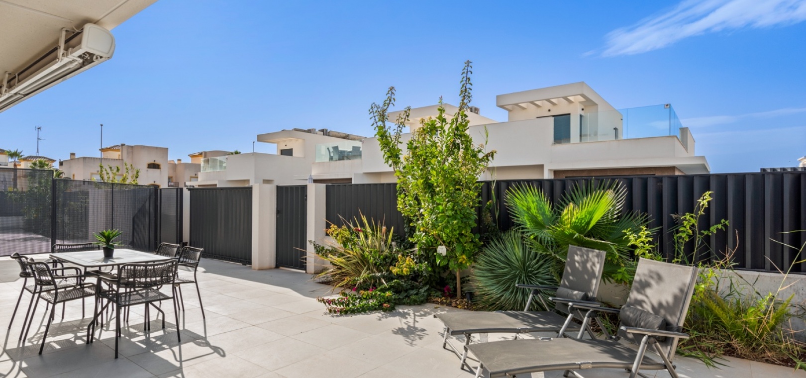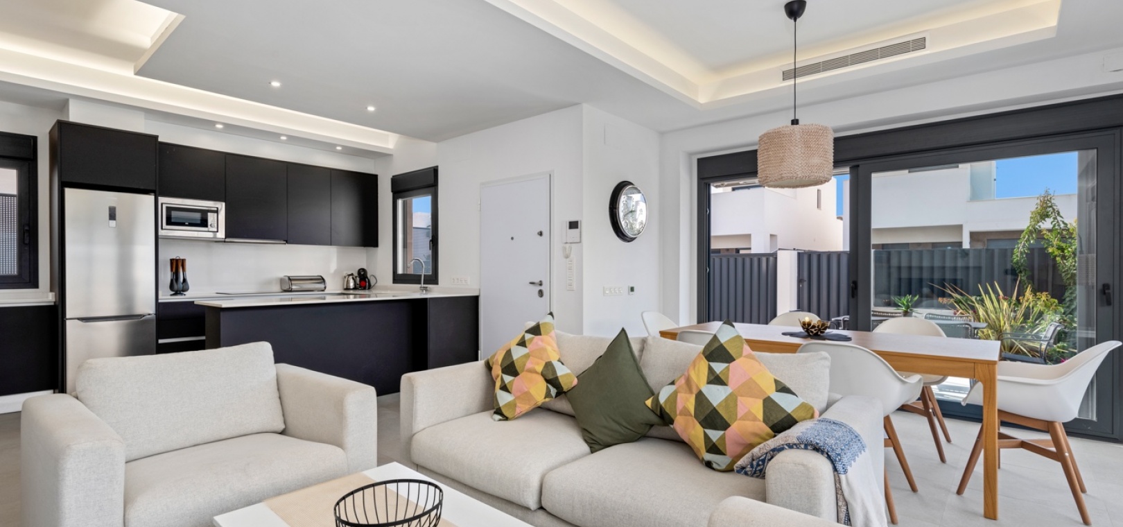 Modern semi-detached house located in a quiet area of San Fulgencio, set on a plot with a private swimming pool and outdoor space designed for relaxation. The home has been designed so that the garden becomes a natural extension of the living area – large windows provide plenty of natural light and create bright, spacious interiors that feel open to the surroundings.