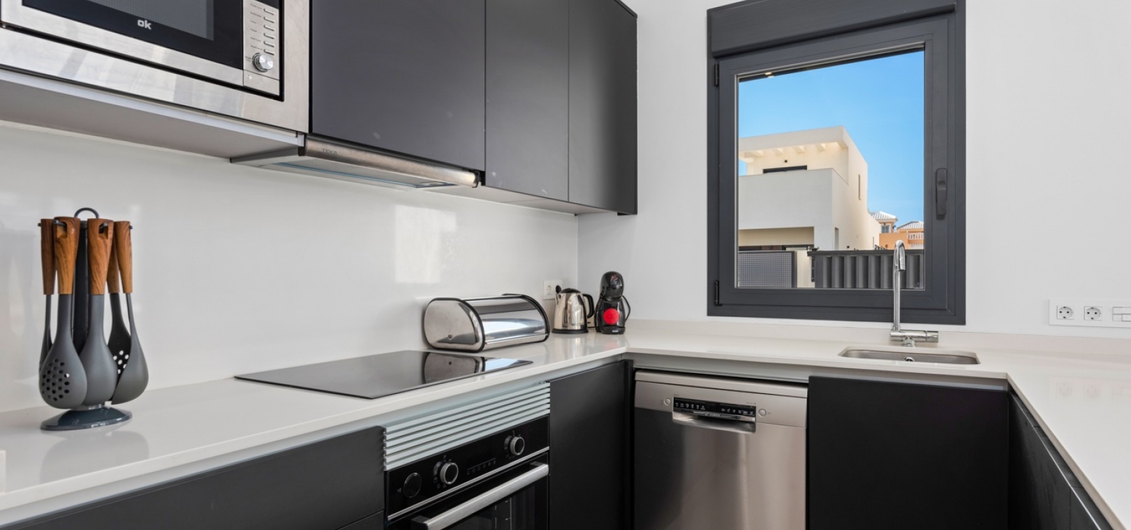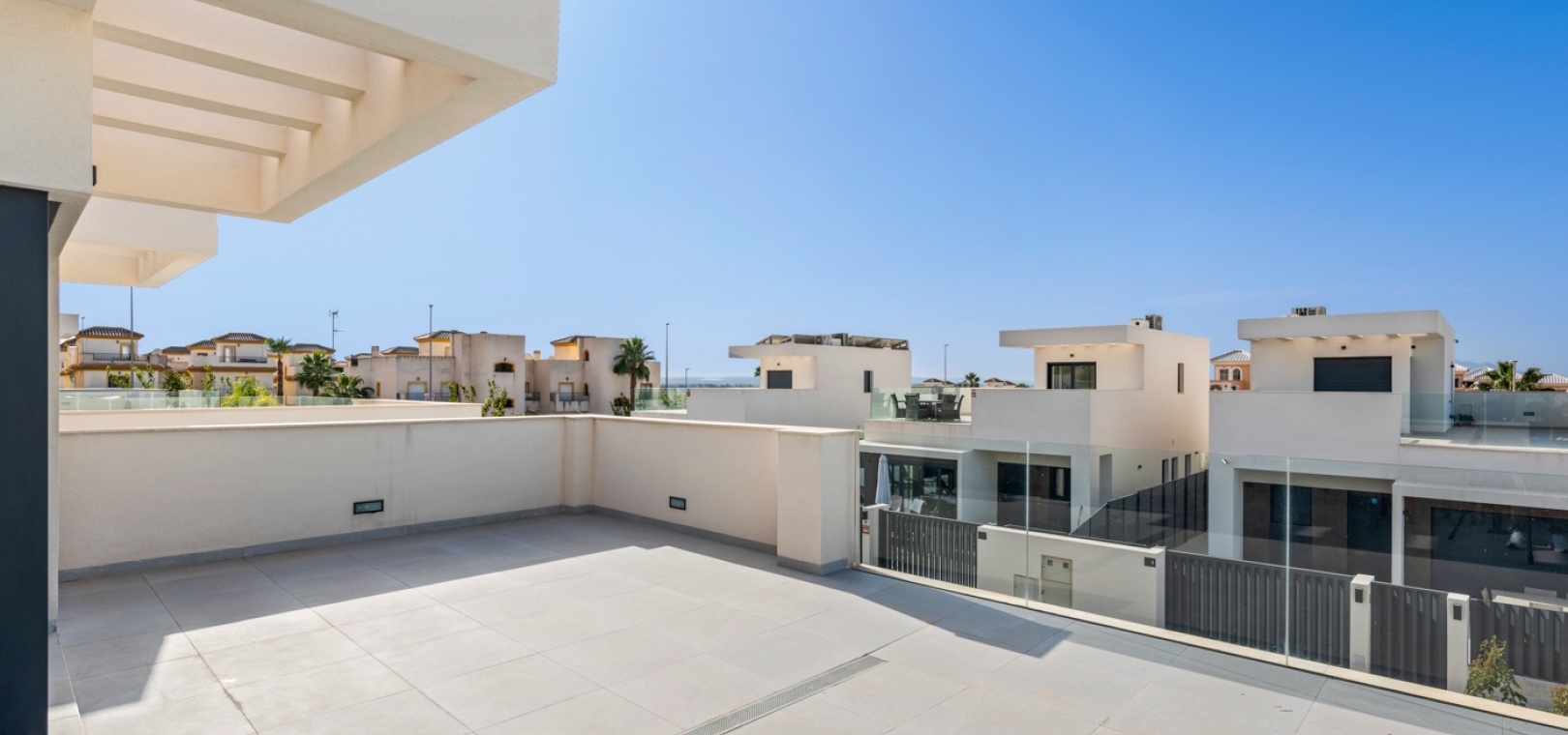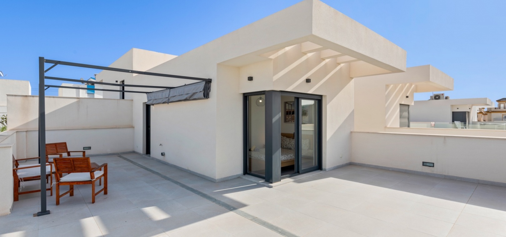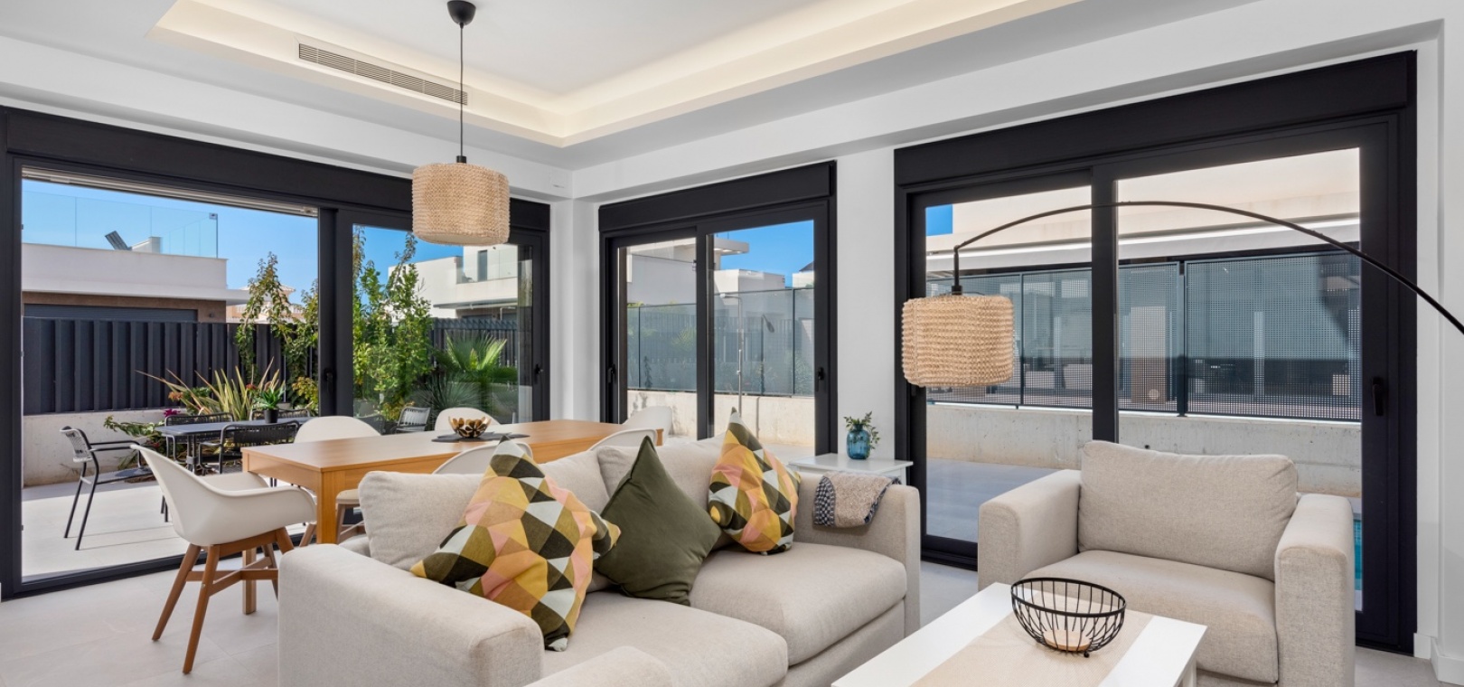Modern semi-detached house located in a quiet area of San Fulgencio, set on a plot with a private swimming pool and outdoor space designed for relaxation. The home has been designed so that the garden becomes a natural extension of the living area – large windows provide plenty of natural light and create bright, spacious interiors that feel open to the surroundings.