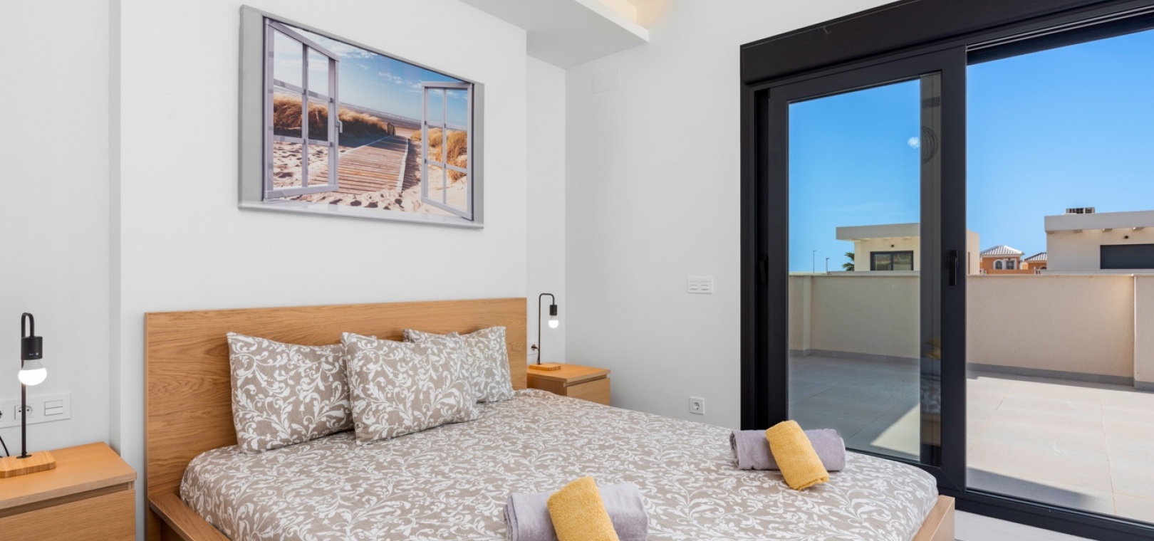 The location combines everyday comfort with close proximity to nature — the property is situated approximately 5 km from the beach and around 30 km from Alicante–Elche Airport. Nearby you will find natural dunes, wide sandy beaches, and a peaceful residential environment.