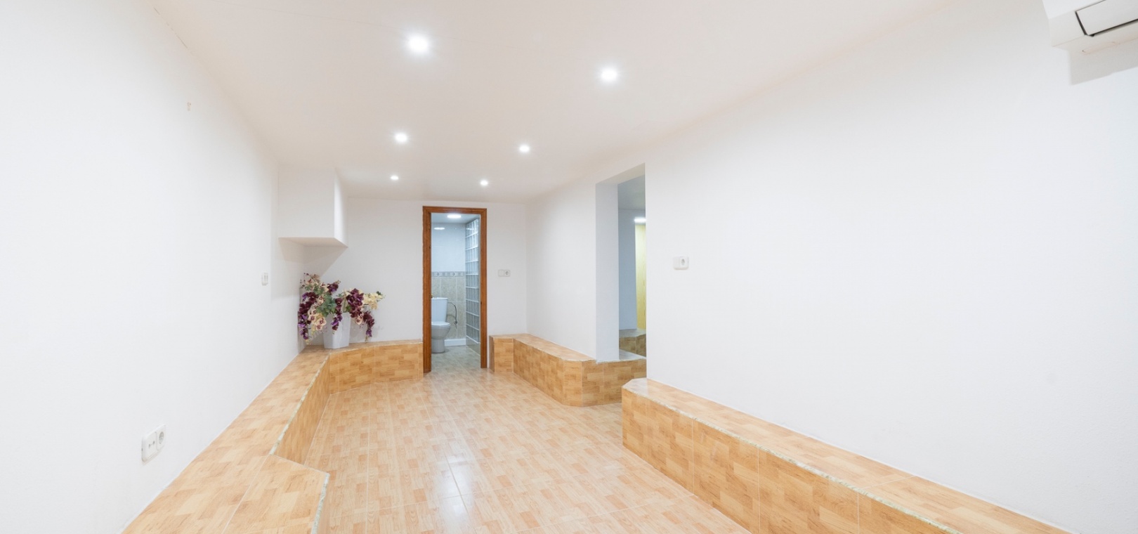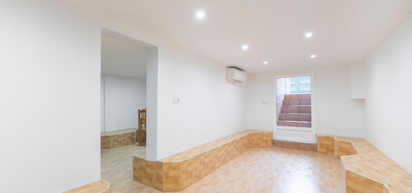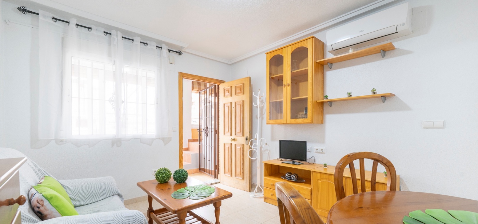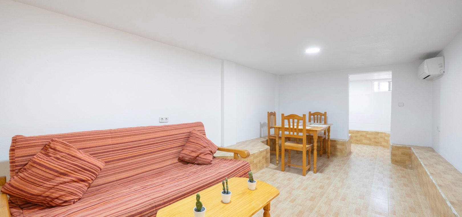 The main floor offers two bedrooms and one bathroom, arranged in a practical and functional layout. The property is sold furnished and benefits from air conditioning throughout.