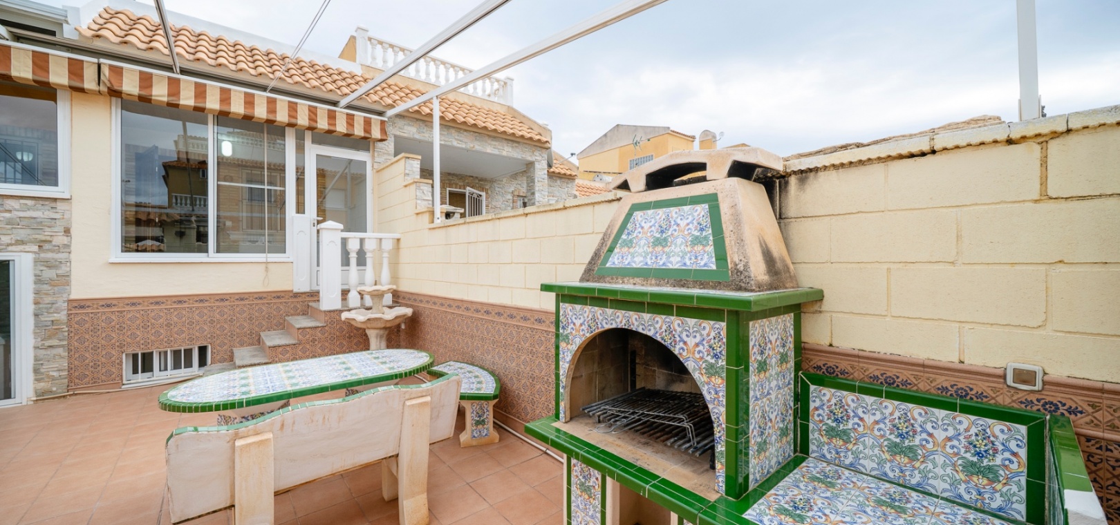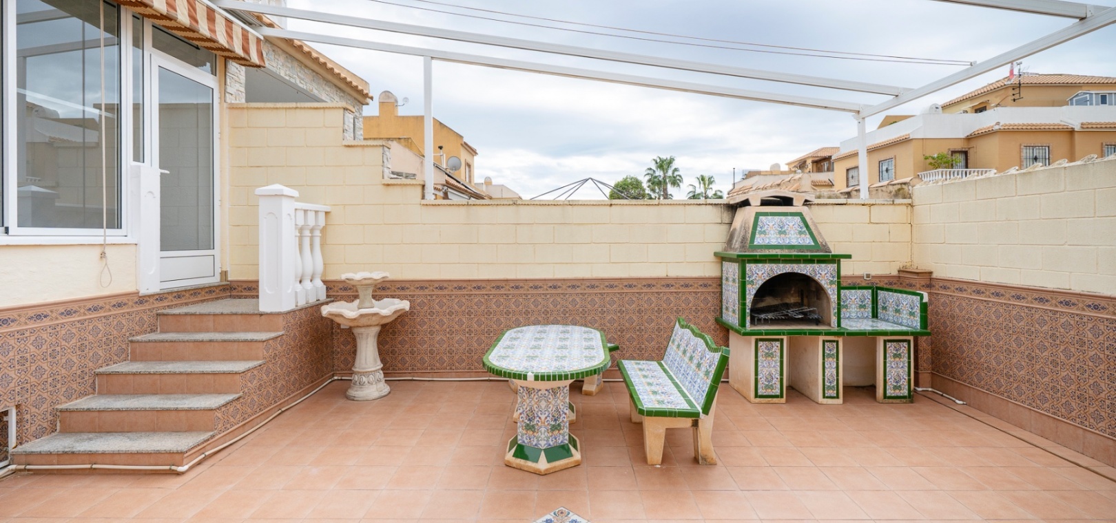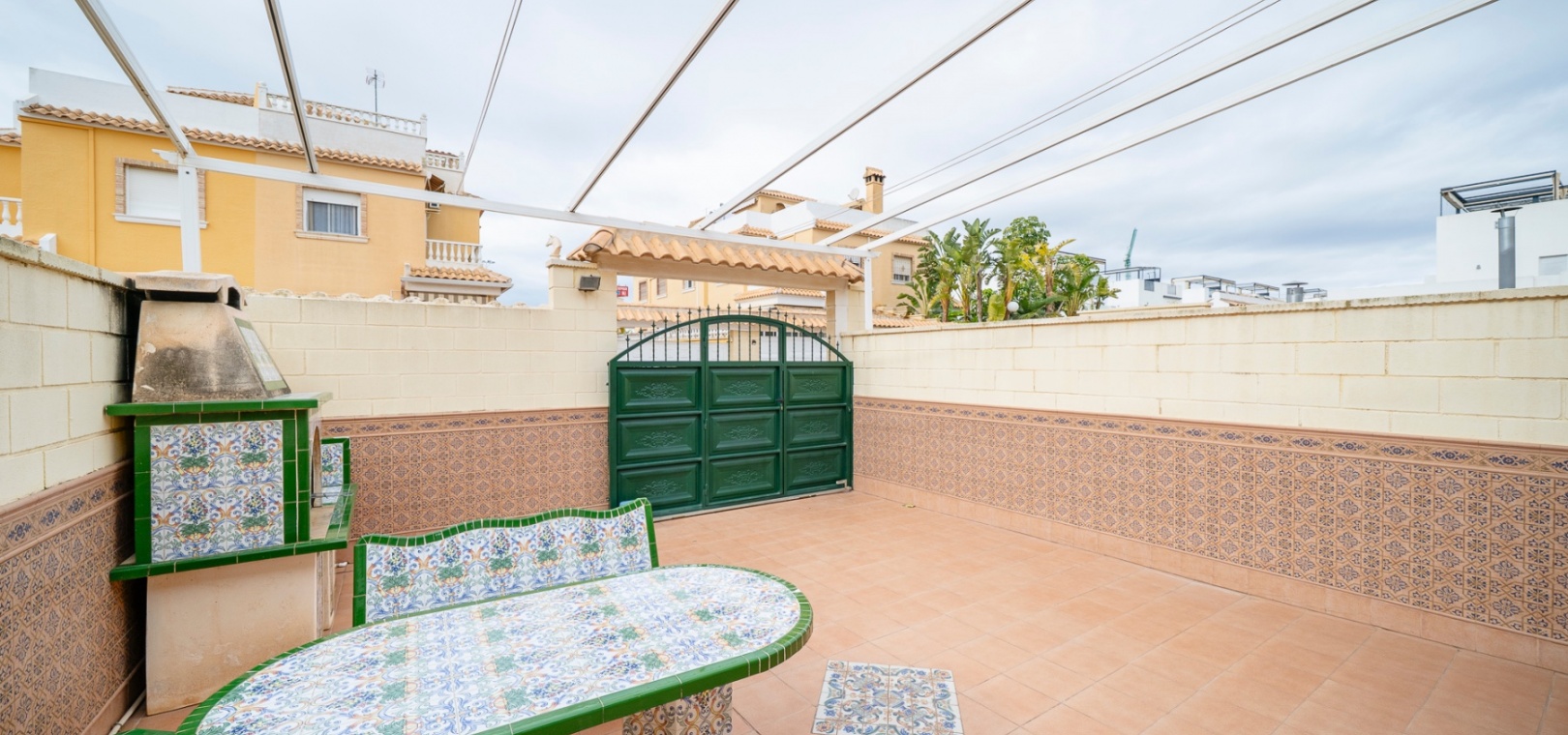 Outside, the home boasts a front patio, a private partly covered terrace, and a barbecue area—perfect for outdoor living. The private 40 m² solarium, accessed via an internal staircase from the kitchen, enjoys a southwest orientation, providing excellent sunshine for most of the day.