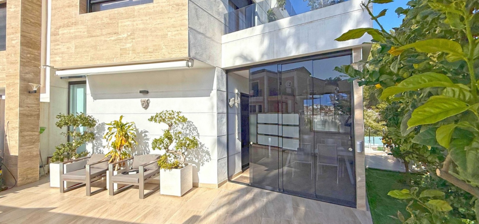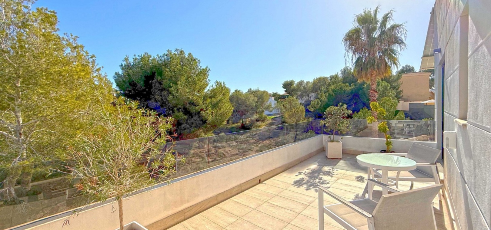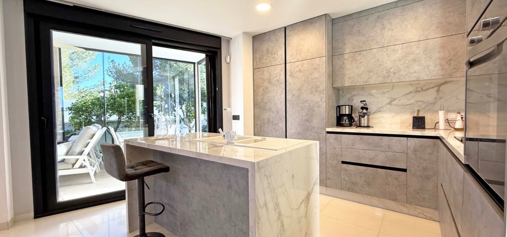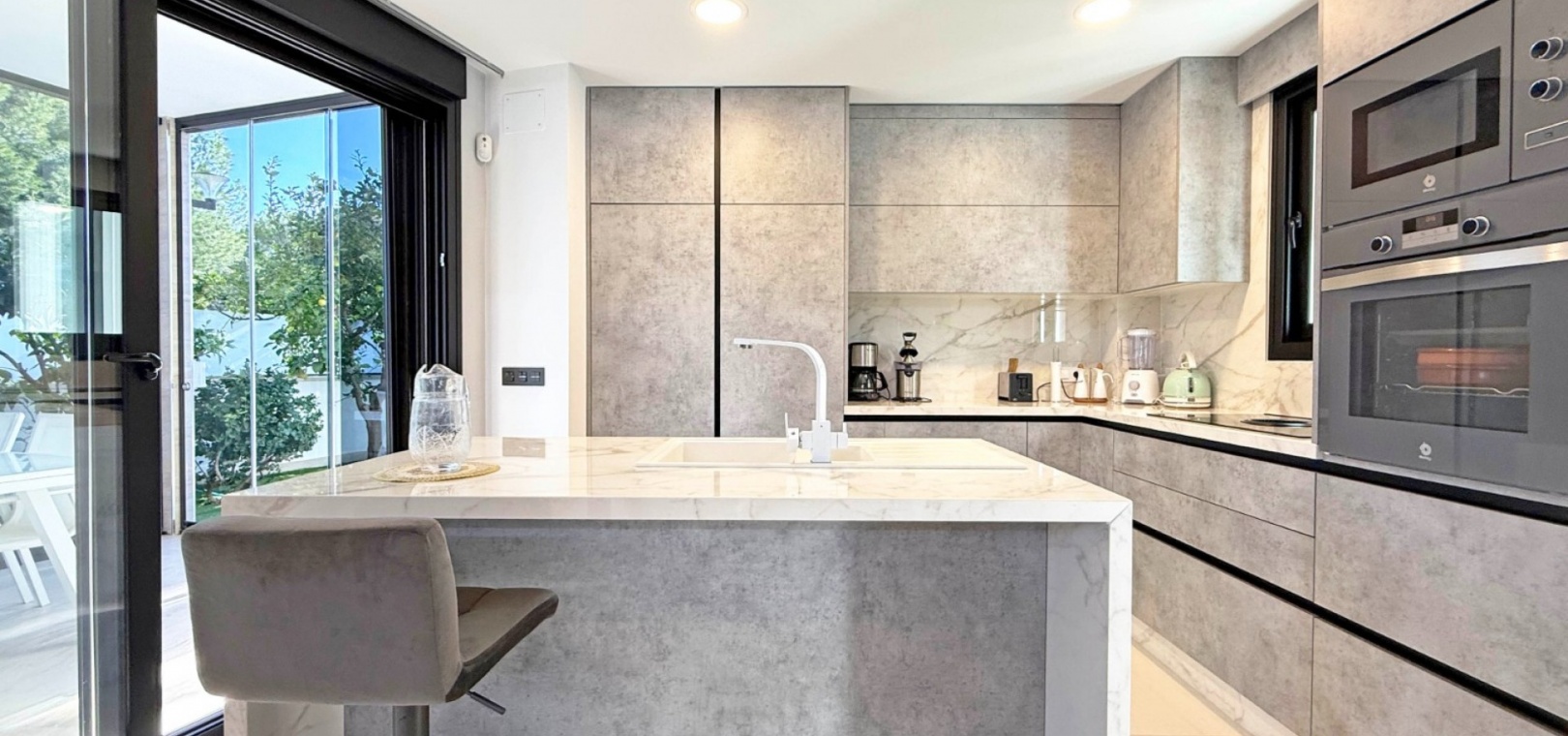 The villa boasts a private, heated pool, perfect for enjoying the sunny Mediterranean climate in ultimate privacy. For those seeking wellness and relaxation, the property includes a sauna and underfloor heating throughout, ensuring comfort in every season.