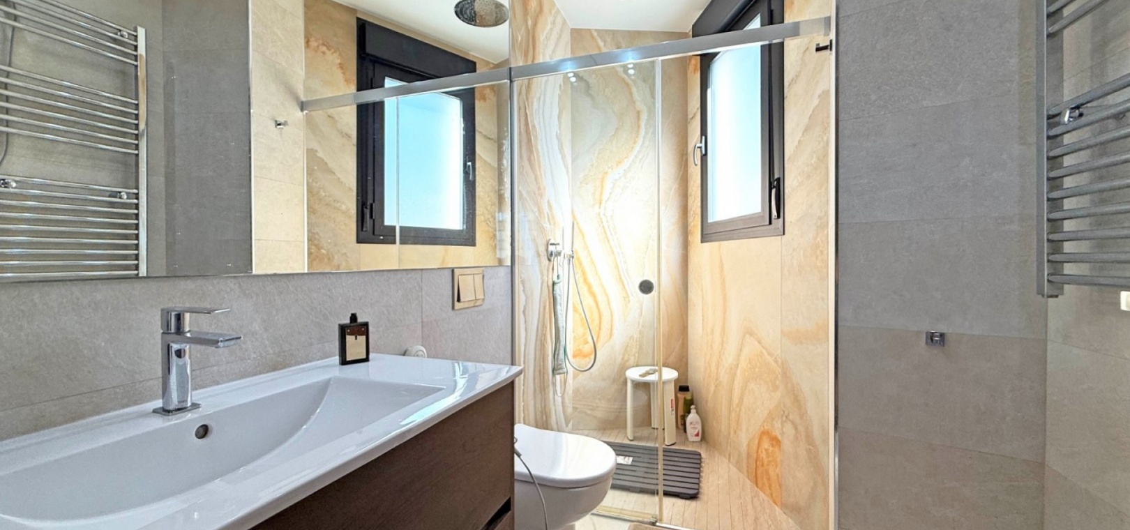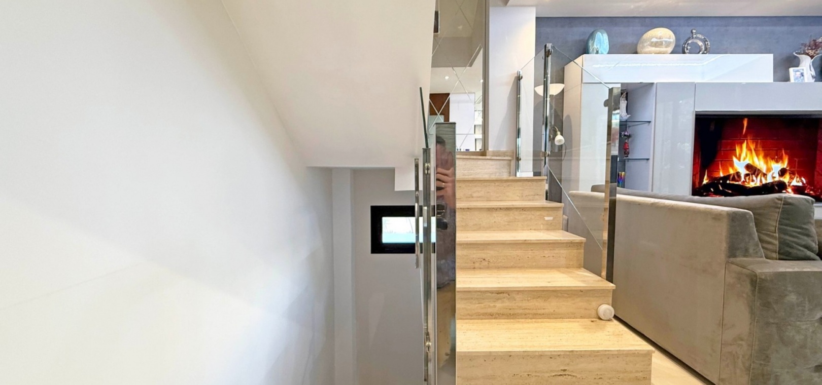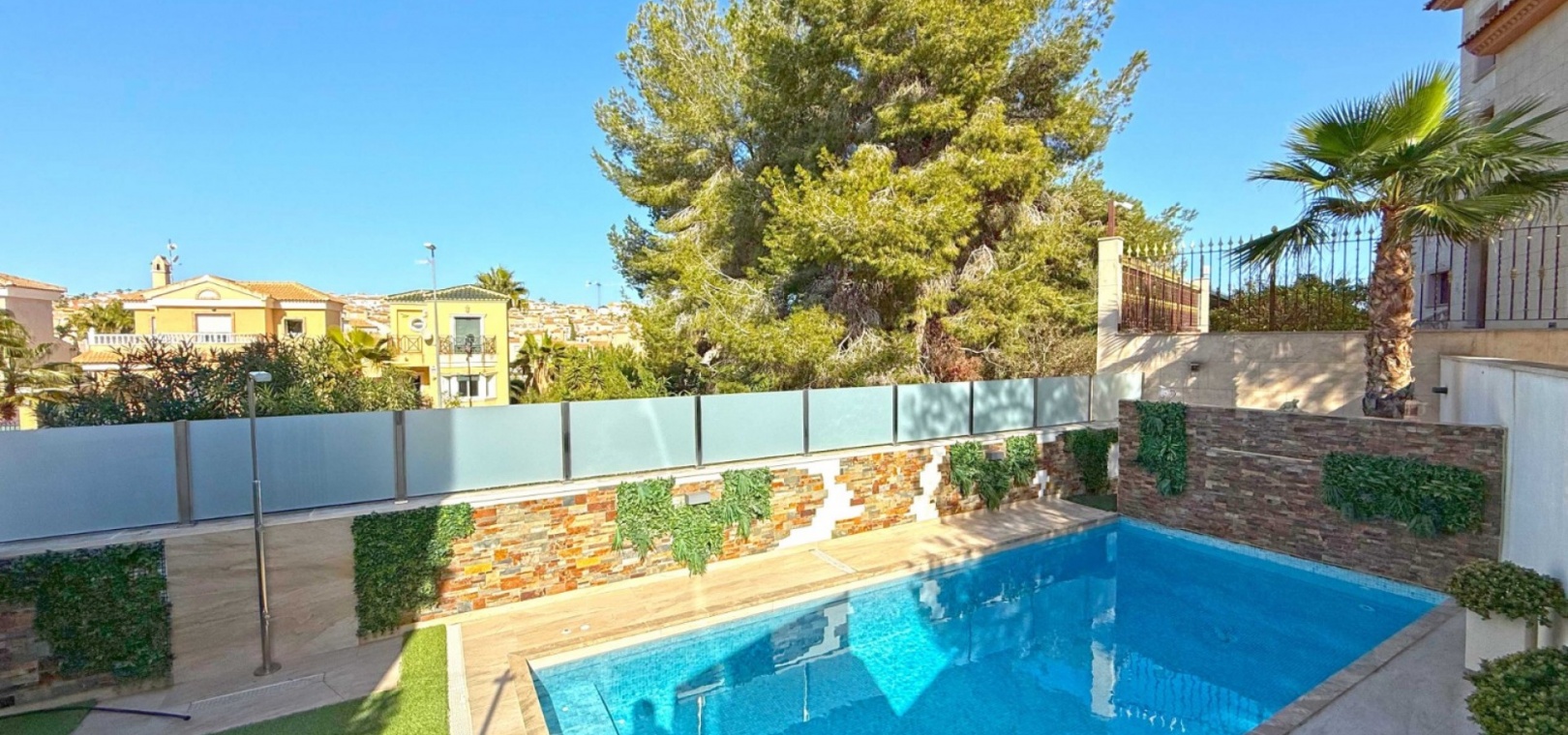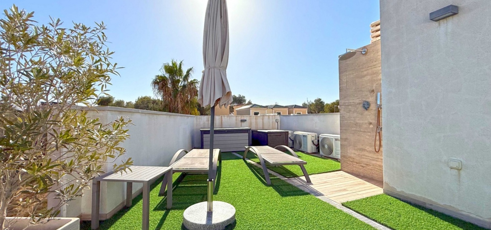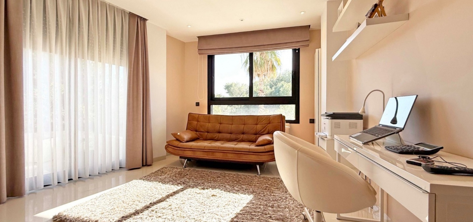 The villa boasts a private, heated pool, perfect for enjoying the sunny Mediterranean climate in ultimate privacy. For those seeking wellness and relaxation, the property includes a sauna and underfloor heating throughout, ensuring comfort in every season.