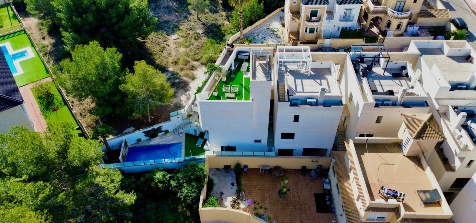 This stunning corner villa, nestled at the end of a peaceful cul-de-sac in the sought-after area of Villamartin, offers the perfect blend of luxury and modern living. With 3-4 spacious bedrooms and 3 bathrooms (2 of which are en suite), this home provides ample space for family living and guests. The open-plan living area is designed for modern comfort, featuring a sleek, contemporary kitchen and a bright, airy living room that flows seamlessly into the private conservatory, ideal for year-round relaxation.