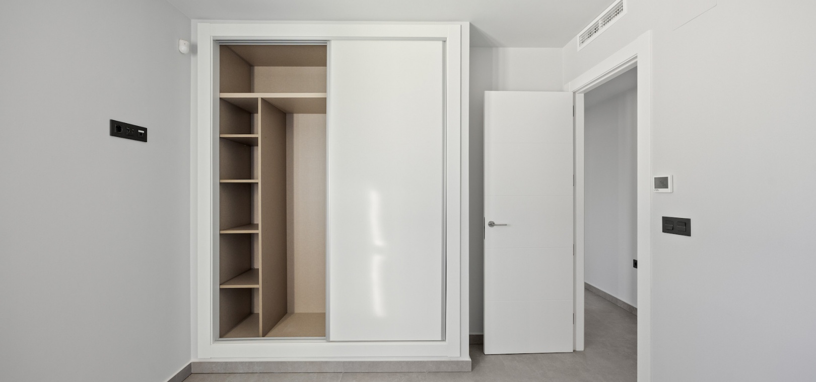 Additional features include Mitsubishi Electric air conditioning, alarm system, electric shutters, high-speed fiber internet, private parking, dual front and rear access, and no community fees. The villa is within walking distance of restaurants, shops, spa facilities, golf academy, tennis and padel club, and is just 30 minutes from Alicante Airport.