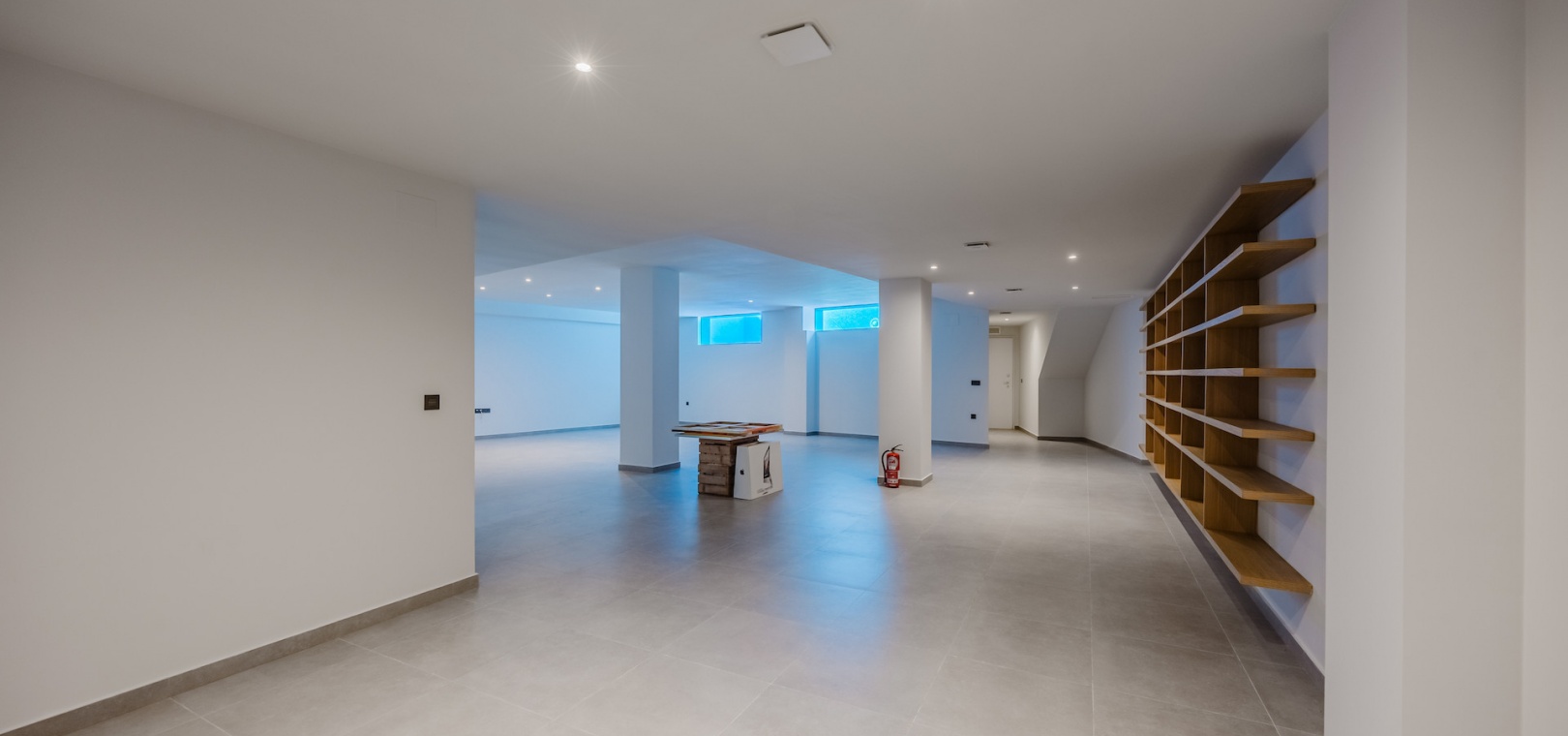 The versatile underbuild is flooded with natural light and includes a guest WC and full laundry area. It is ideal for use as a cinema room, gym, bar lounge, office, guest accommodation, or wellness area, remaining cool and comfortable throughout the year.