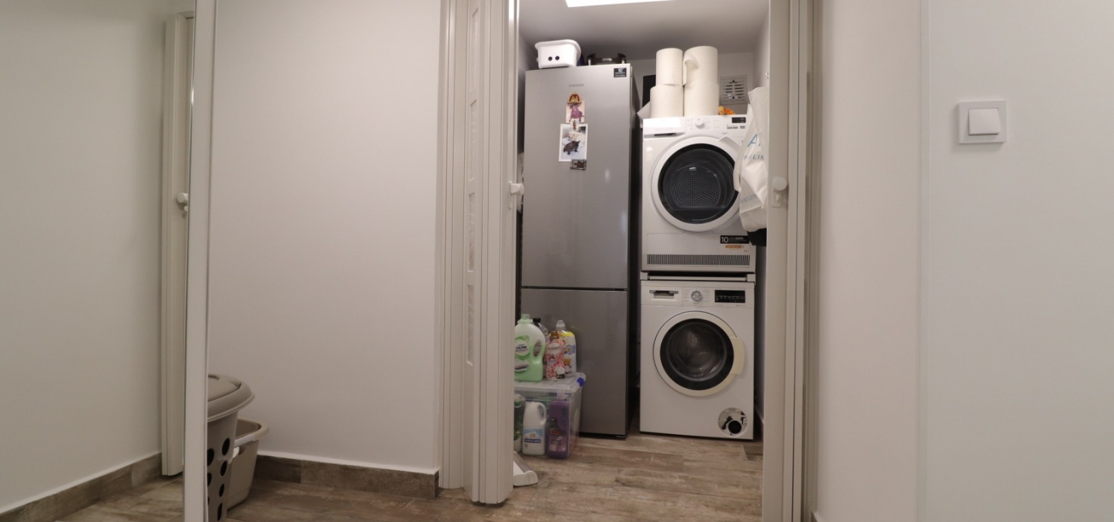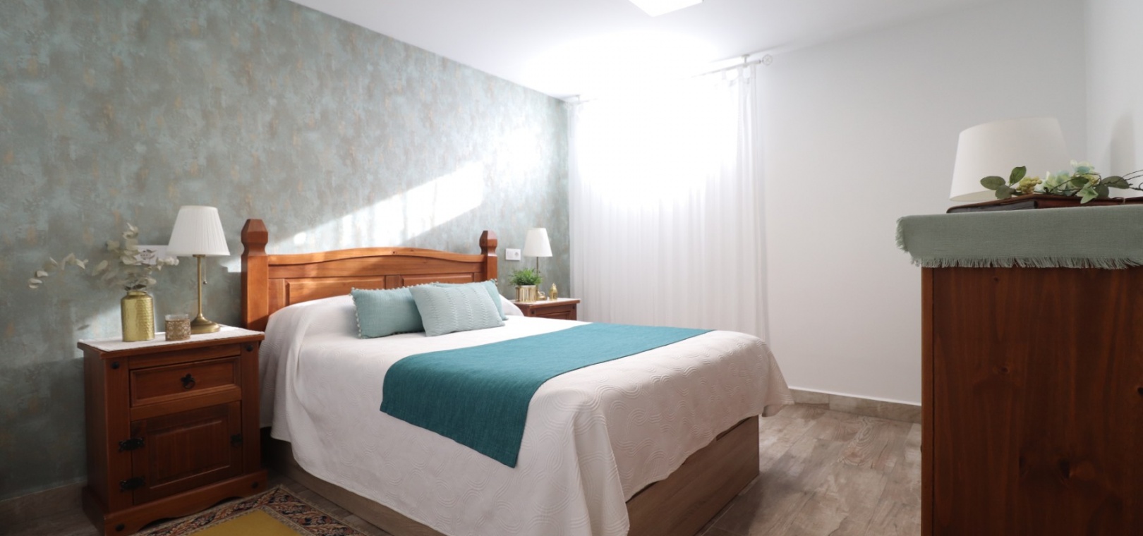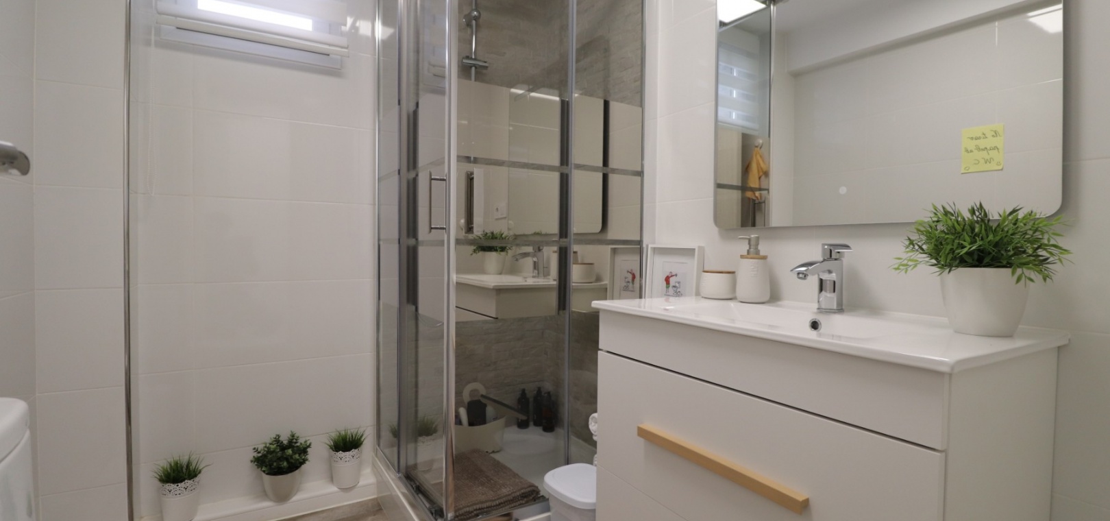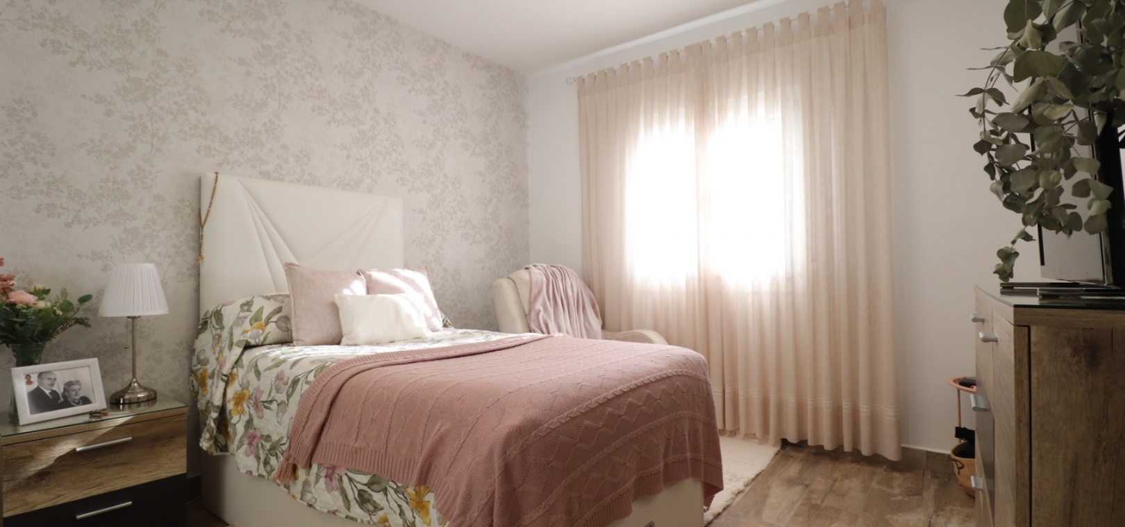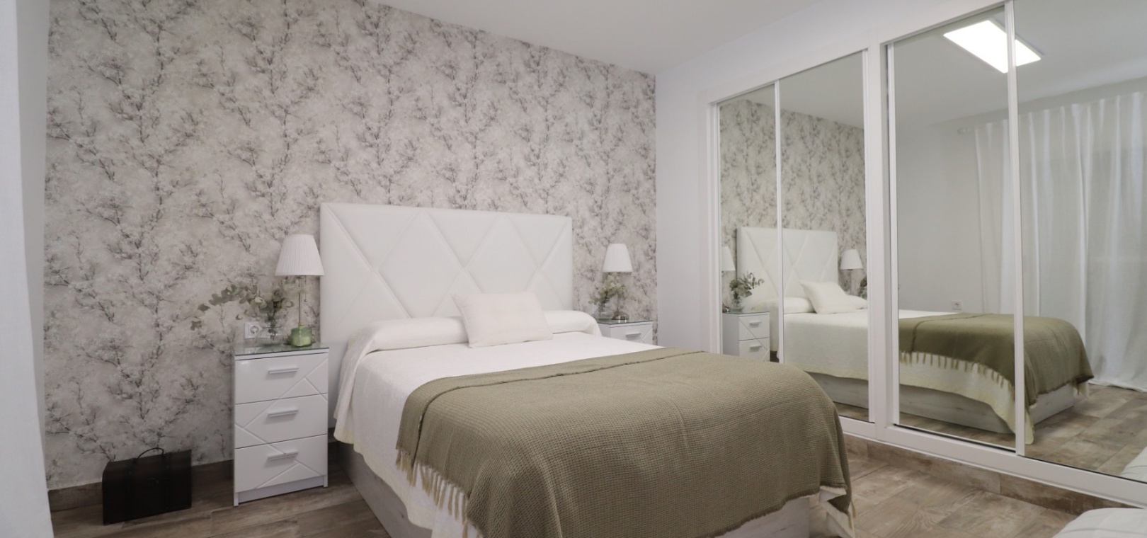 Upstairs, the master bedroom enjoys direct access to a private terrace, also accessible from the landing — an ideal spot for morning coffee or evening relaxation. Another double bedroom features a walk-in dressing area in addition to fitted wardrobes, while the remaining bedrooms also include built-in storage. A further modern shower room with walk-in shower serves this level.