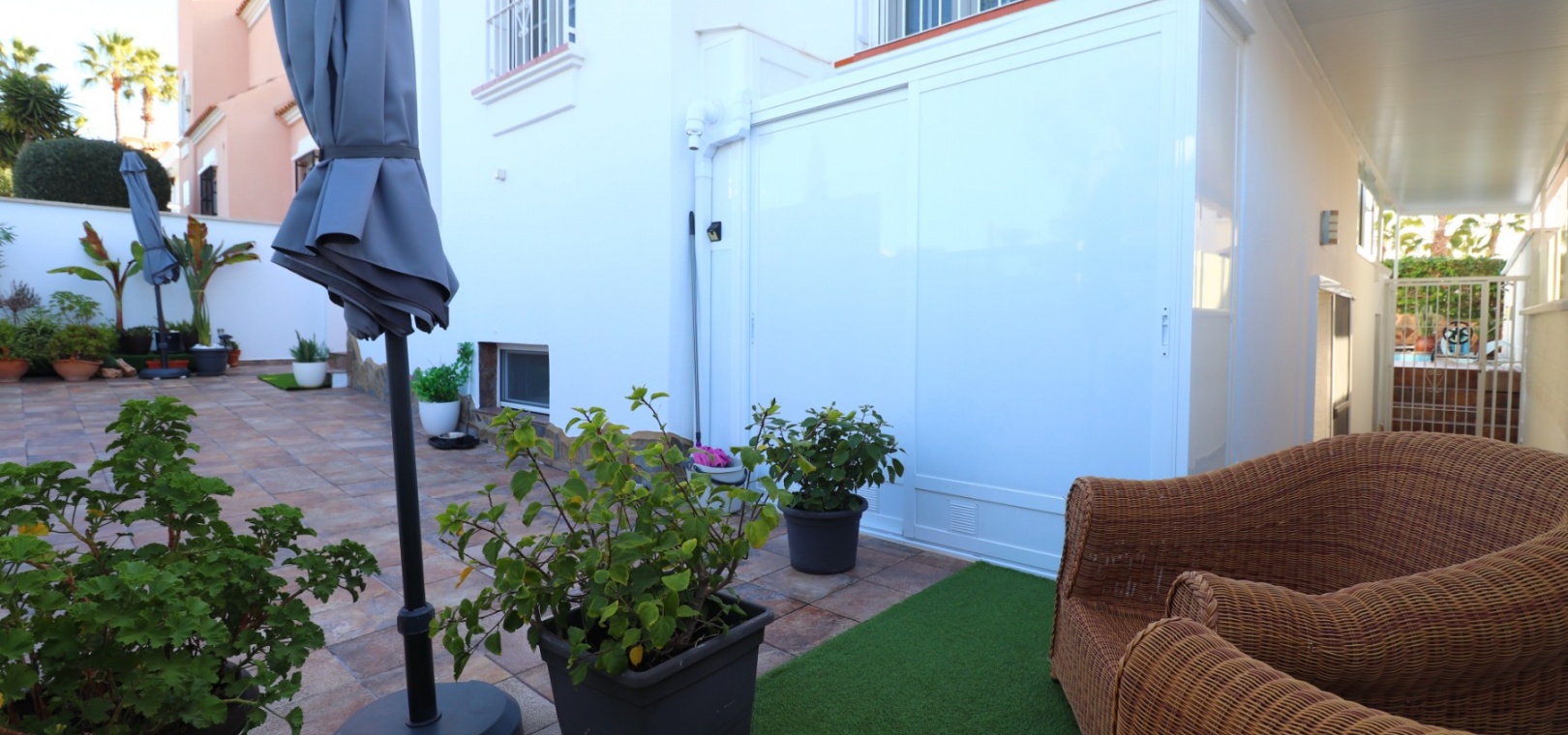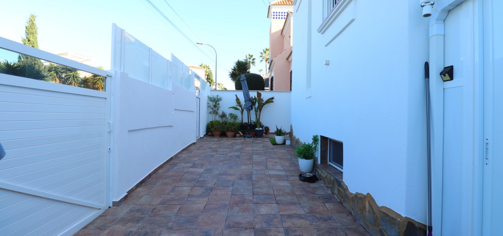 A selection of bars and restaurants can be reached within a pleasant 10–15 minute walk, while a major supermarket and the popular La Fuente Commercial Centre are just a short drive away. Golf enthusiasts are perfectly situated, with Real Club de Golf Campoamor, Las Ramblas Golf, and Villamartin Golf Club all within five minutes by car. The renowned La Zenia Boulevard shopping centre is only ten minutes away, while the beautiful beaches of Orihuela Costa can be reached in approximately 10–15 minutes.