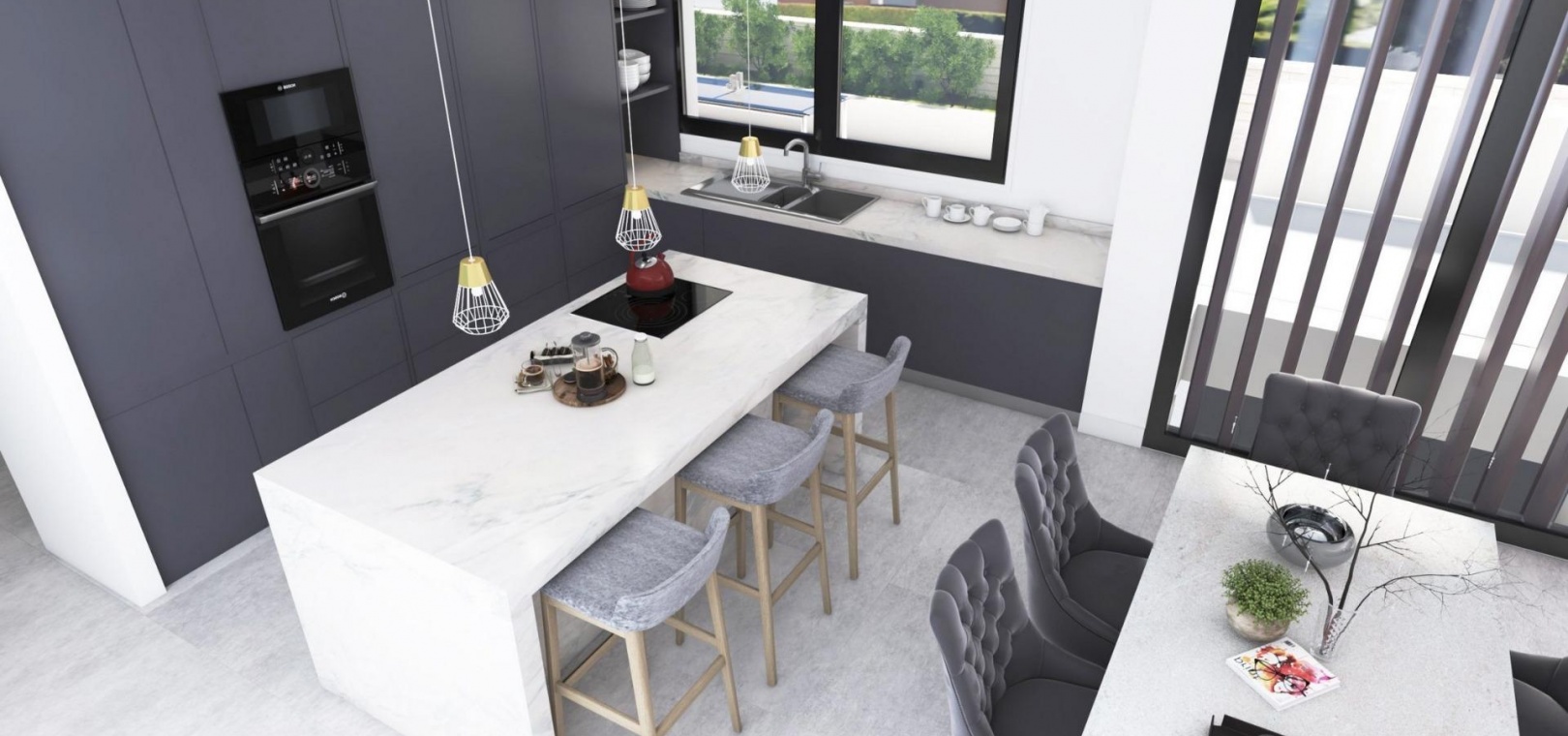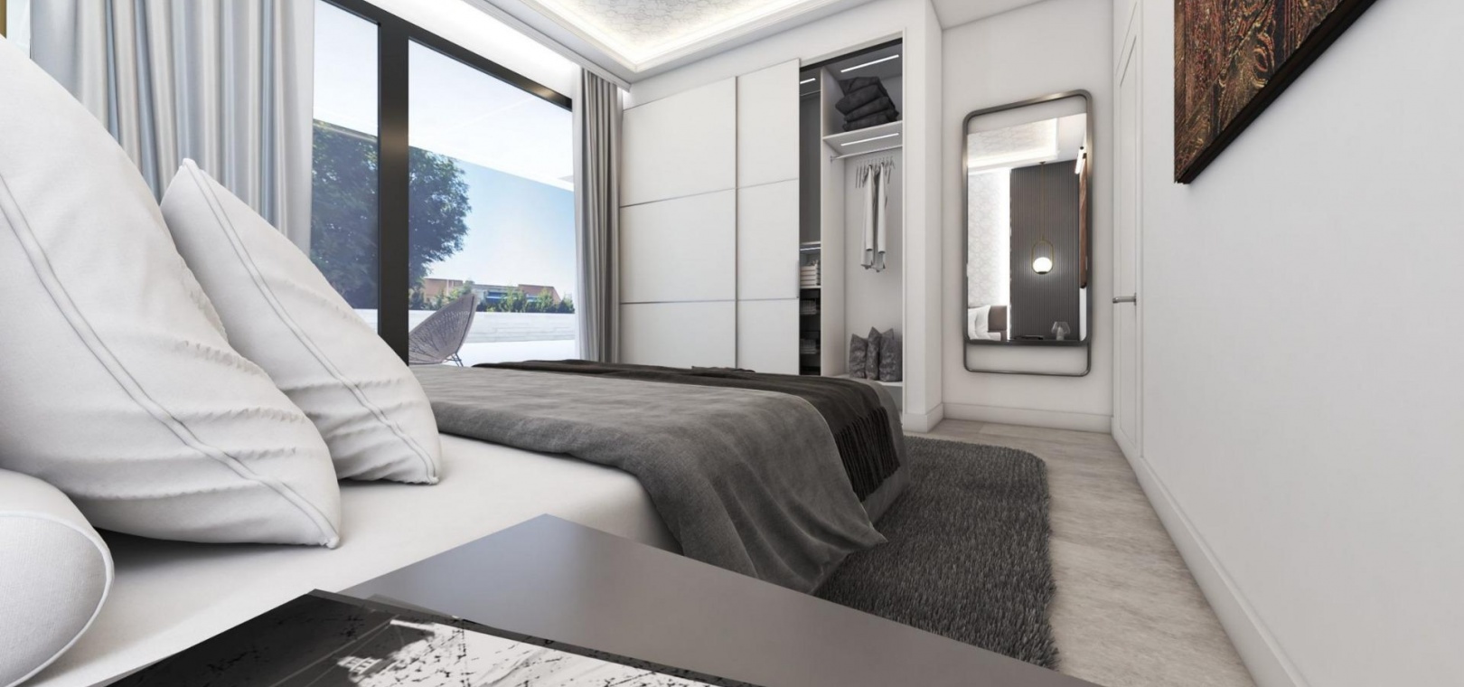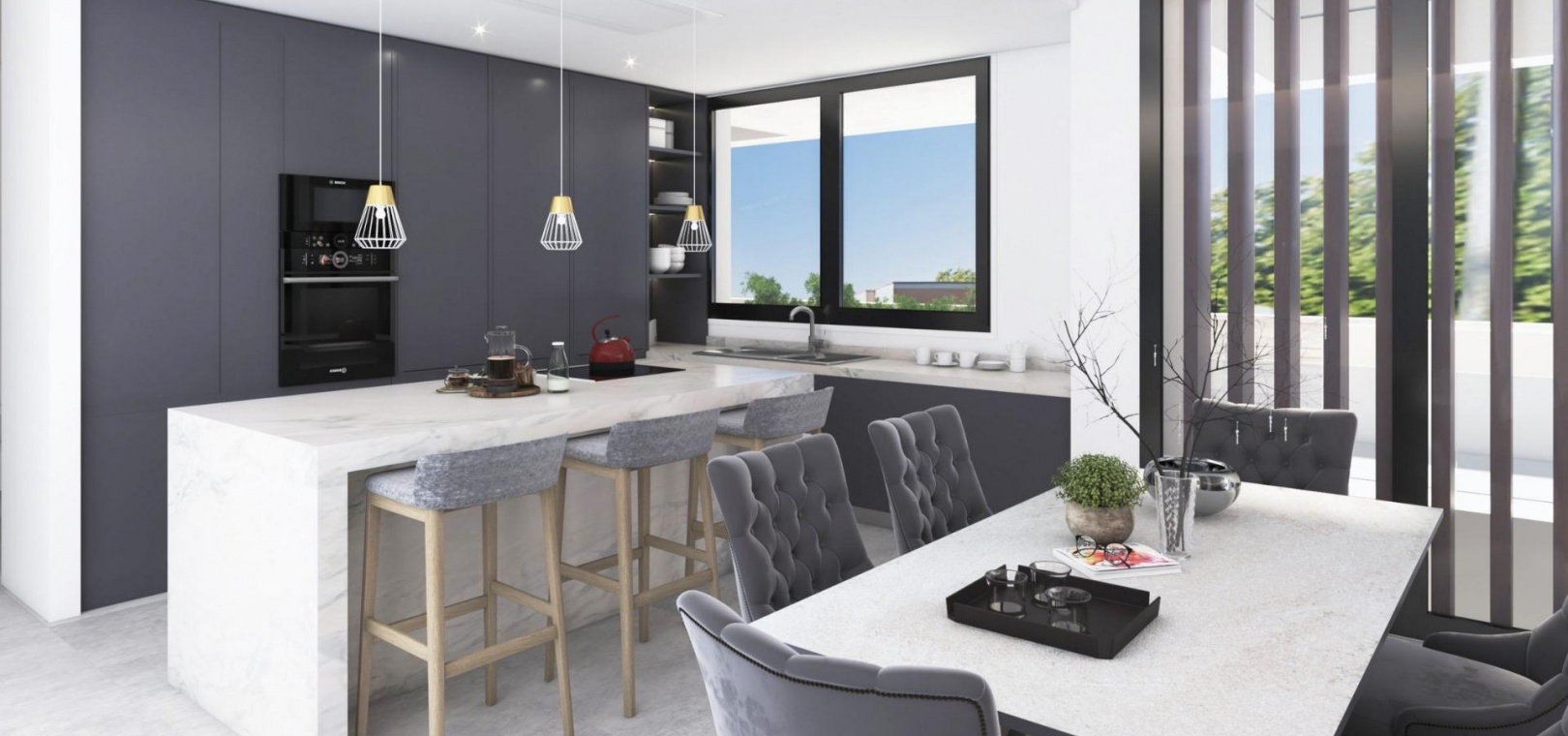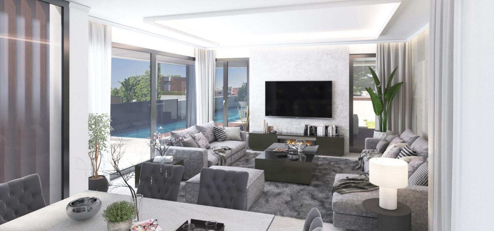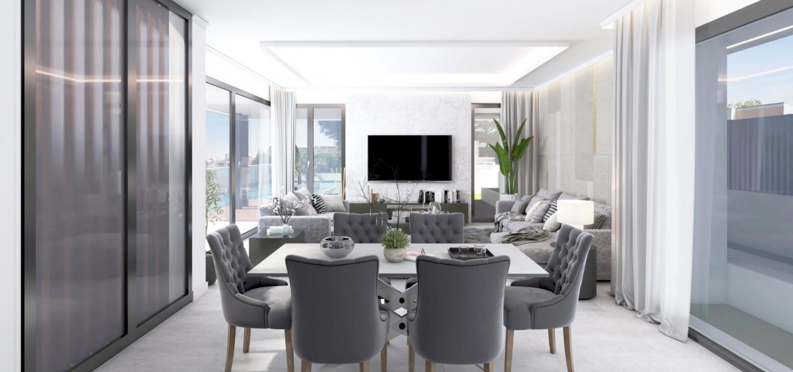 The villa includes advanced home automation, central air conditioning, underfloor heating and premium quality materials throughout, ensuring maximum comfort and energy efficiency.