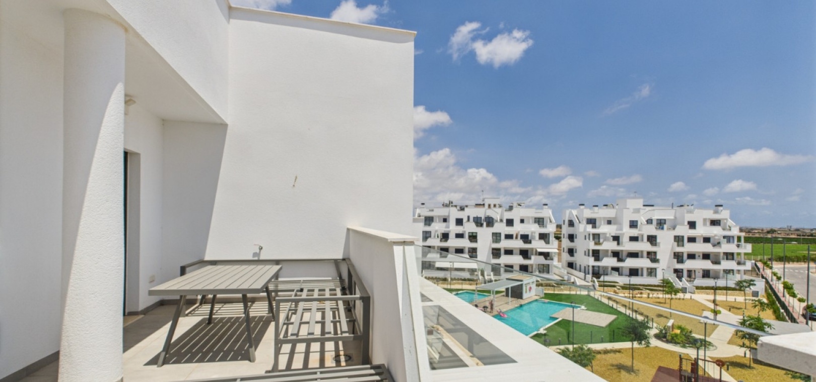 The property is being sold fully furnished, and comprising of white goods, hot & cold air-conditioning, master on suite, terrace off the kitchen & lounge and large private solarium.