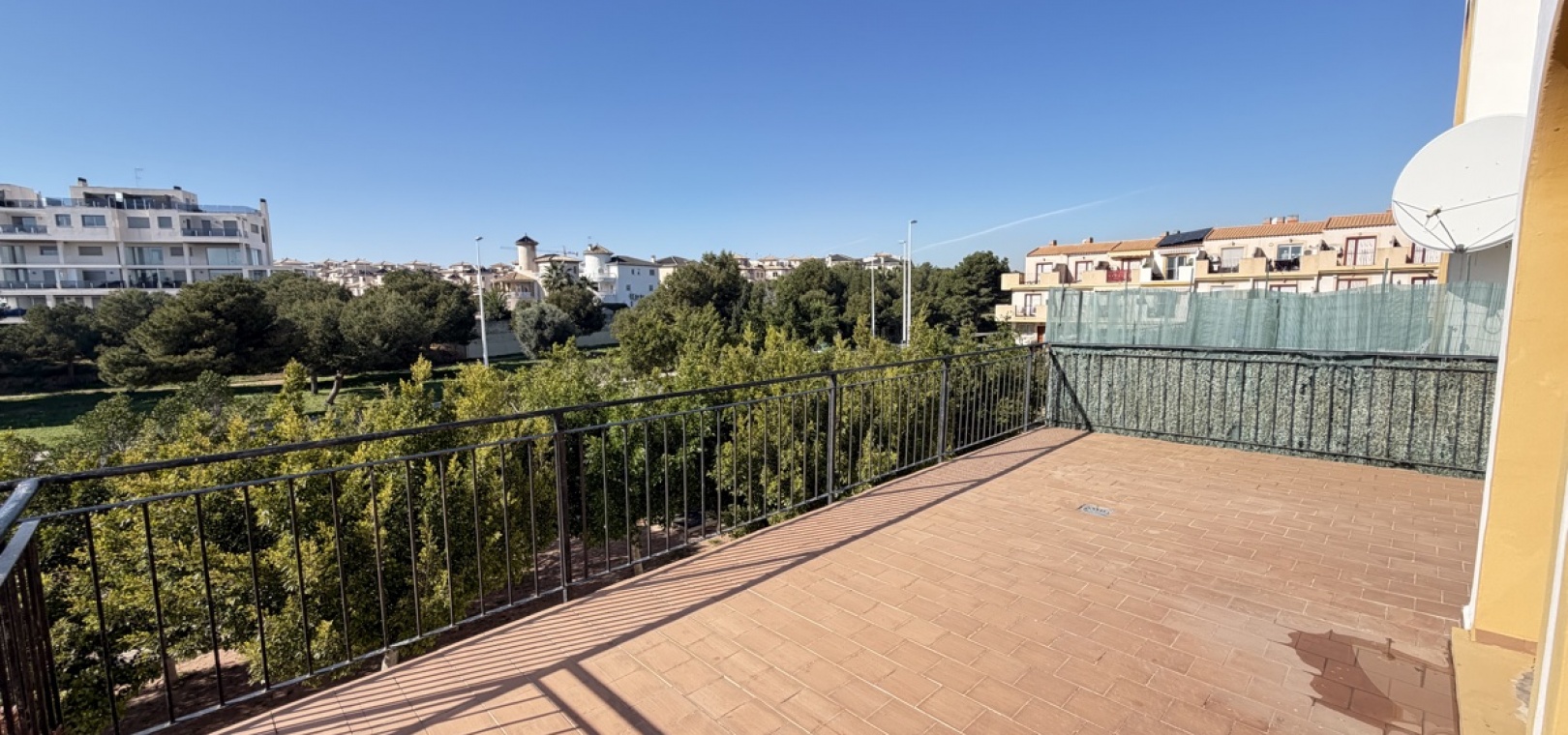 One of the property’s standout features is its generous outdoor space. A large private terrace provides the perfect setting for alfresco dining, relaxing in the sun, or enjoying peaceful surroundings year-round. Additionally, the substantial outdoor utility area offers excellent storage or potential for further functional use.