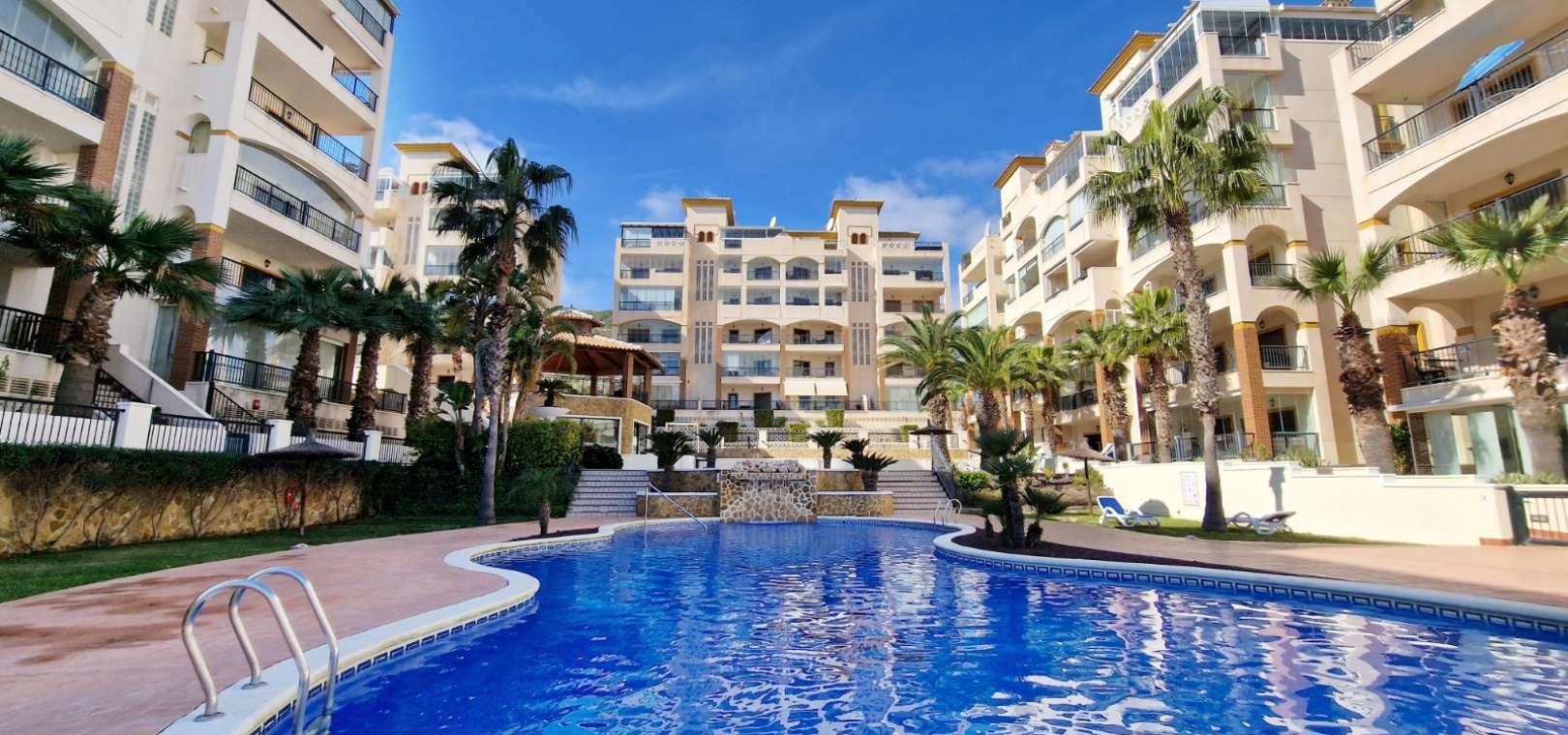 This impressive 2-bedroom, 2-bathroom penthouse apartment, built in 2010, offers an exceptional combination of privacy, outdoor space and resort-style amenities mdash; just 700 metres from the beach. Located on the 5th floor with lift access, this east-facing property enjoys beautiful morning sun and partial sea views, making it ideal for those who value light, space and Mediterranean living.