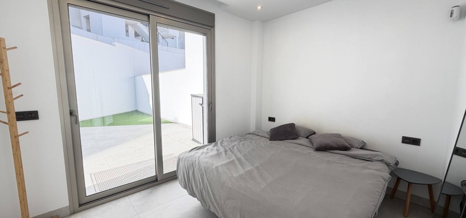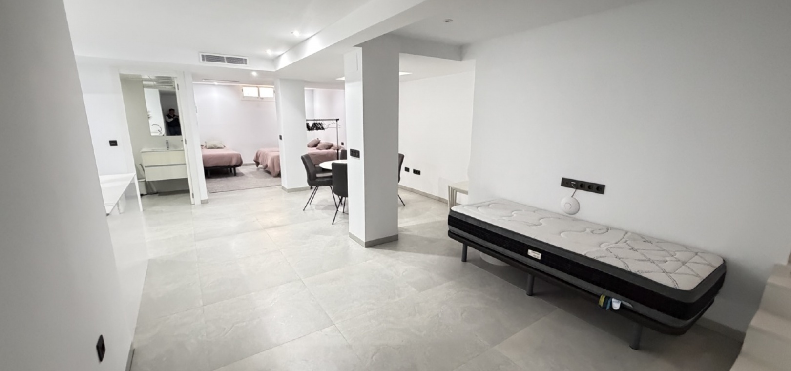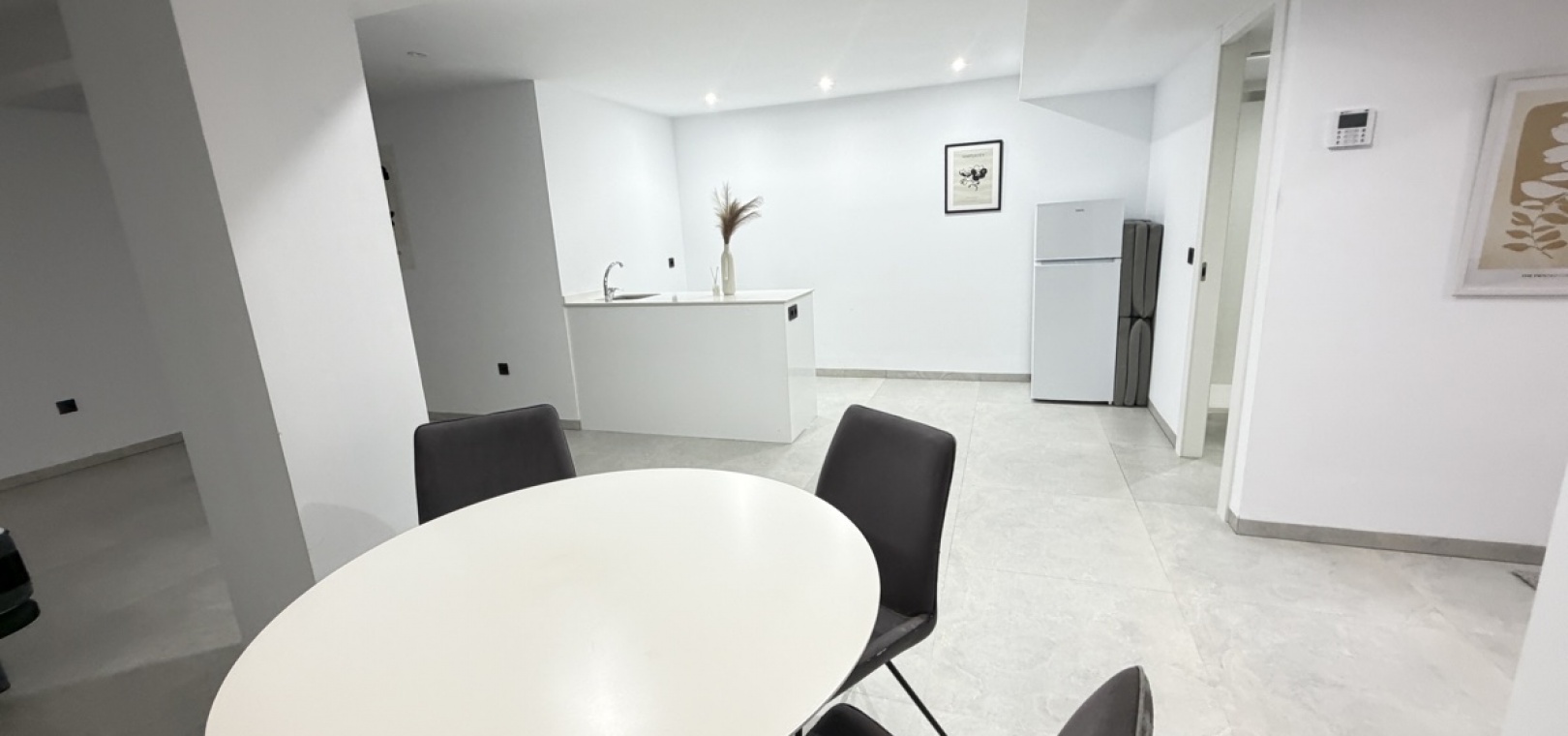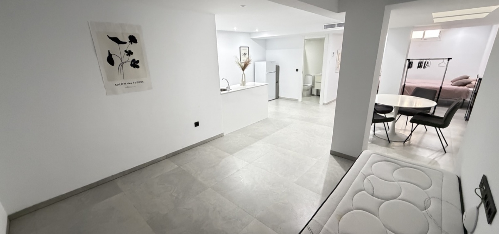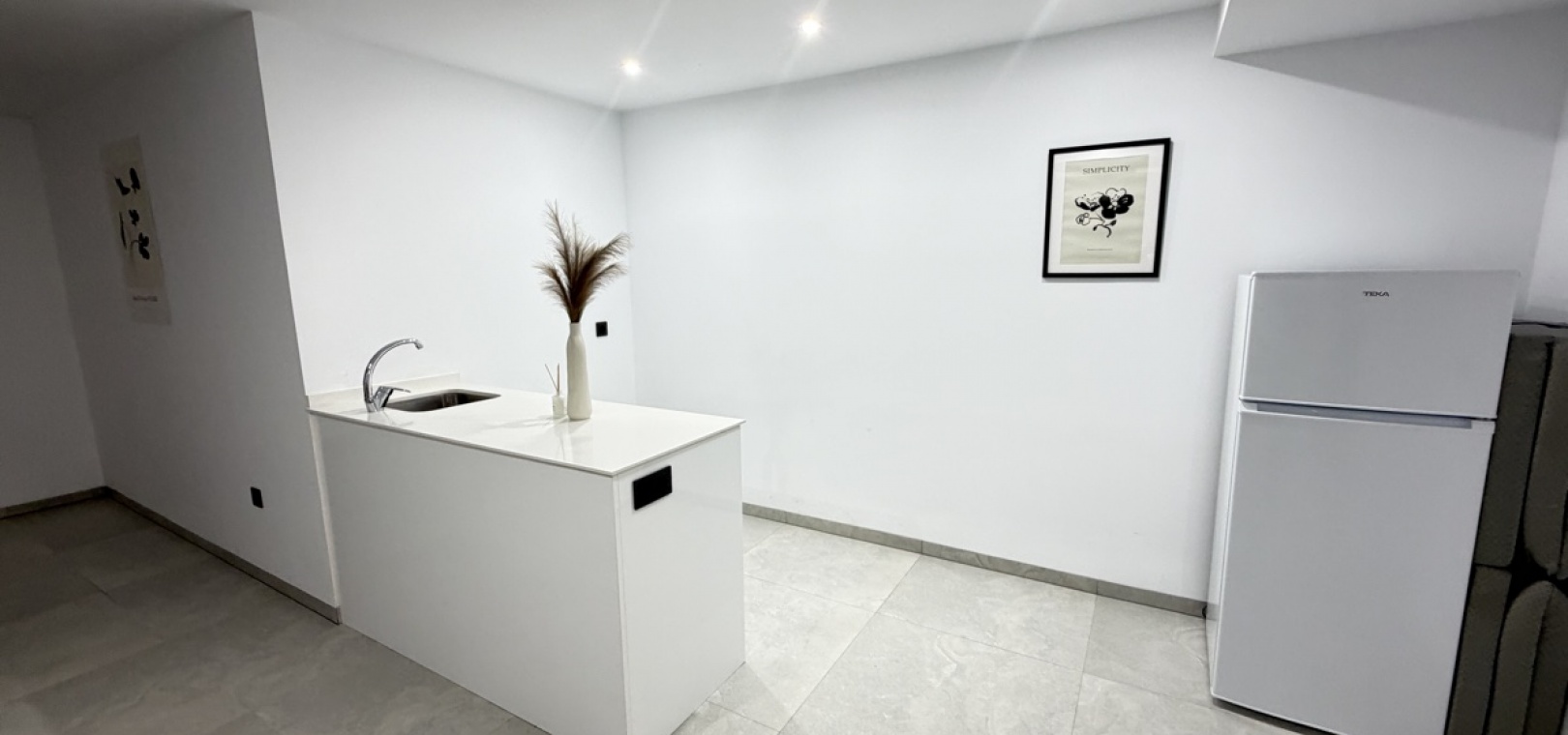 On the ground floor, you are welcomed into an impressive open-plan living area featuring a modern kitchen and a bright, airy lounge enhanced by striking double-height ceilings. This level also includes a well-proportioned bedroom and a stylish bathroom.