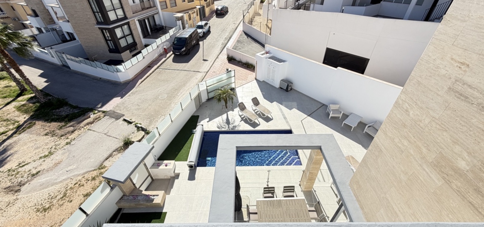 The upper floor comprises three spacious bedrooms, all with ample built-in wardrobes, and offers access to a superb roof terrace — perfect for relaxing, entertaining, or enjoying panoramic views. The expansive basement provides an additional bathroom and versatile space that can be adapted as a guest suite, home gym, cinema room, office, or entertainment area.This exceptional villa presents a rare opportunity to enjoy Mediterranean living in one of Villamartín’s most desirable locations.