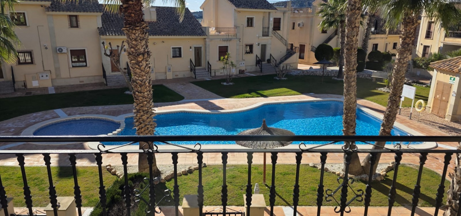 For sale is a charming top-floor apartment located in the sought-after area of Algorfa, within the popular La Finca Golf community. This resale property offers a well-laid-out internal space and comes fully furnished for immediate comfort. The apartment features two spacious bedrooms, the master bedroom with an en-suite shower room, and a family bathroom, making it ideal for a full time residence or lock up and leave holiday home