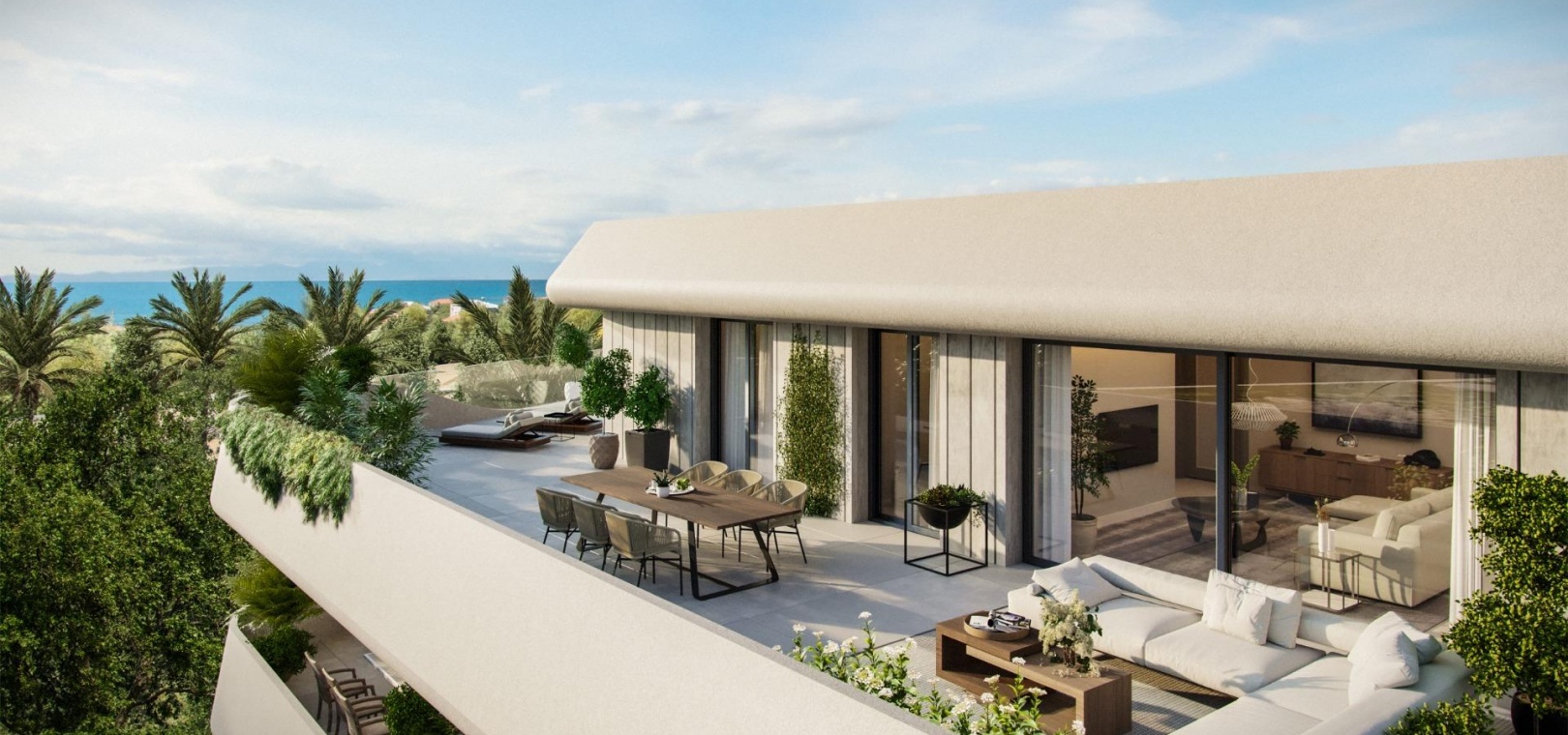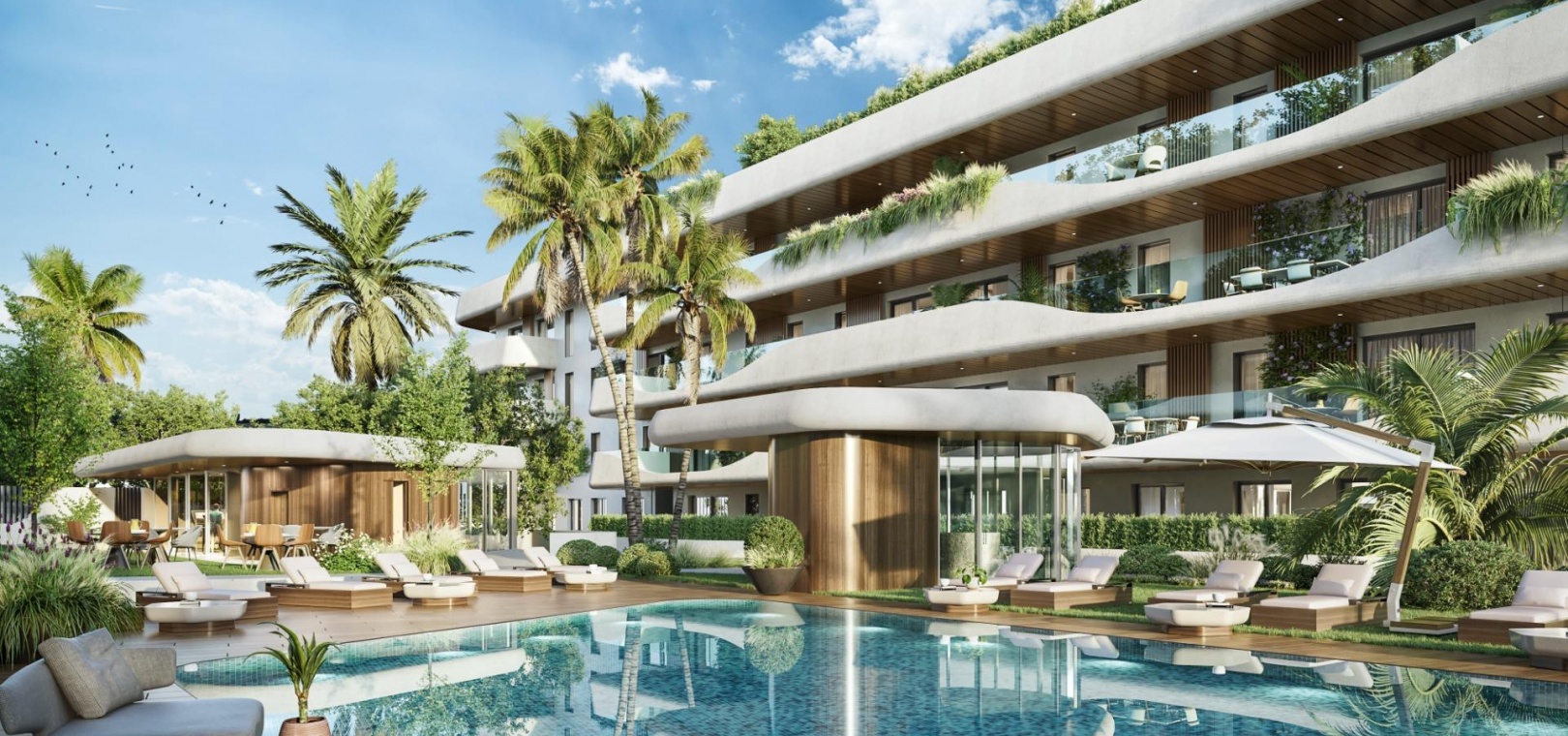 Exclusive complex of luxury flats. Flats and penthouses from 2 to 4 bedrooms, with spacious interiors of up to 195 m2 and fabulous terraces of up to 189 m2. Air conditioning by aerothermal heating, fitted kitchens, built-in wardrobes, generous dressing areas, spacious bedrooms with floor-to-ceiling windows leading to the terraces, so that your new home will be flooded with Mediterranean light. Homes that combine luxury and functionality, exemplifying excellence and a healthy, relaxed lifestyle.