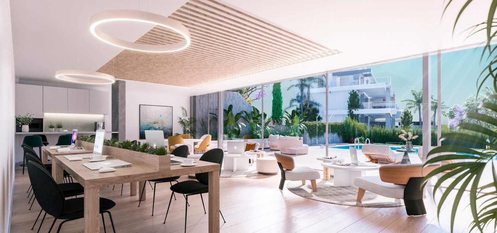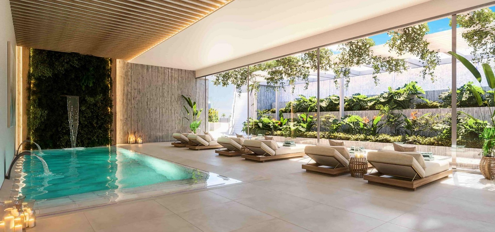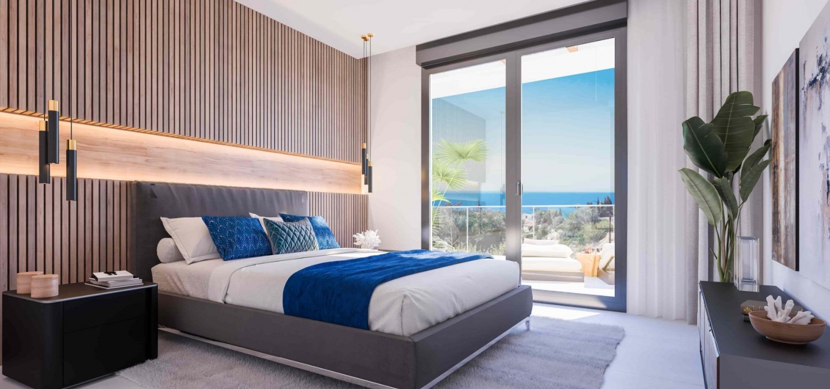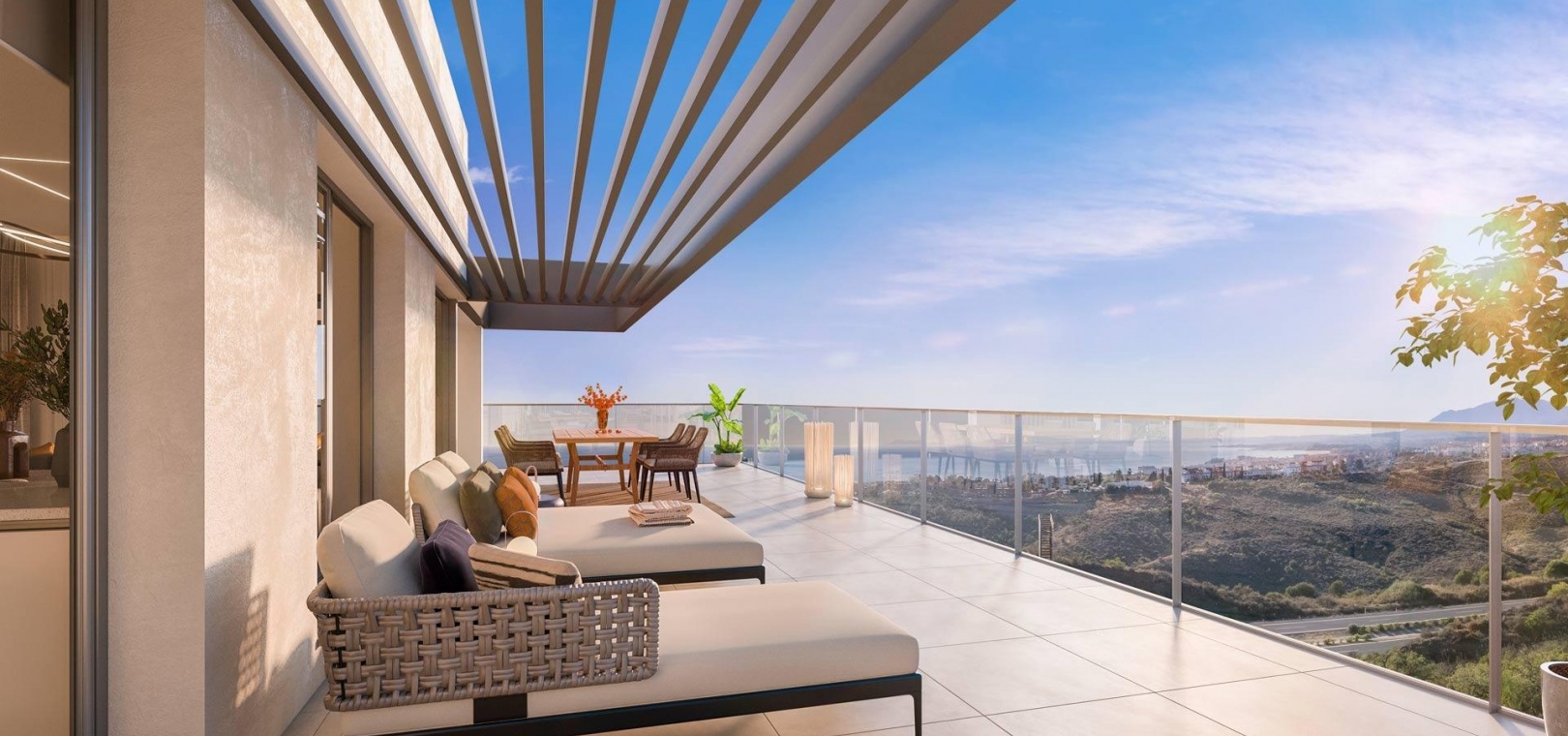 Innovative and elegant residential of 2 and 3-bedroom homes with large windows and extensive terraces to enjoy stunning sea views. Ground floor apartments with garden and private swimming pool, and penthouses with solarium with the option of incorporating a swimming pool.