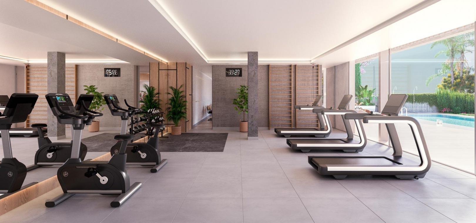 Residential complex with magnificent leisure and wellness services: 3 communal swimming pools, pool bar, spa with indoor pool, sauna, Turkish bath, two fully equipped gyms, two social clubs with coworking space and magnificent landscaped areas.