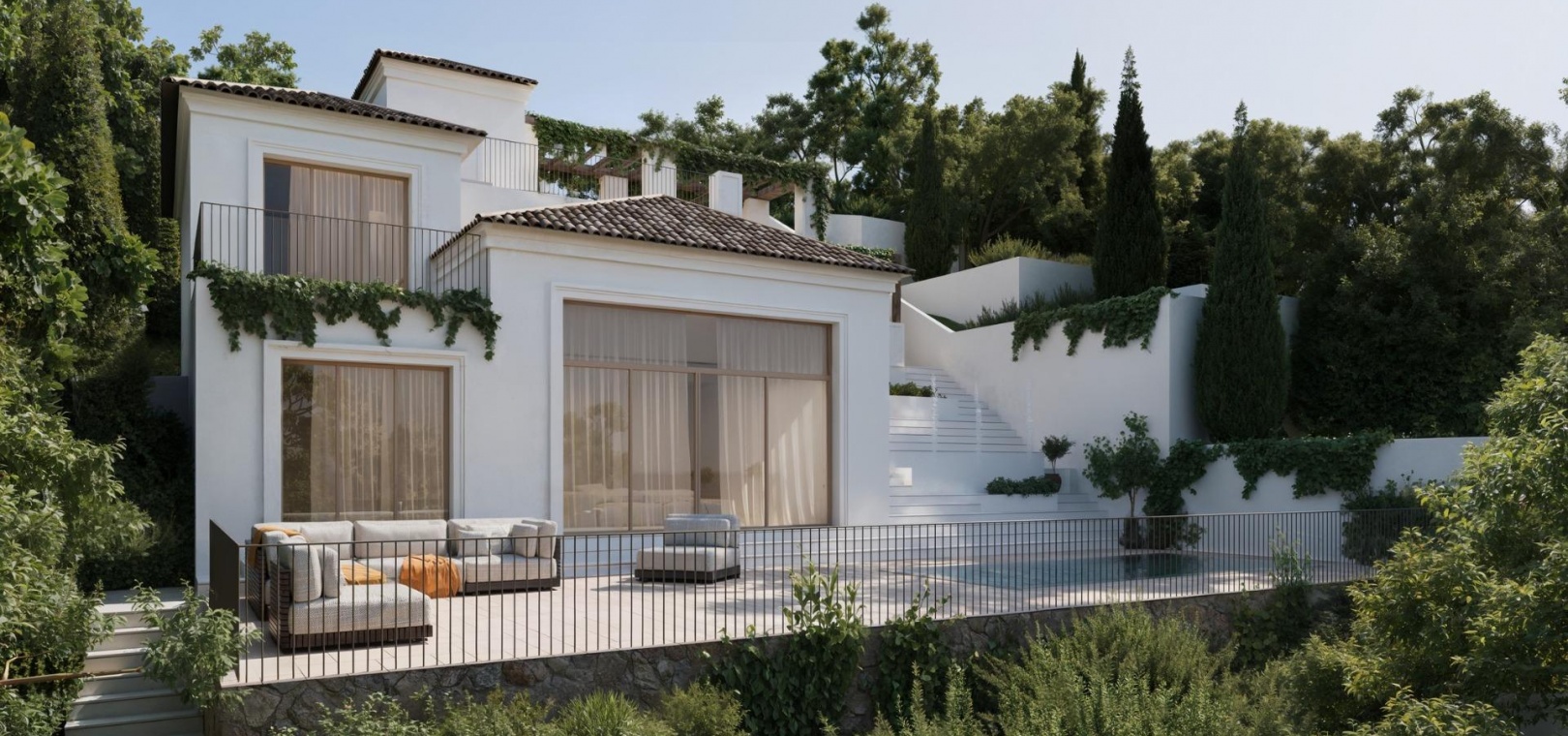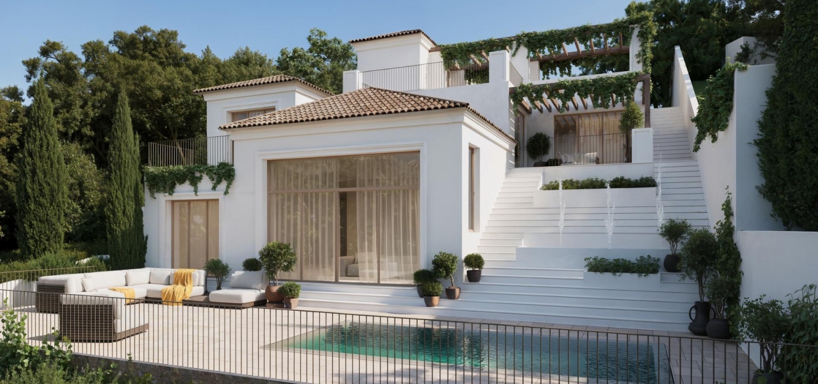 Discover an exclusive collection of 14 luxury new build villas located in Elviria, one of the most desirable residential areas of Marbella on the Costa del Sol. Surrounded by rolling pine covered hills and natural landscapes, these elegant homes combine timeless Andalusian architecture with modern Mediterranean living.