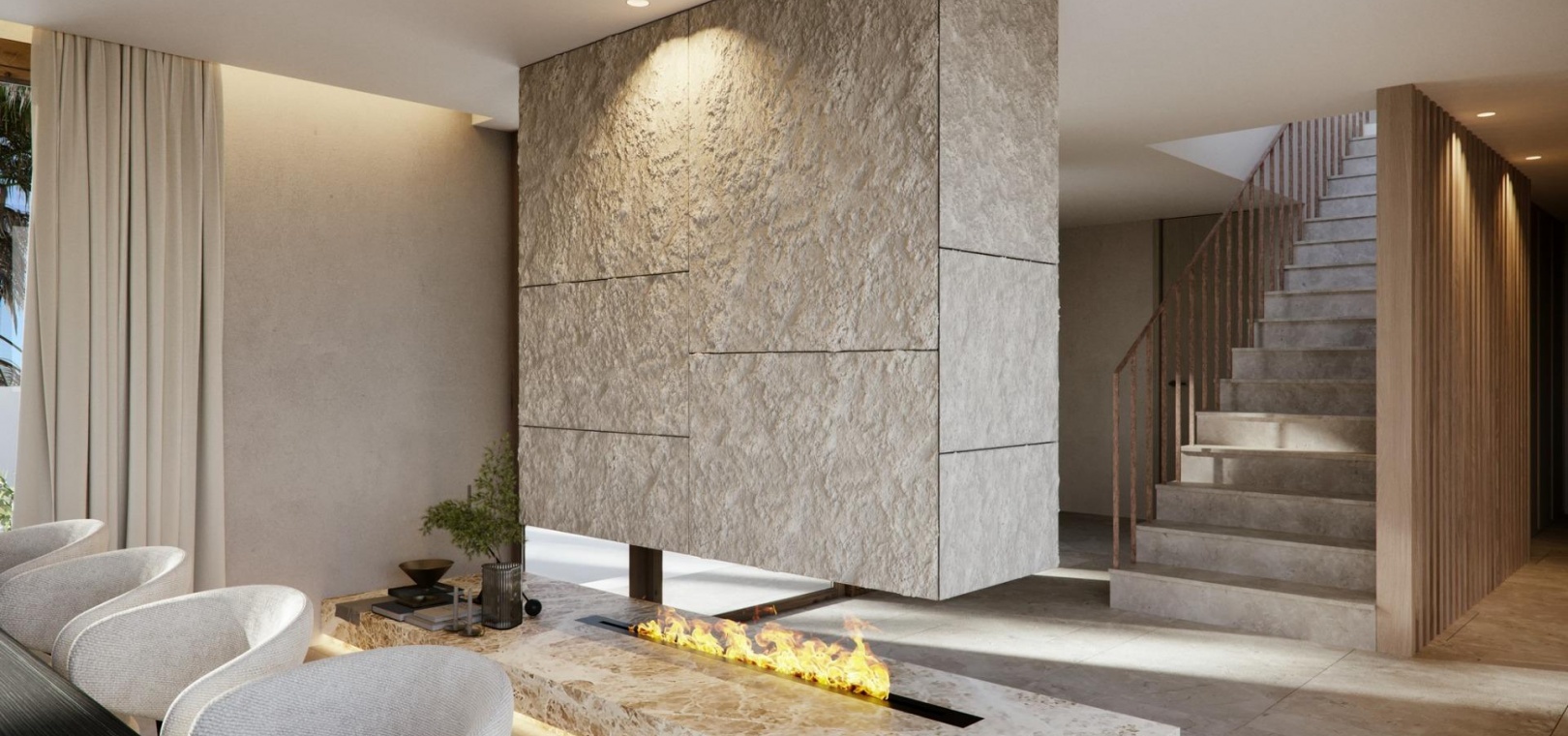 Each villa has been carefully designed to create a bright and sophisticated living environment. The architecture combines elegant white facades with natural stone details and expansive windows that allow natural light to fill the interiors throughout the day.